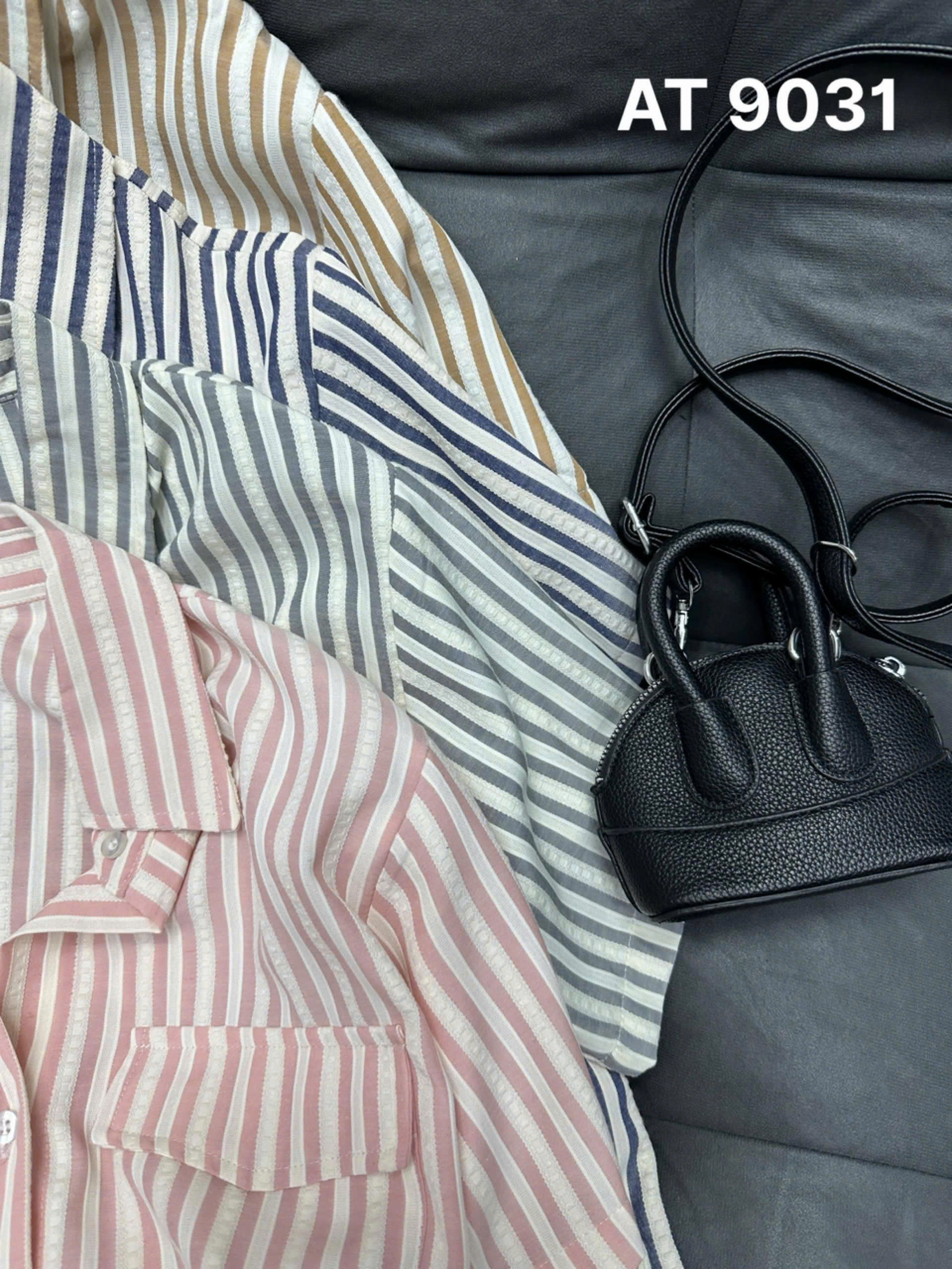 ÁO SƠ MI SỌC PHỐI TÚI BIGSIZE AT9031 DÀNH CHO NÀNG MŨM MĨM TỪ 55-90KG