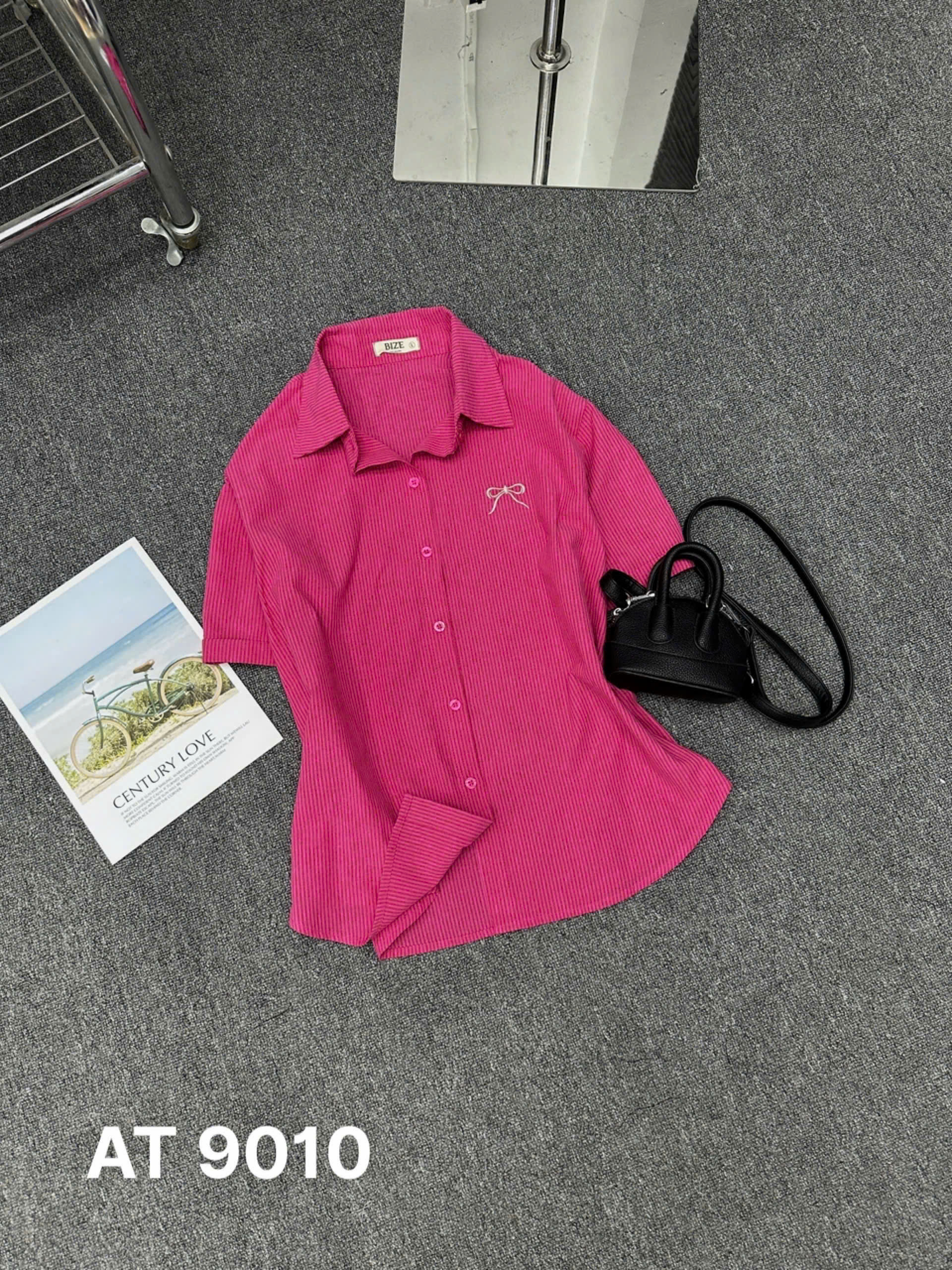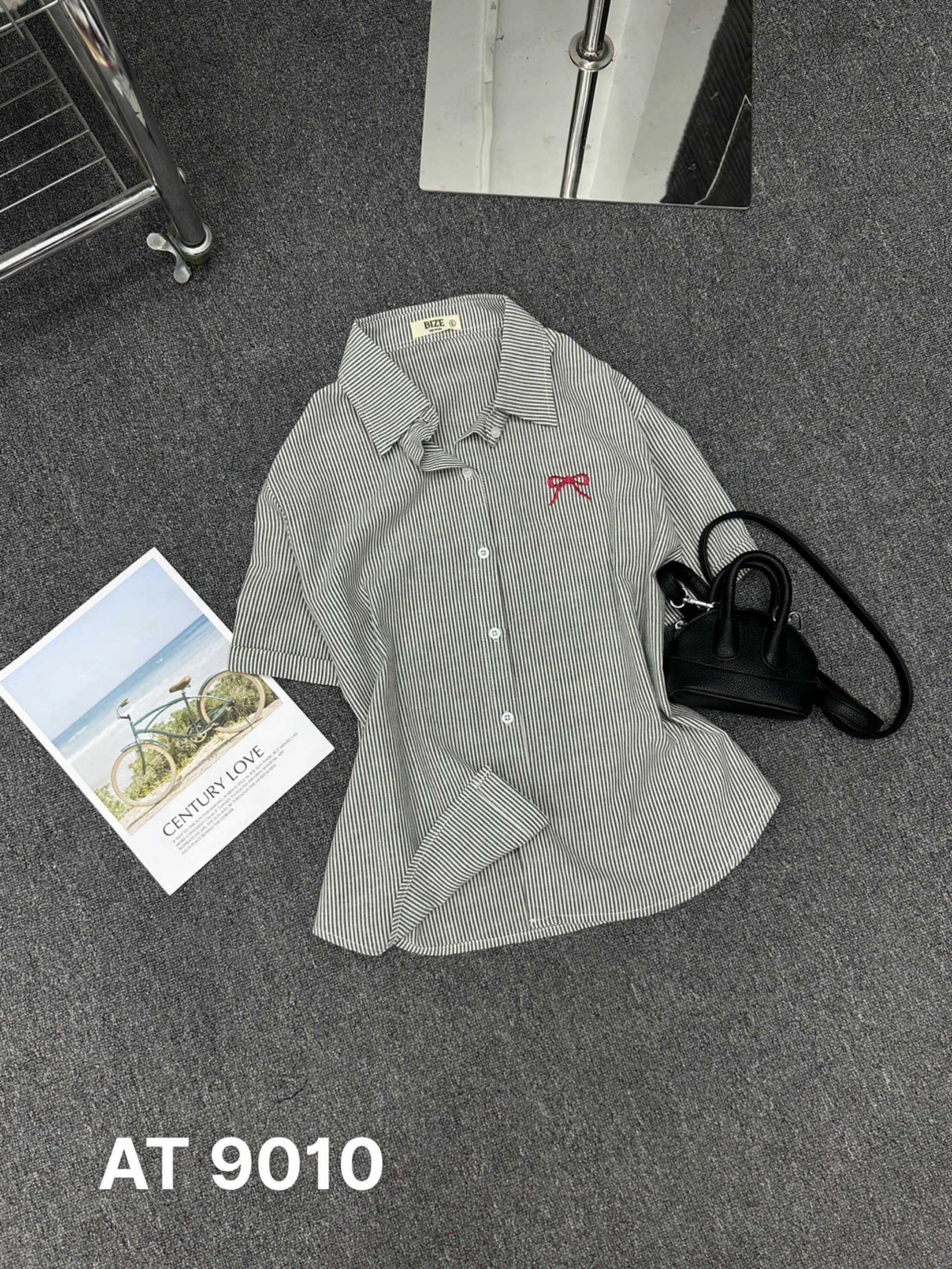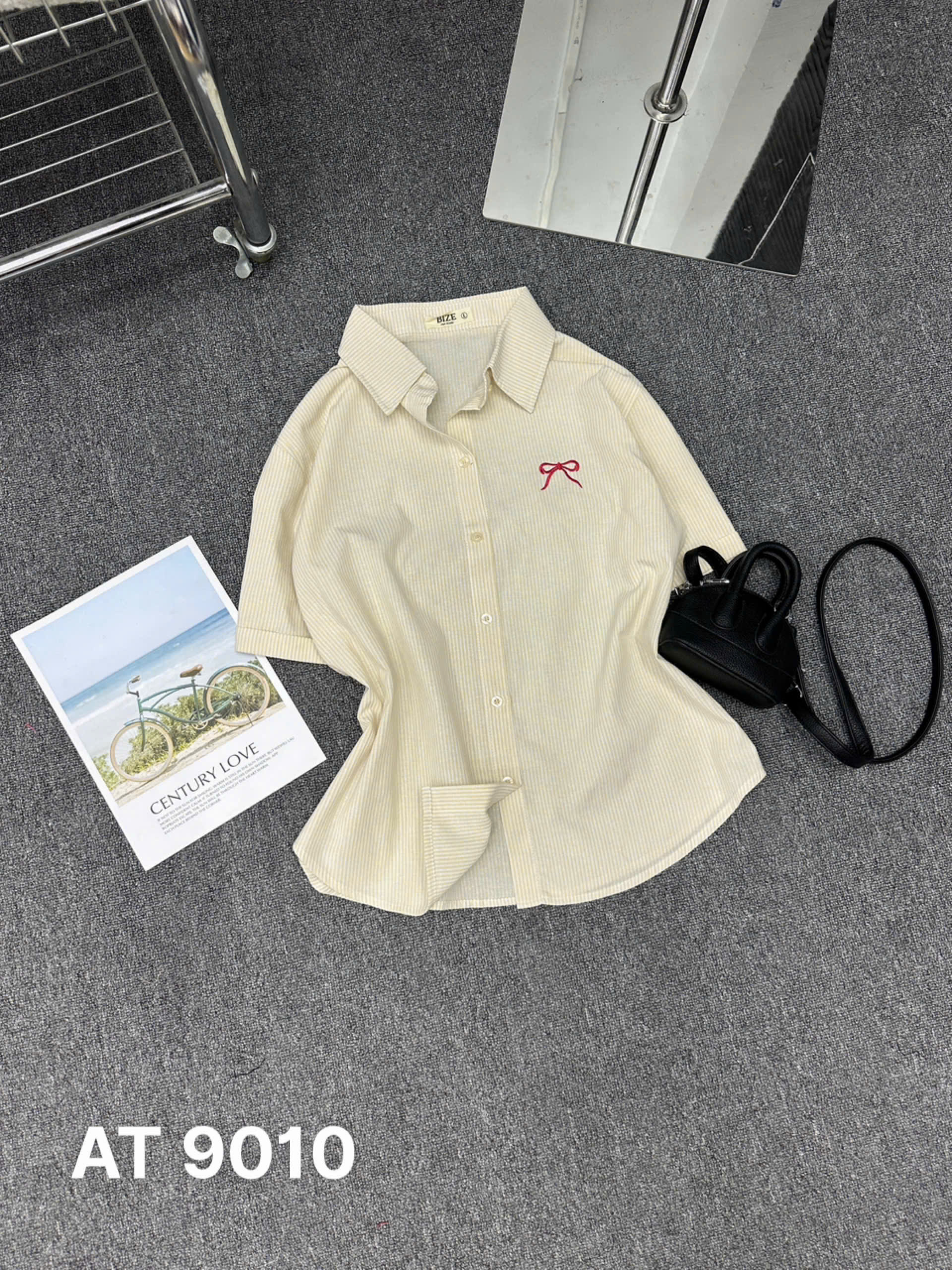 ÁO SƠ MI SỌC TAY NGẮN THÊU NƠ BIGSIZE AT9010 DÀNH CHO NÀNG MŨM MĨM TỪ 55-90KG