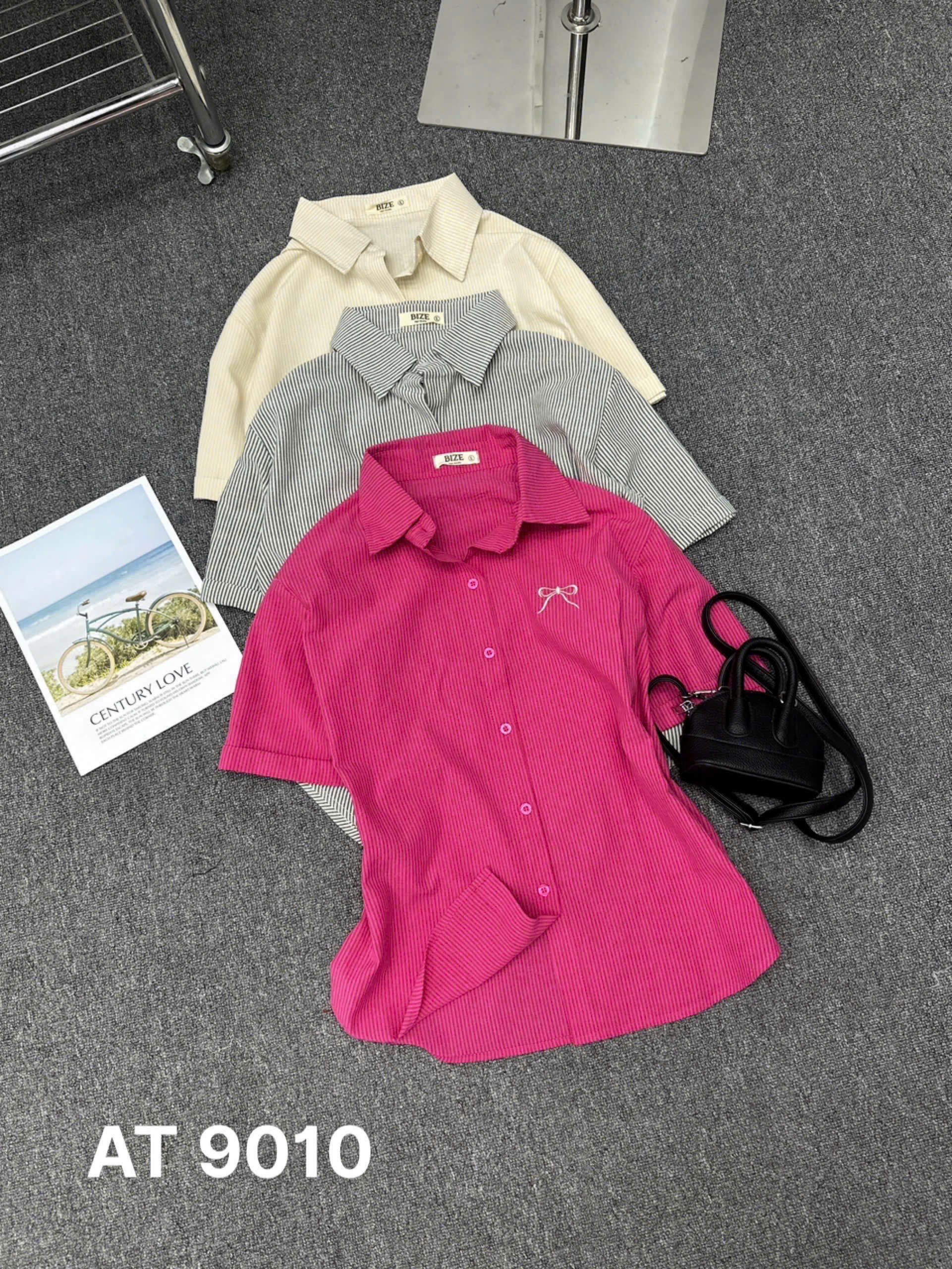Áo sơ mi sọc phối nơ kiểu bigsize AT9010 dành cho nàng béo mập từ 55-90kg