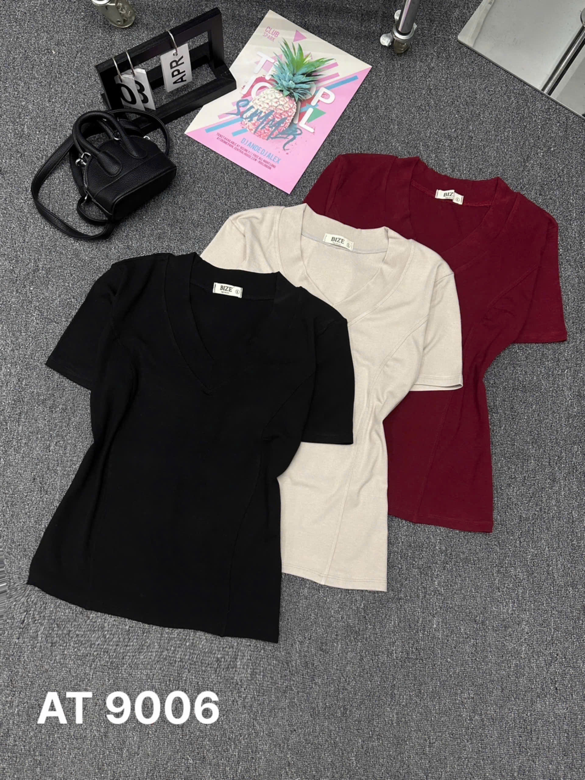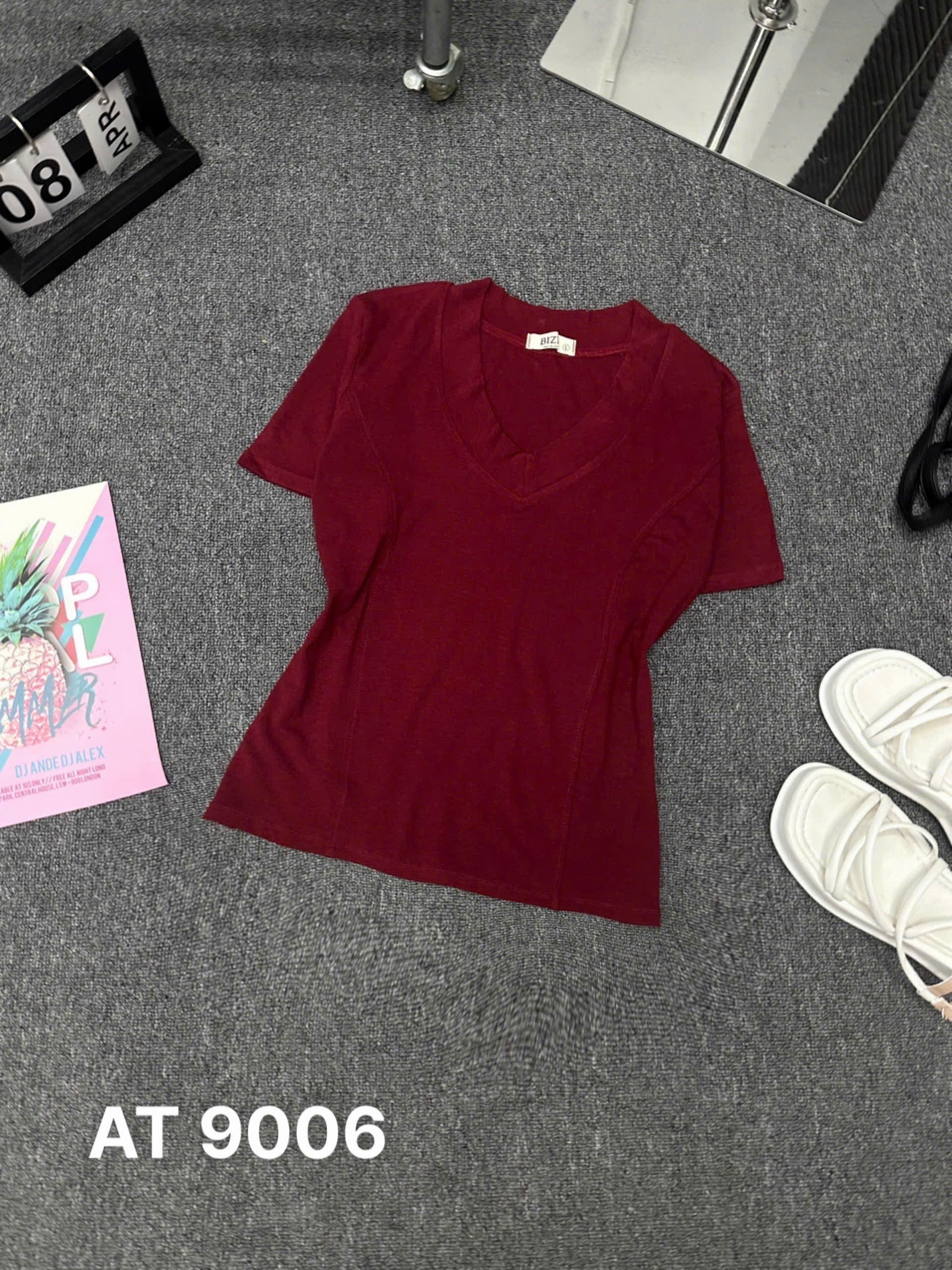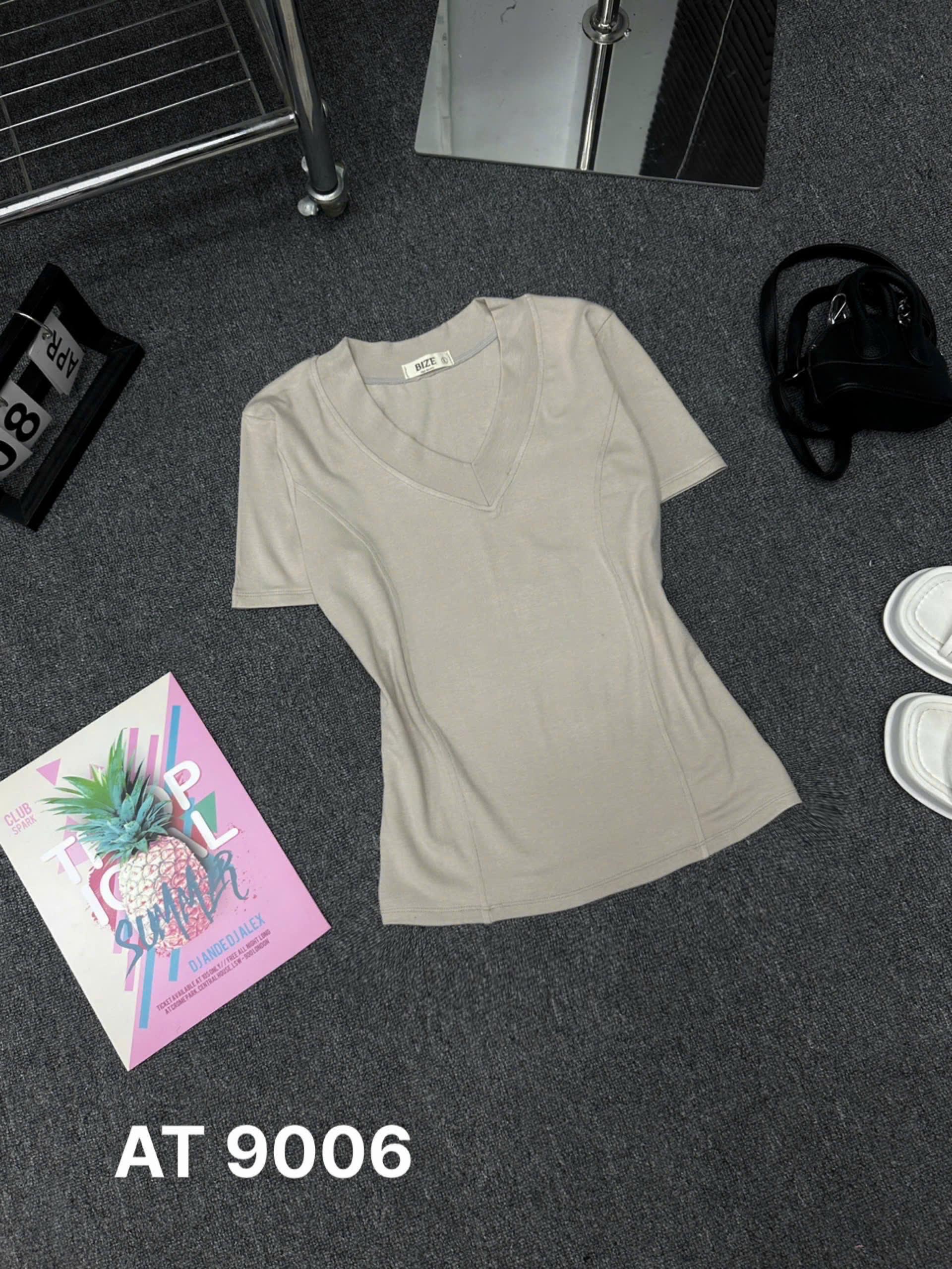- Kiểu dáng : áo thun dáng ôm nhẹ , vạy áo ngang, cổ tim sâu bảng 4p , tay áo ngắn .