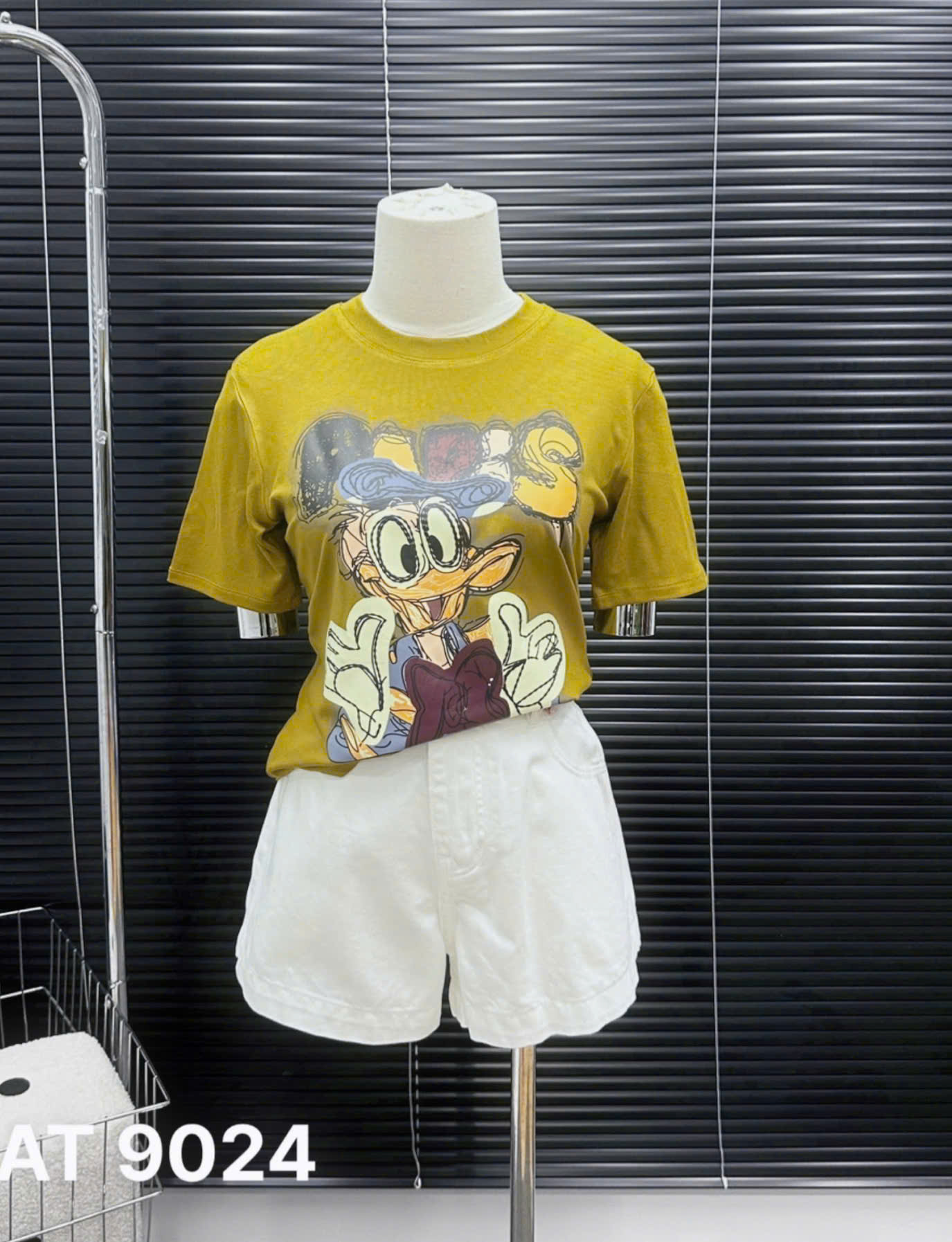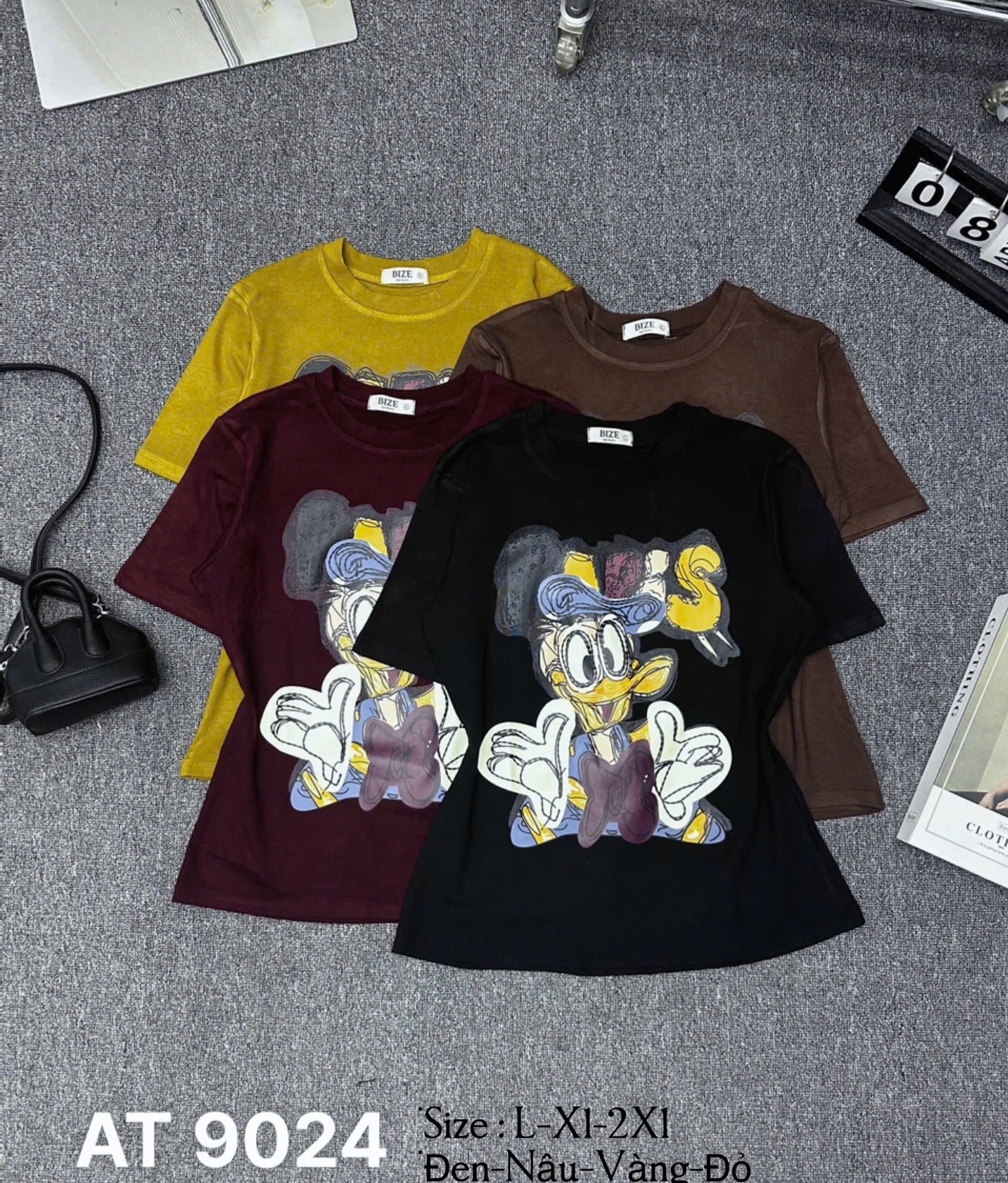 - Kiểu dáng : áo thun form babytee , tay ngắn , kiểu cổ tròn , phần thân trước in lụa hình chú vịt xinh xắn , phần áo có chiết eo nhẹ giúp hack eo người mặc .