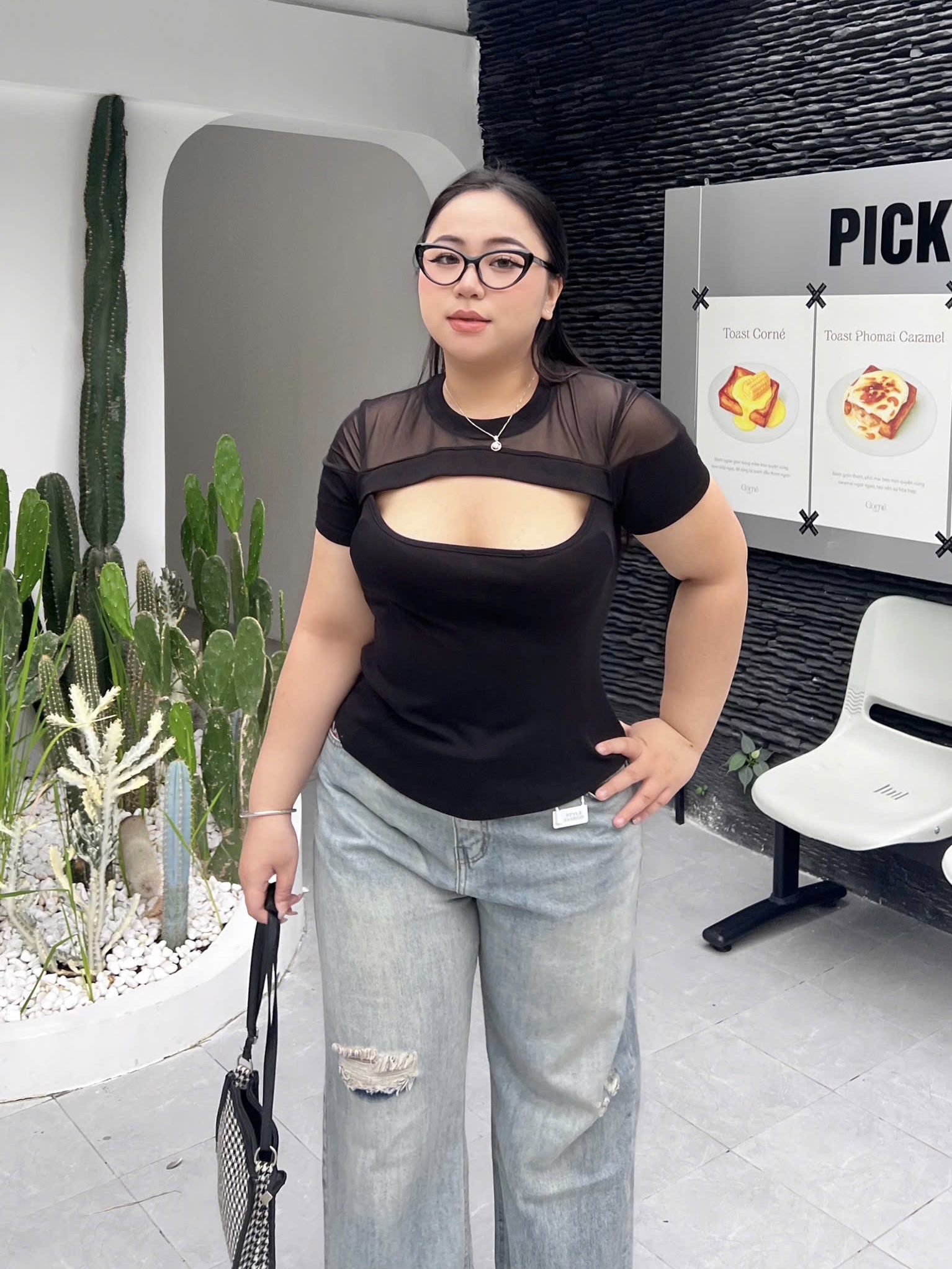 Áo thun khoét ngực kiểu bigsize AT150 dành cho nàng béo mập từ 55-90kg