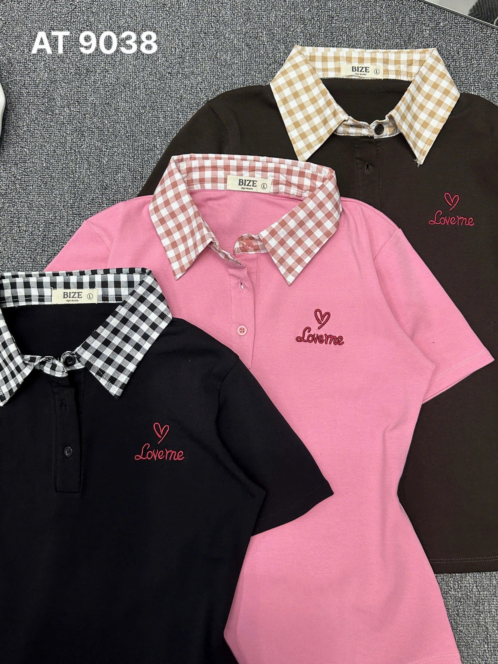 ÁO THUN KIỂU PHỐI CỔ SƠ MI BIGSIZE AT9038 DÀNH CHO NÀNG MŨM MĨM TỪ 55-90KG