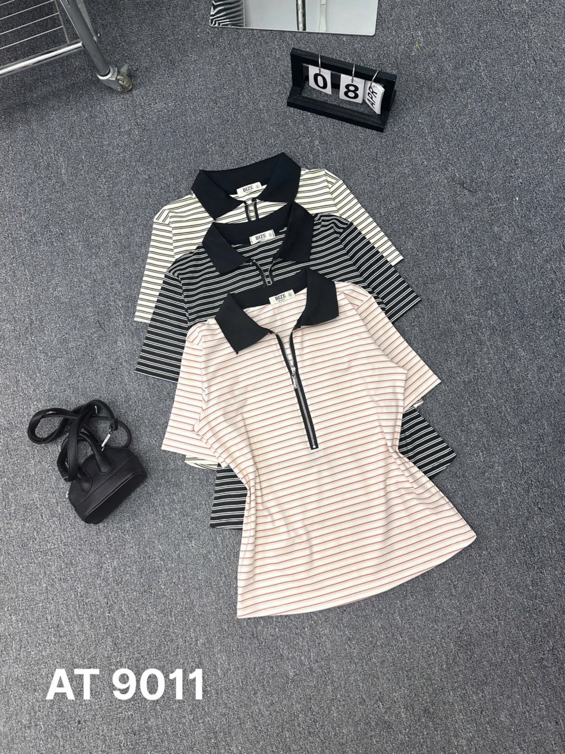 ÁO THUN SỌC PHỐI DÂY KÉO AT9011 DÀNH CHO NÀNG MŨM MĨM TỪ 55-90KG