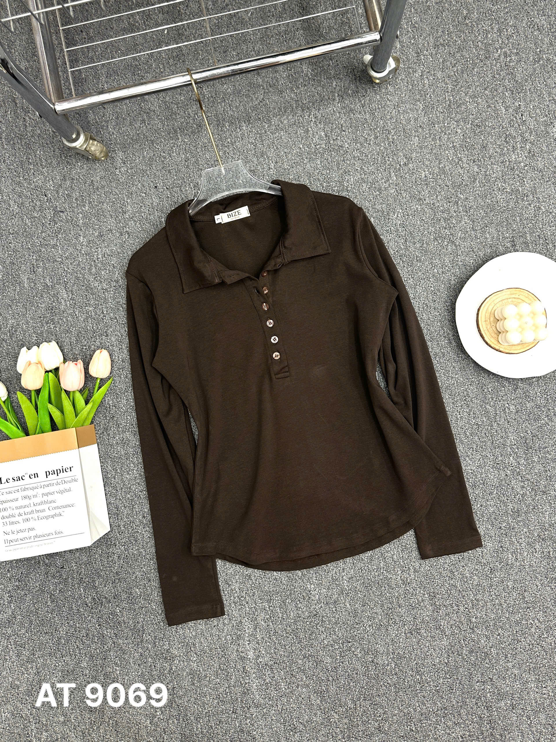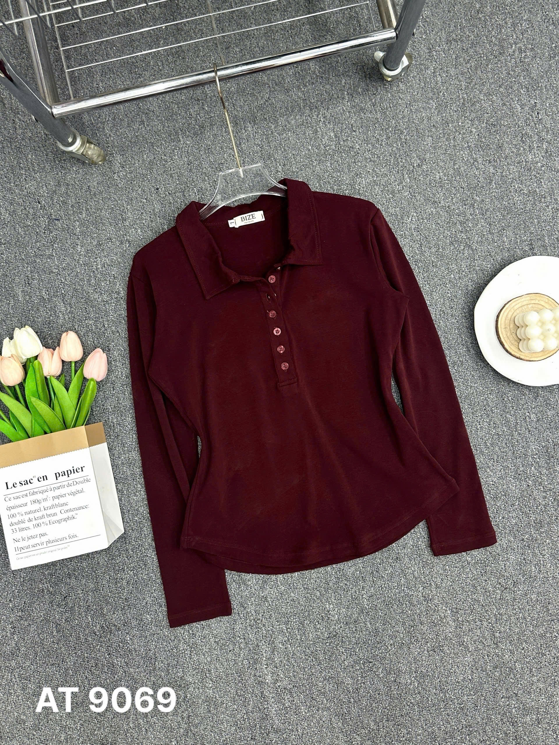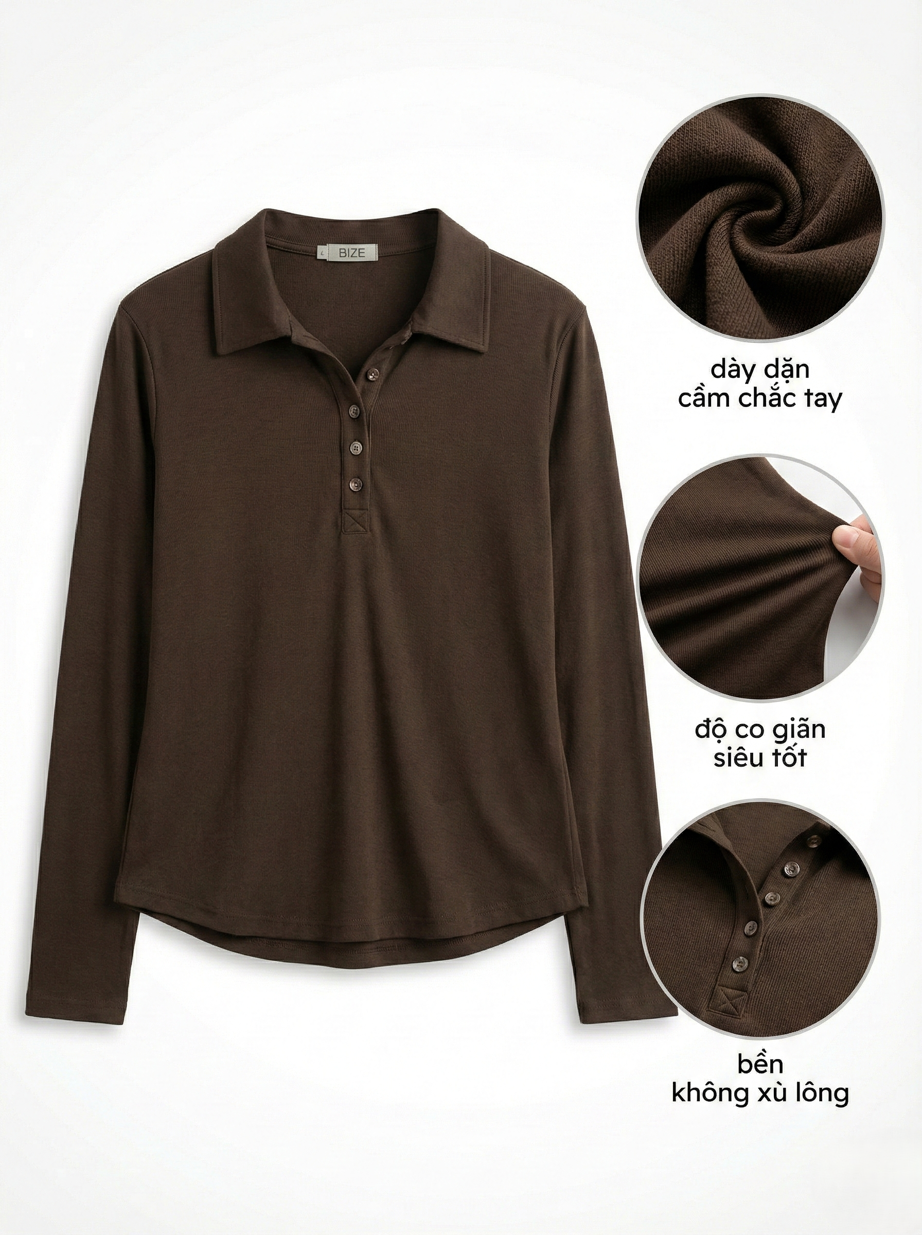 BIGIZE- Áo thun tay dài cổ bẻ T- AT9069