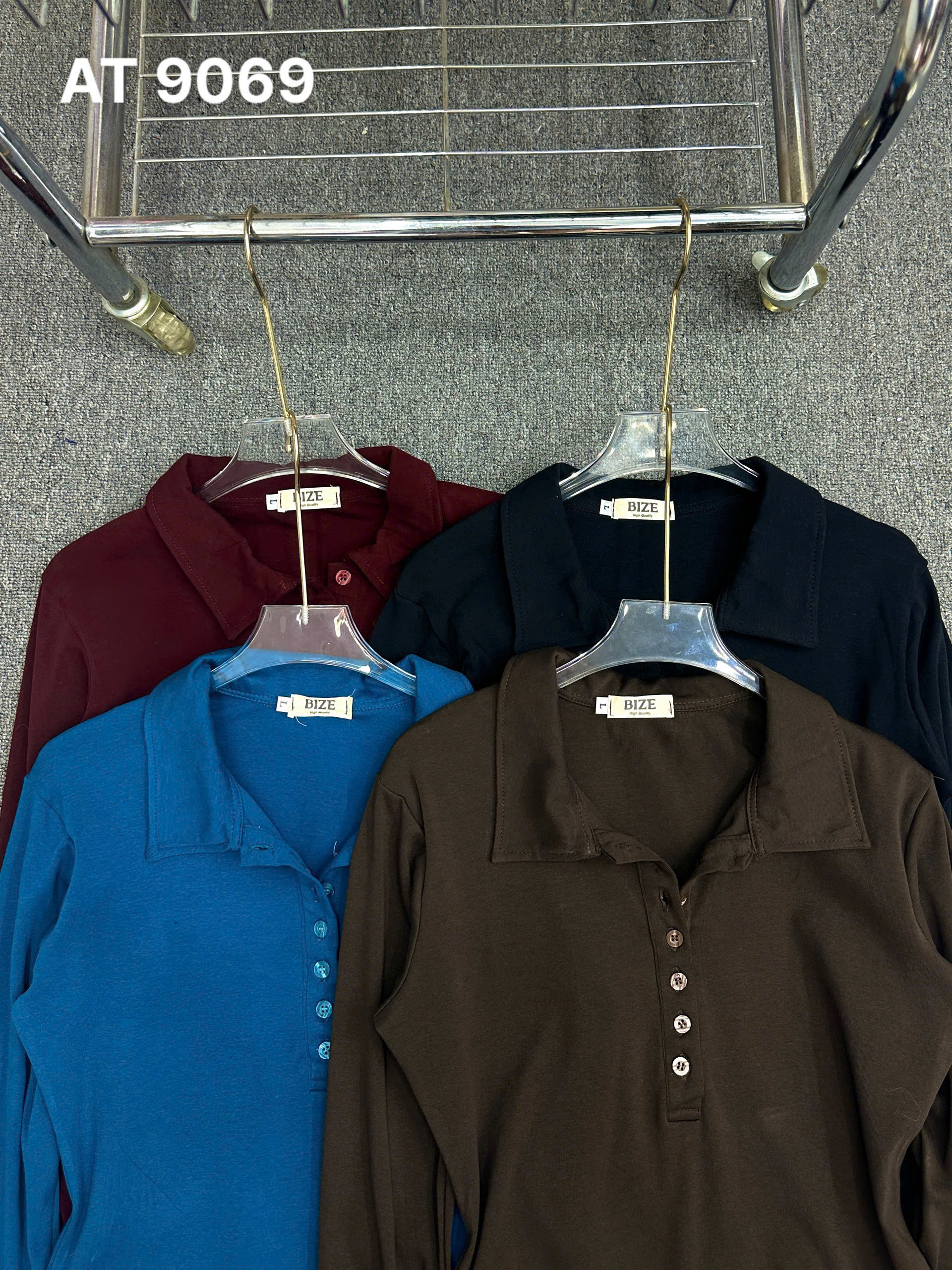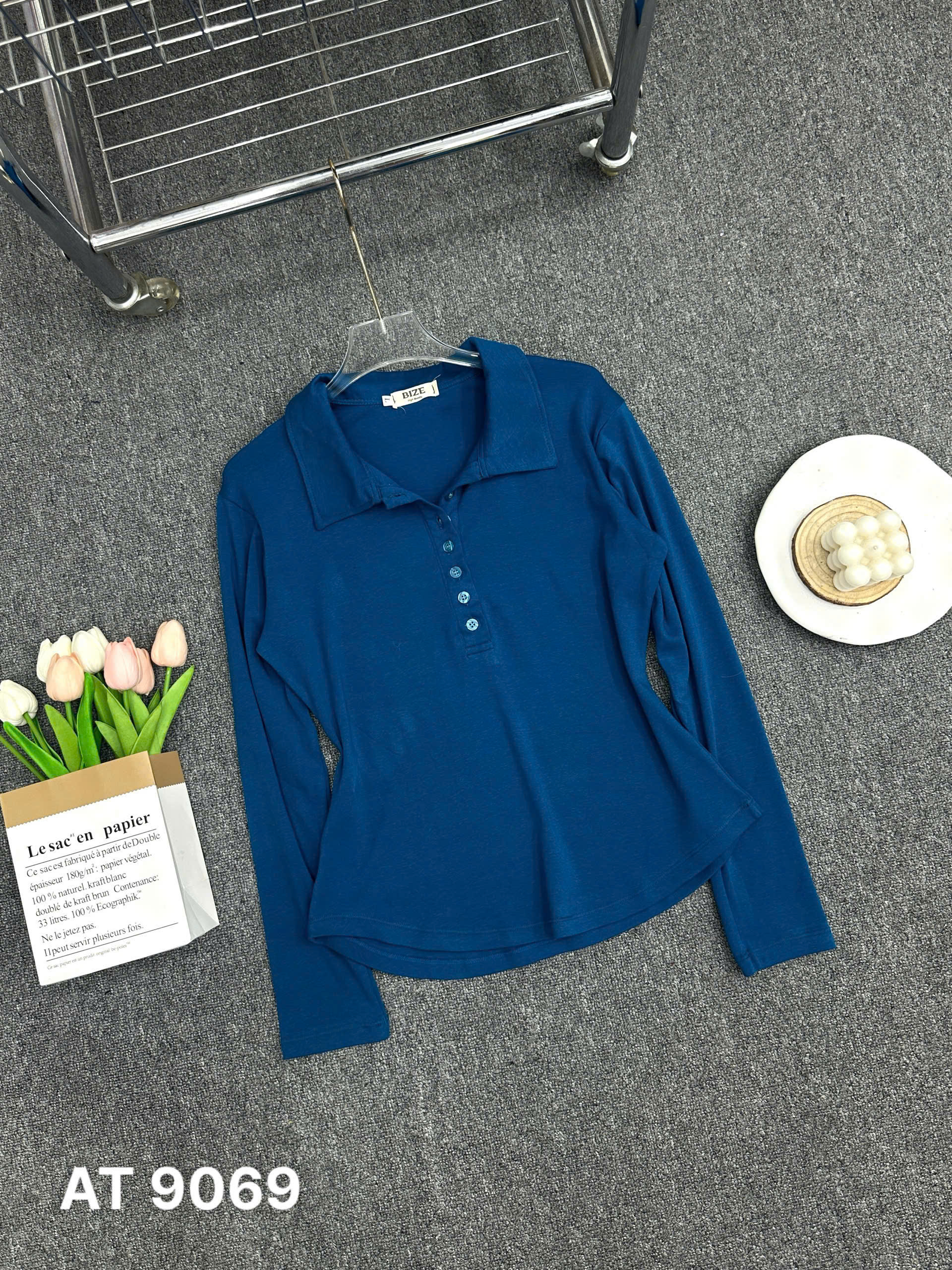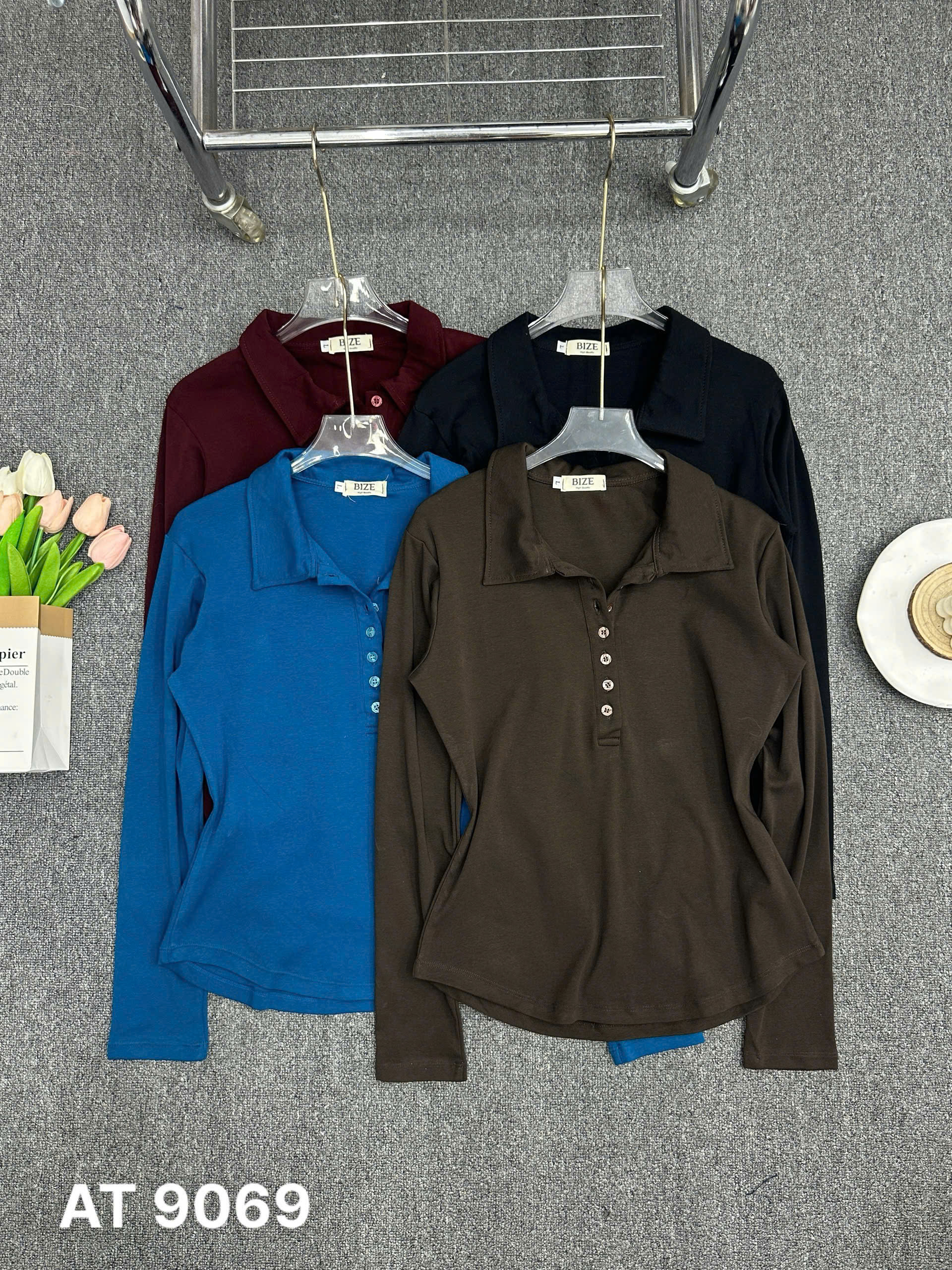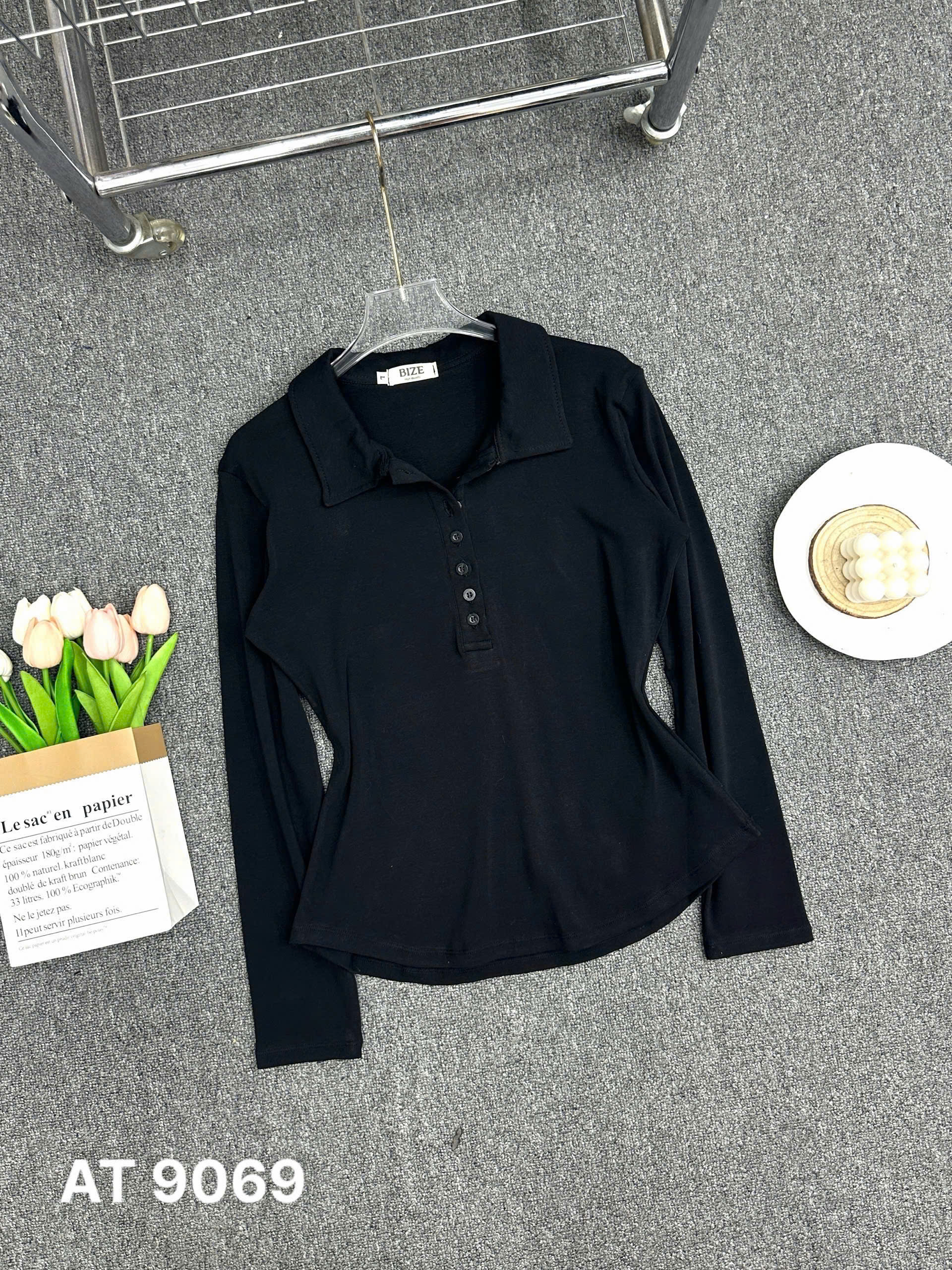 BIGIZE- Áo thun tay dài cổ bẻ T- AT9069
