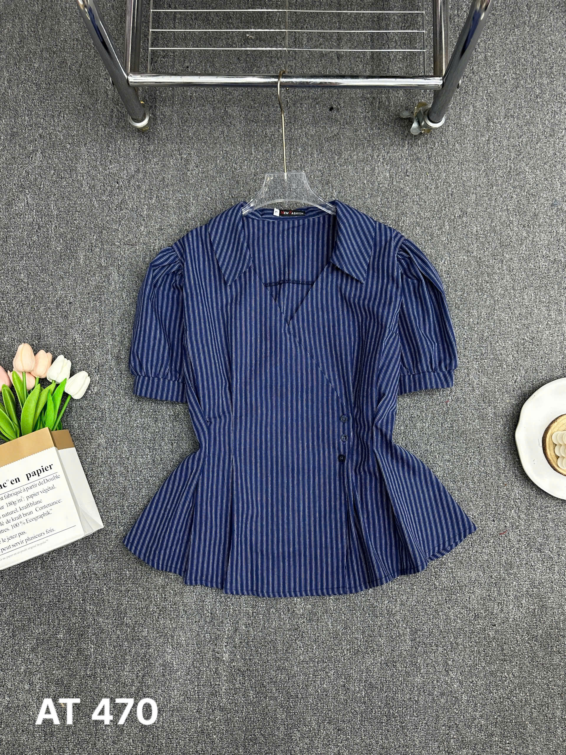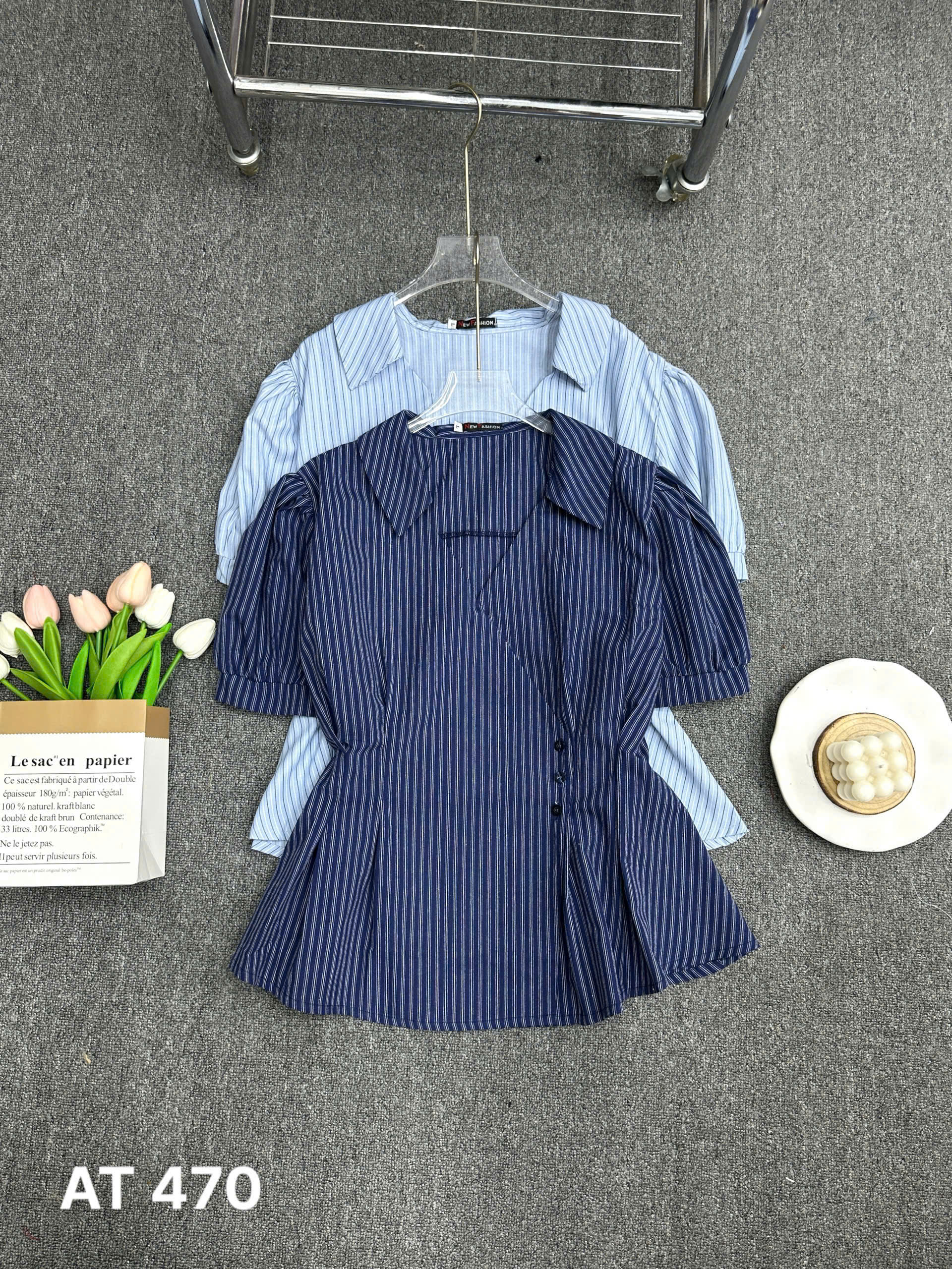 BIGSIZE NỮ - ÁO SƠ MI SỌC PHỐI NÚT BIGSIZE T-AT470 DÀNH CHO NÀNG MŨM MĨM TỪ 55-90KG