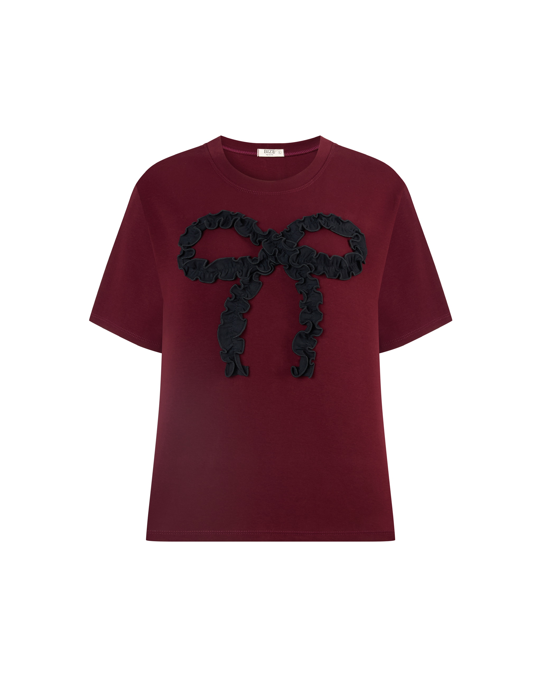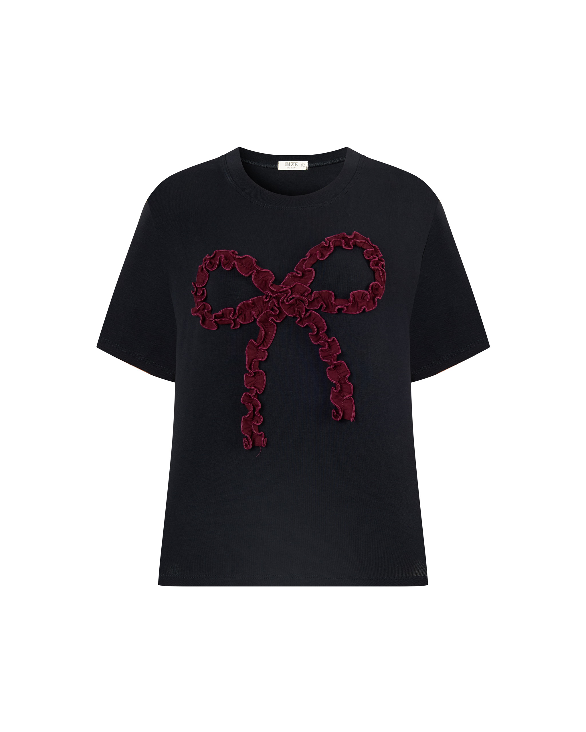 - Kiểu dáng : áo thun form babytee, cổ tròn , tay áo ngắn , có phần nơ nhún may cực kì chắc chắn ở thân trước .
