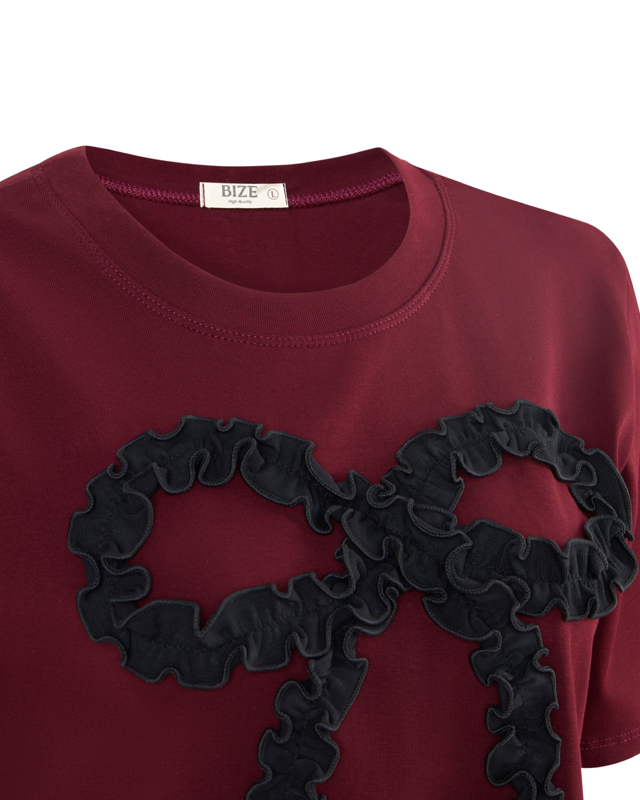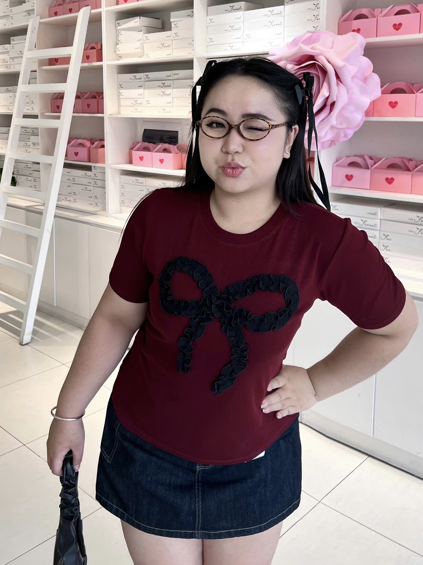 ÁO THUN KIỂU PHỐI NƠ NHÚN BIGSIZE AT9052 DÀNH CHO NÀNG MŨM MĨM TỪ 55-90KG