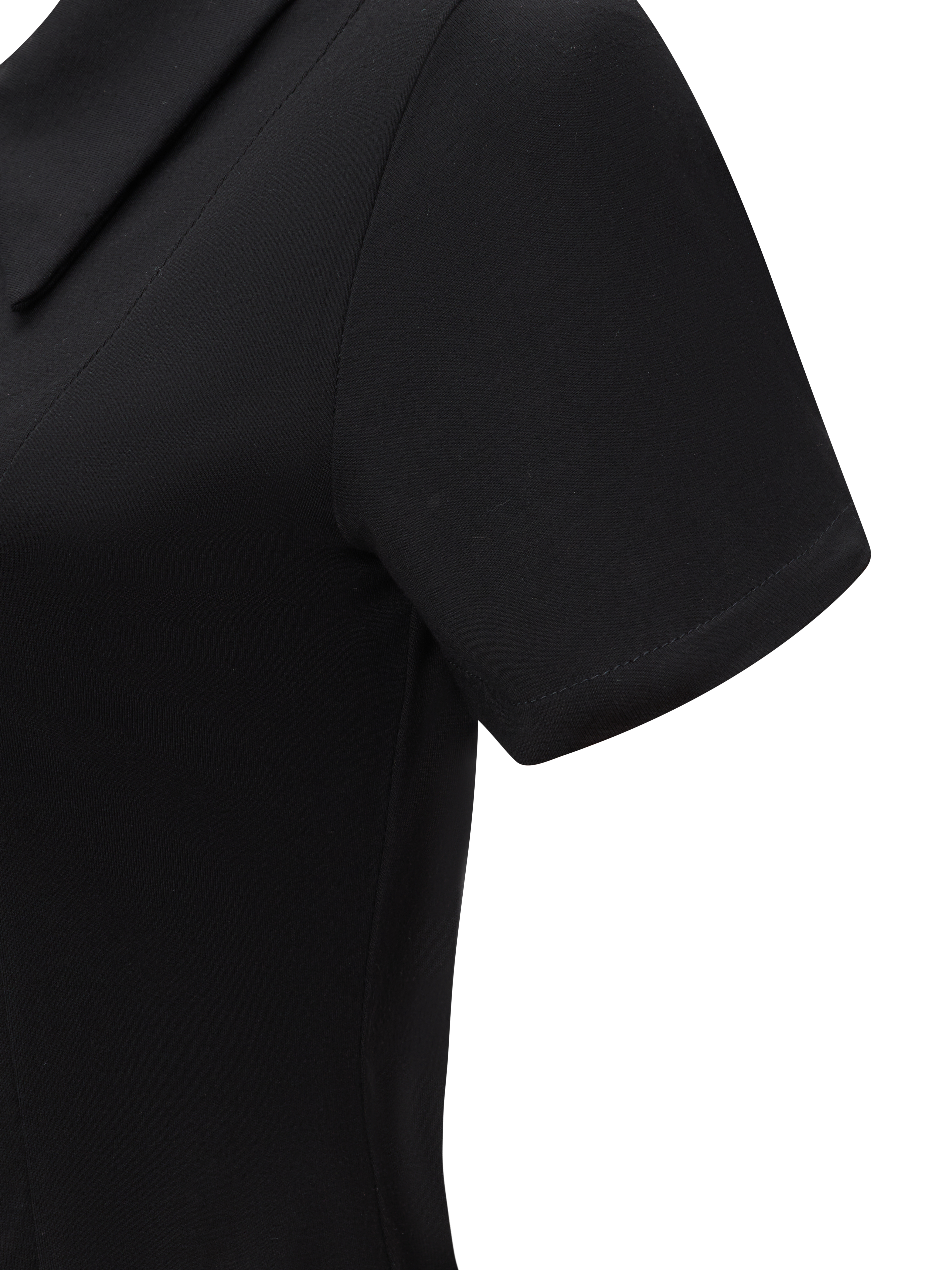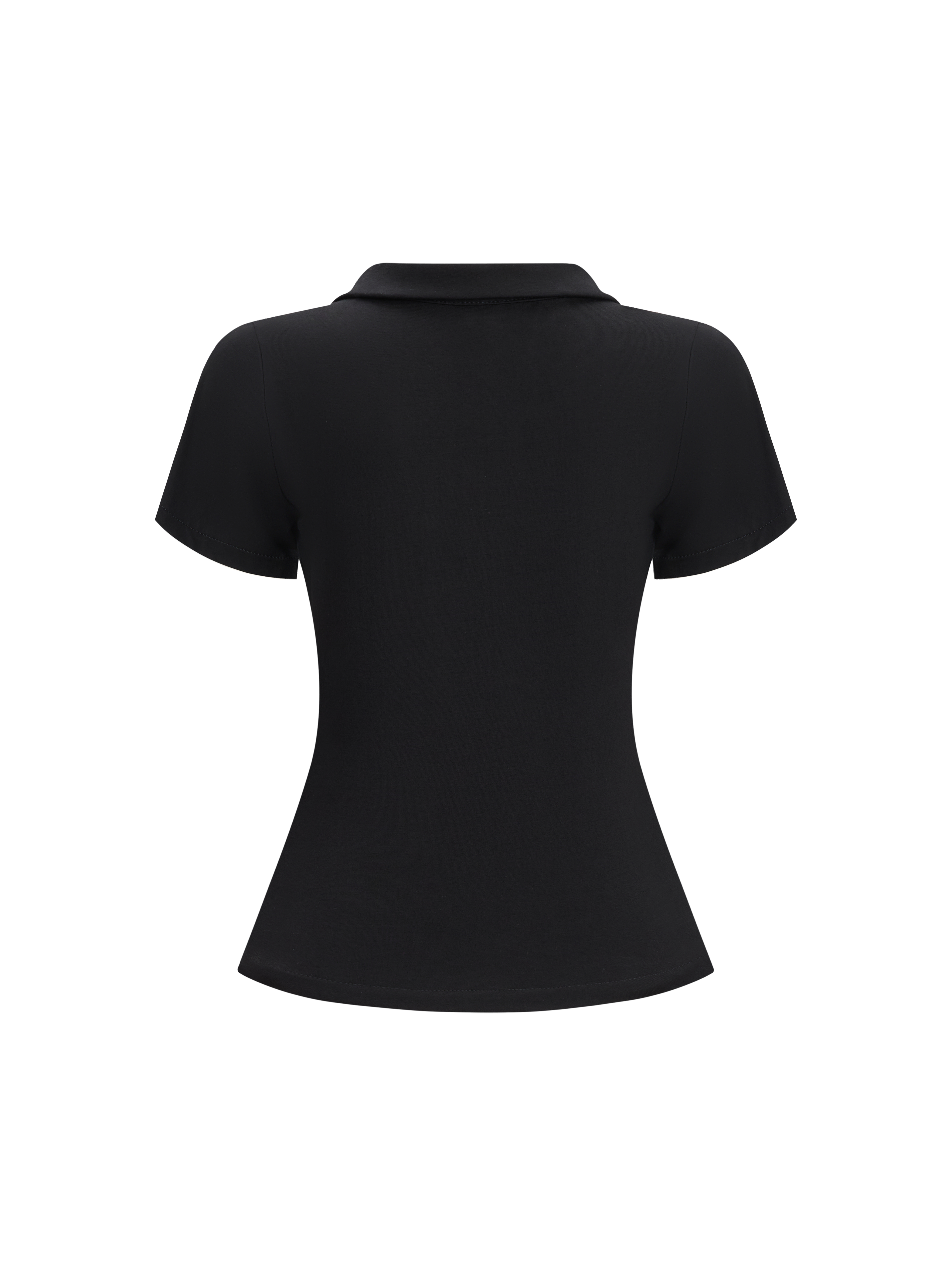 - Kiểu dáng : áo thun dáng ôm , rã mảnh thân trước kết hợp thiết kế chiết eo giúp fit dáng người mặc , cổ kiểu sơ mi , thân trước có dây kéo có thể tự điều chỉnh độ cao thấp tùy ý .