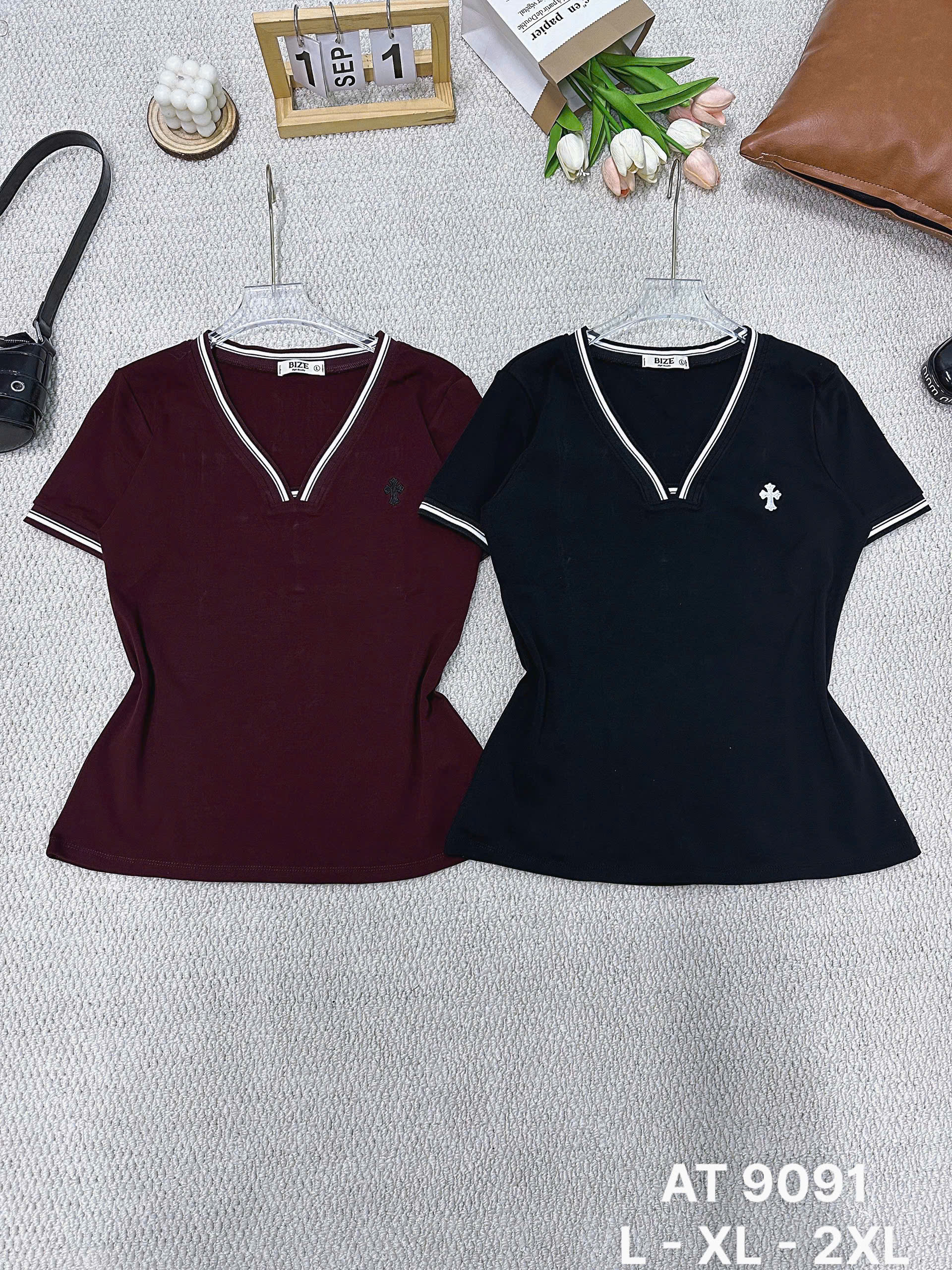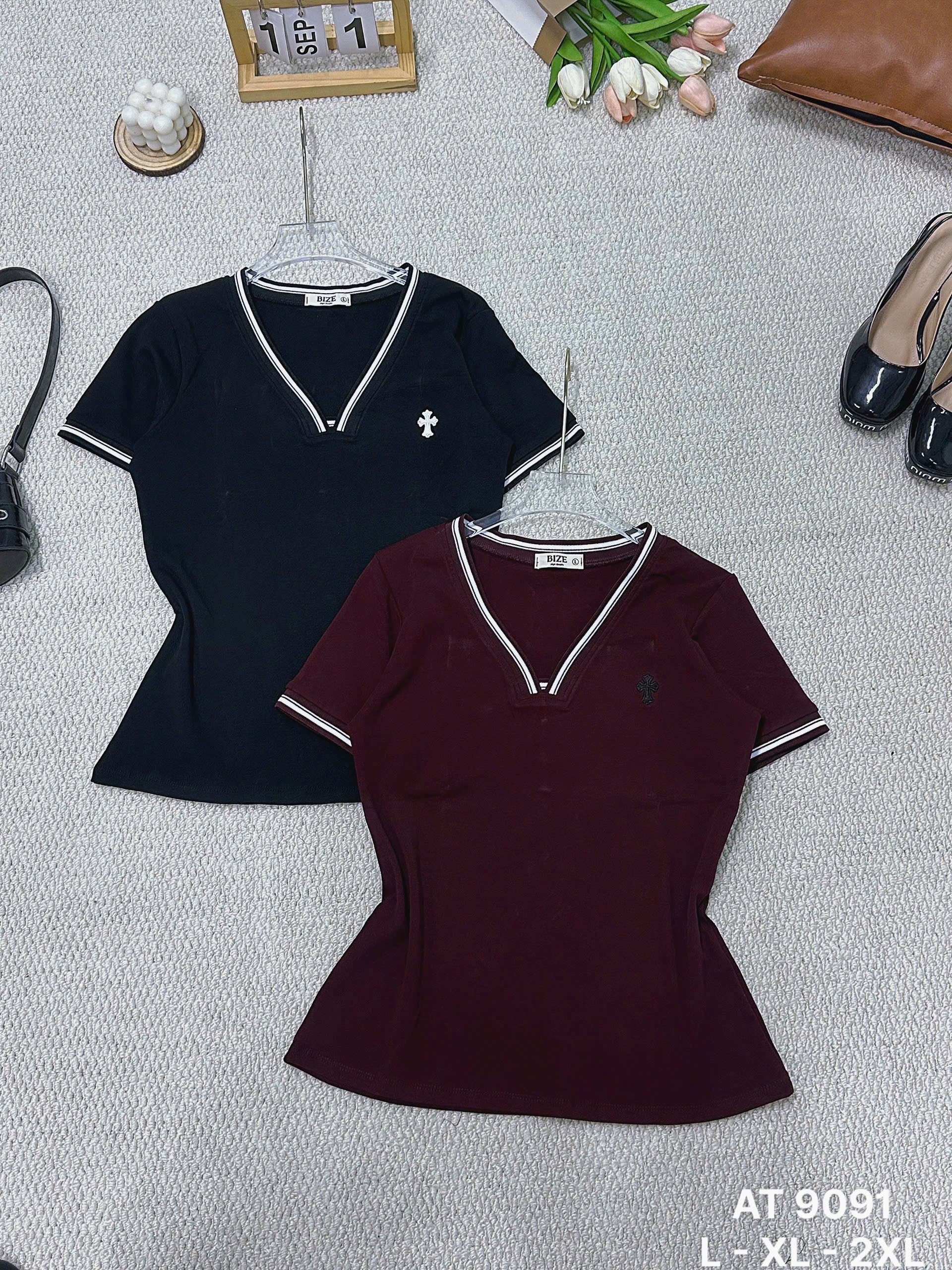 📢 HÀNG SẴN KHO - LÊN ĐƠN LÀ SHIP NGAY! Các nàng ơi, mẫu áo thun "quốc dân" vừa cập bến nóng hổi đây ạ! AT 9091 mang đến vẻ đẹp vừa khỏe khoắn, năng động lại vừa sang trọng với điểm nhấn thêu chữ thập (style Chrome Hearts) đang "làm mưa làm gió" khắp các mặt trận thời trang. Hàng may kỹ, form chuẩn đẹp, mặc đi làm hay đi chơi đều "hết nước chấm"!