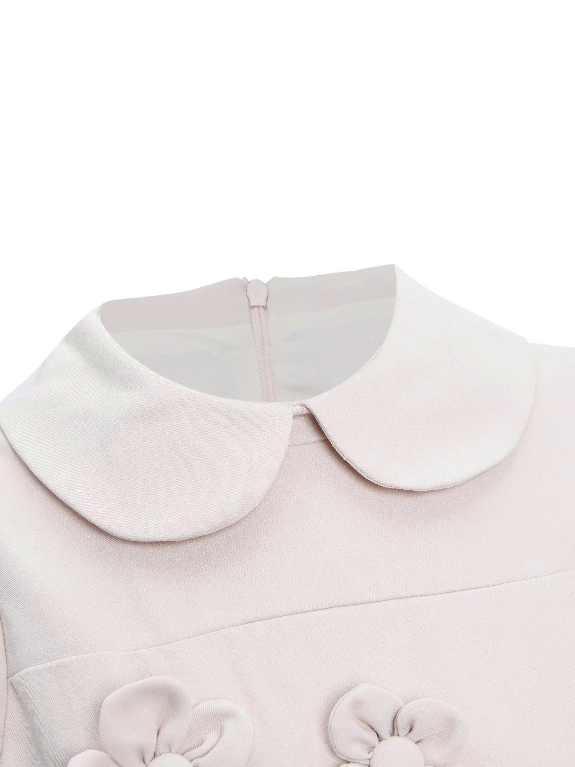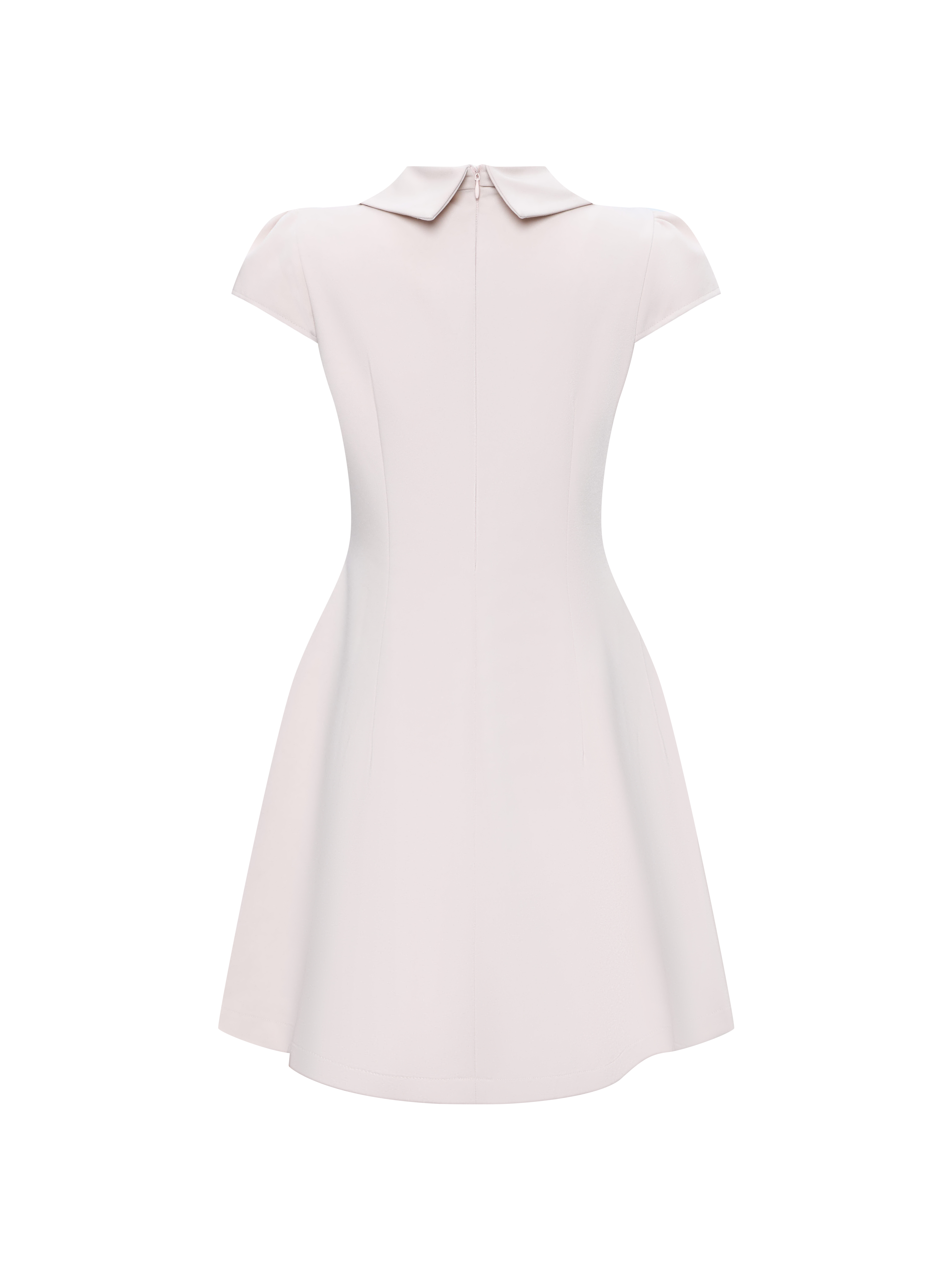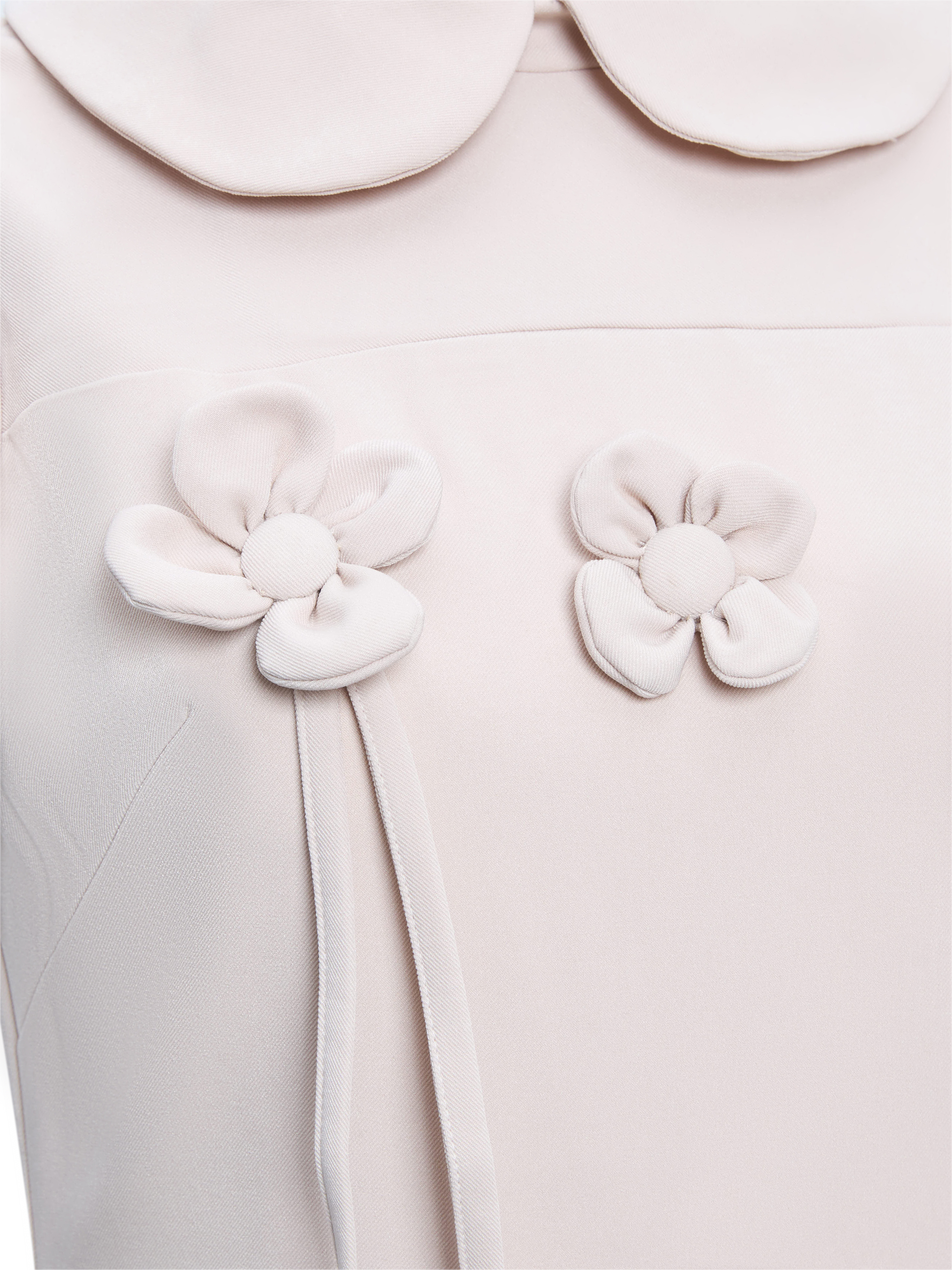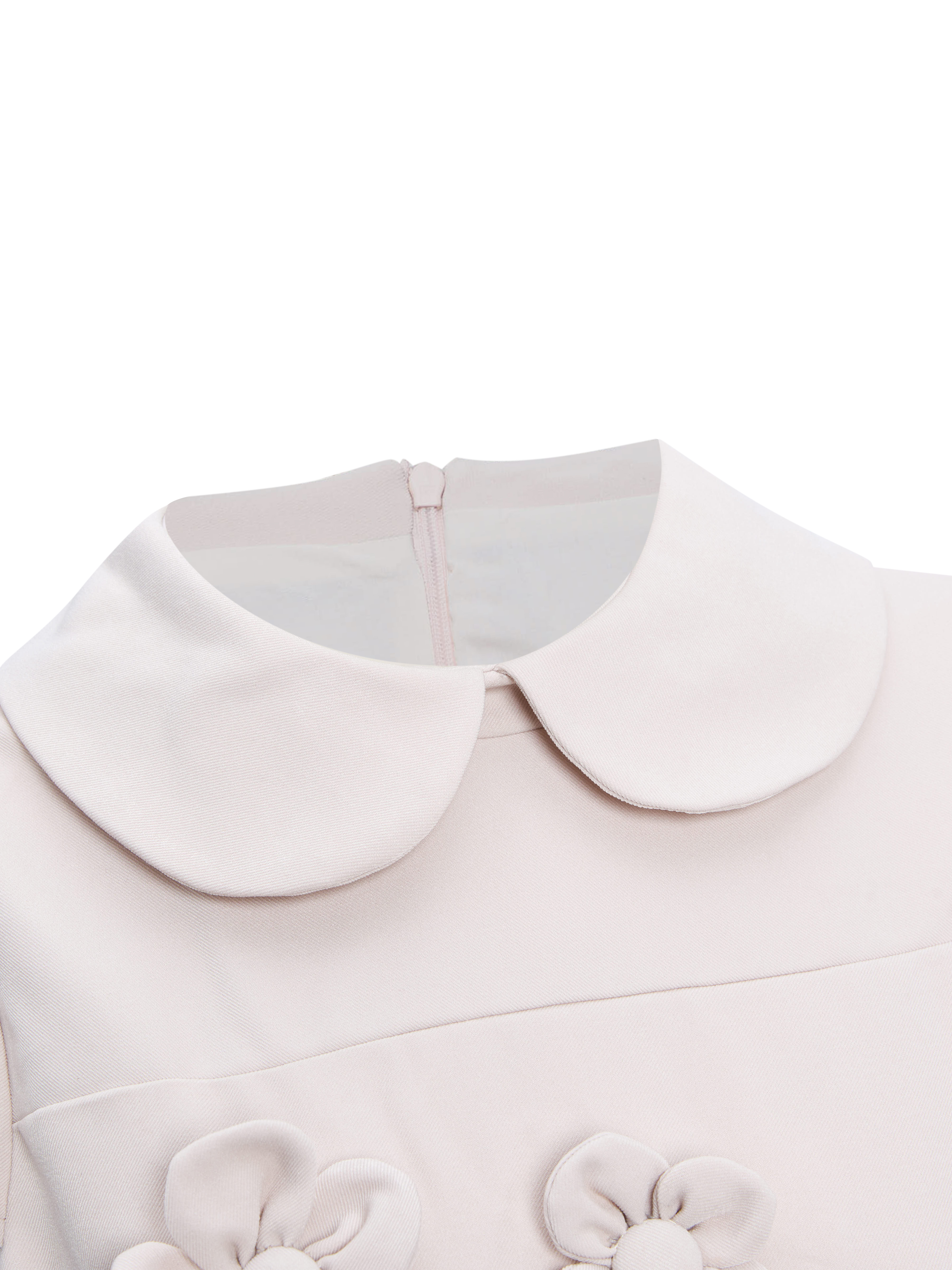 - Kiểu dáng : đầm 2 lớp , dáng ngắn , thiết kế rã mảnh giúp fit dáng người mặc , phần trên kiểu cổ tròn có cổ siêu xinh , tay nhún kiểu trên vai , dây kéo đầm thân sau , trên đầm đính hoa kiểu tạo điểm nhấn .