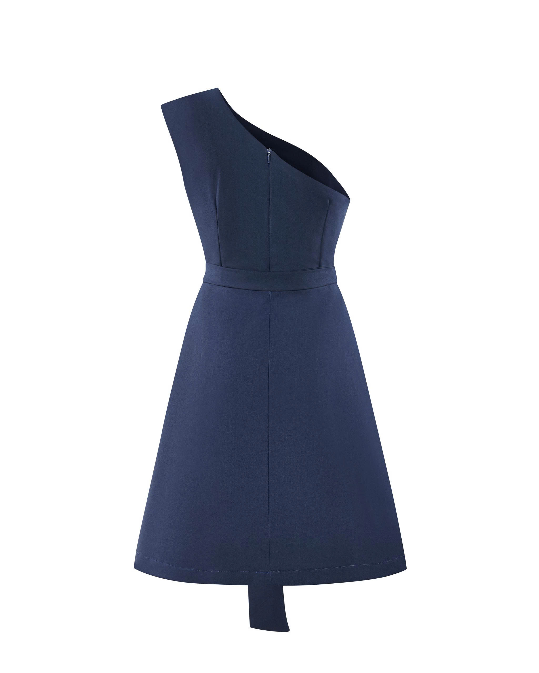 - Kiểu dáng : đầm 2 lớp , dáng A ngắn , phần trên thiết kế xéo 1 bên phối cùng phần vạt kiểu , rã mảnh thân trên giúp fit dáng người mặc hơn , phần tùng dáng A xòe nhẹ , dây kéo thân sau , phần hông có dây nơ thắt làm điểm nhấn .