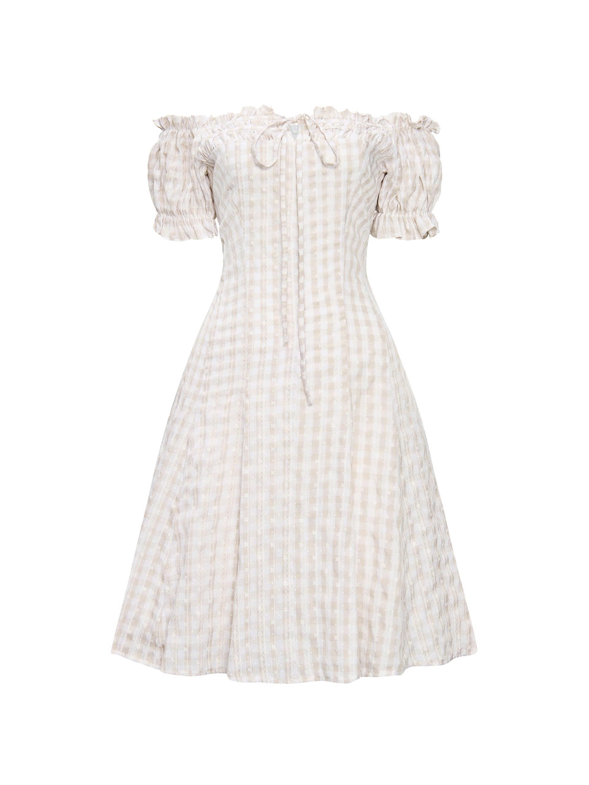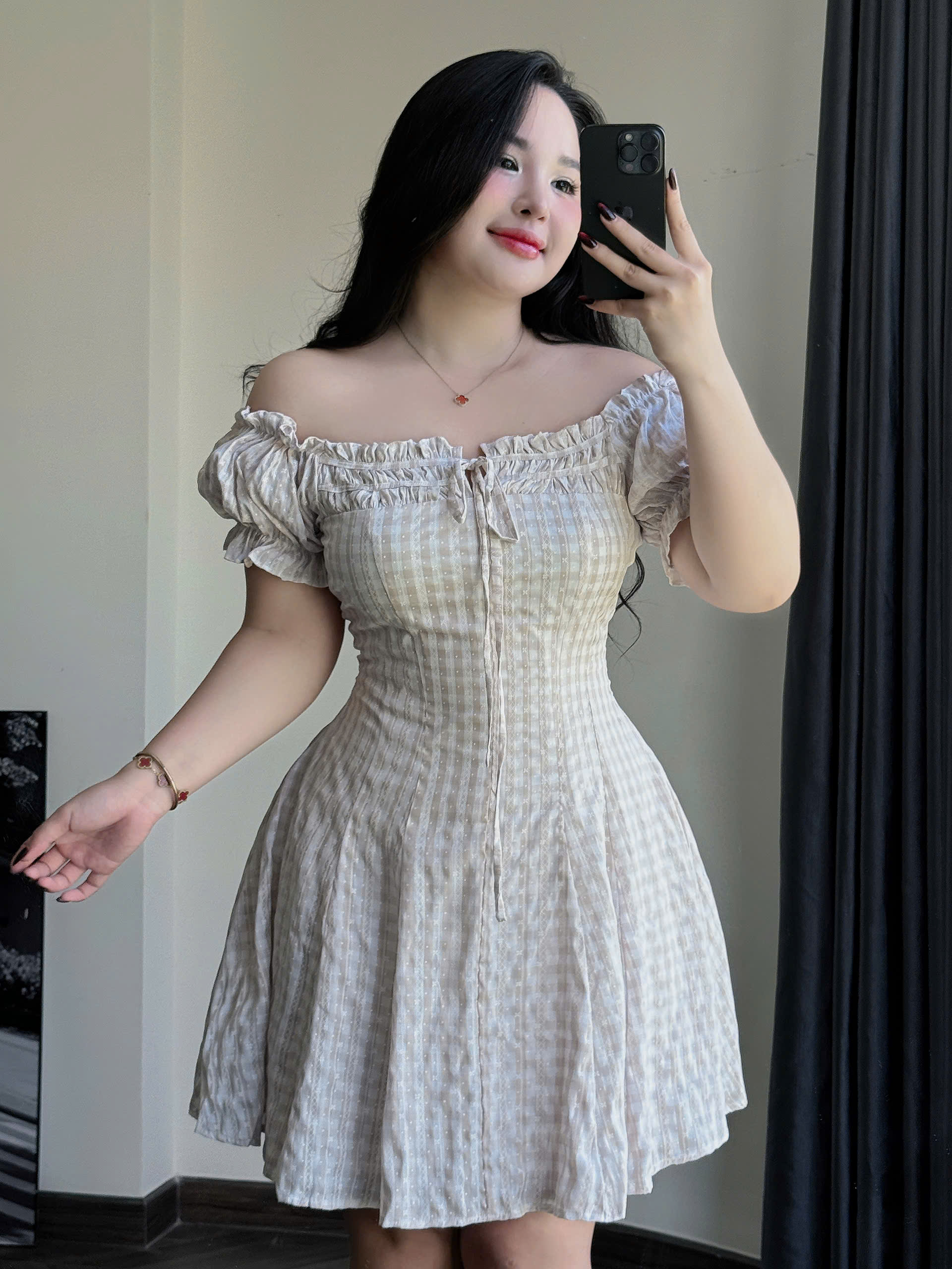 BIGSIZE - Đầm dáng A trễ vai kiểu sọc caro V-DA189 dành cho nàng béo (L-3XL) dành cho nàng béo mập từ 55-95kg