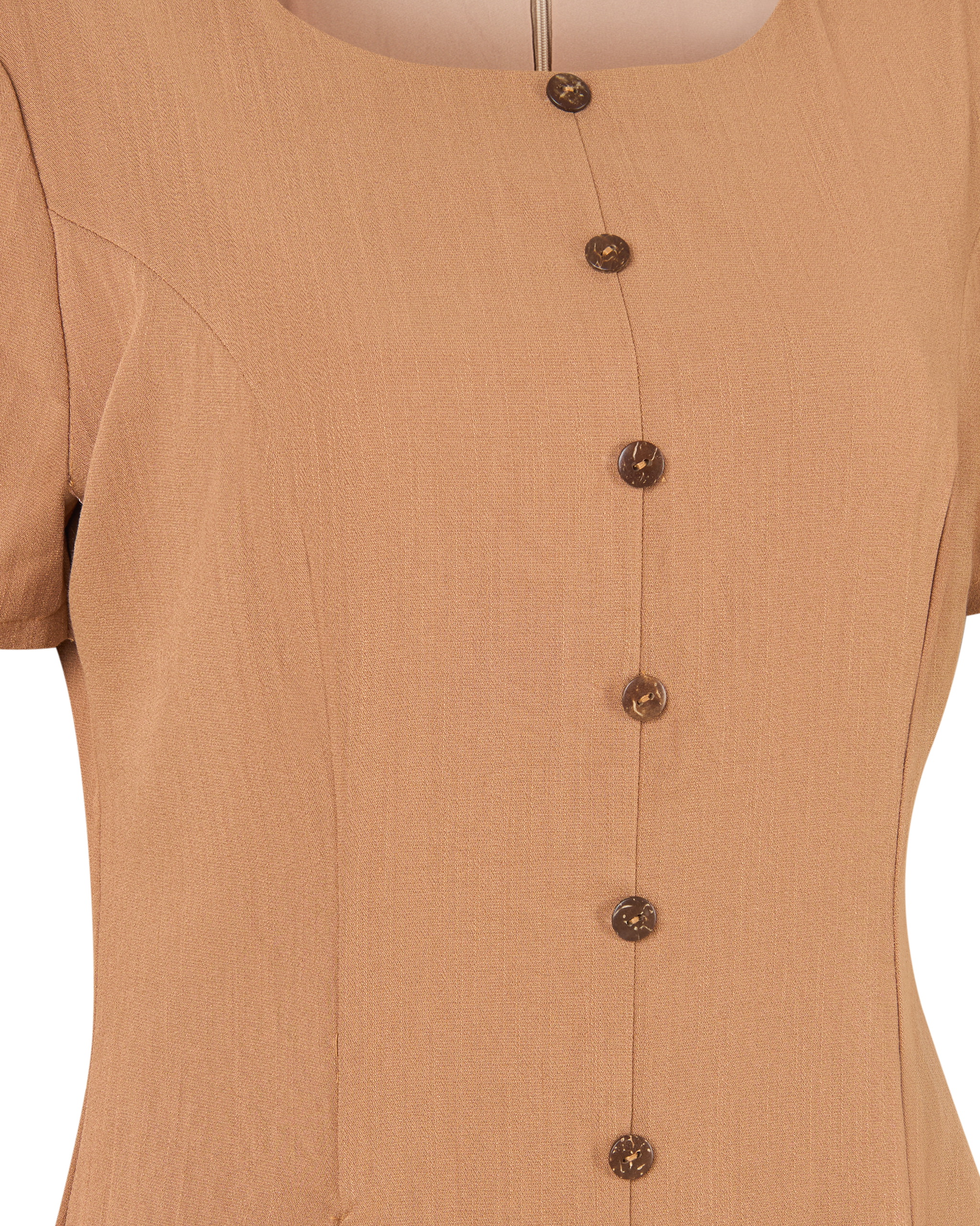 - Kiểu dáng : đầm 2 lớp , dáng dài , phần trên rã cách điêụ giúp fit dáng người mặc , tay áo ngắn có độ phồng nhẹ trên vai , thân trước có phối nút gỗ xinh xắn, 2 bên hông đầm có 2 túi thật trễ phần ông tạo kiểu kèm nhún tạo độ xòe cho đầm :