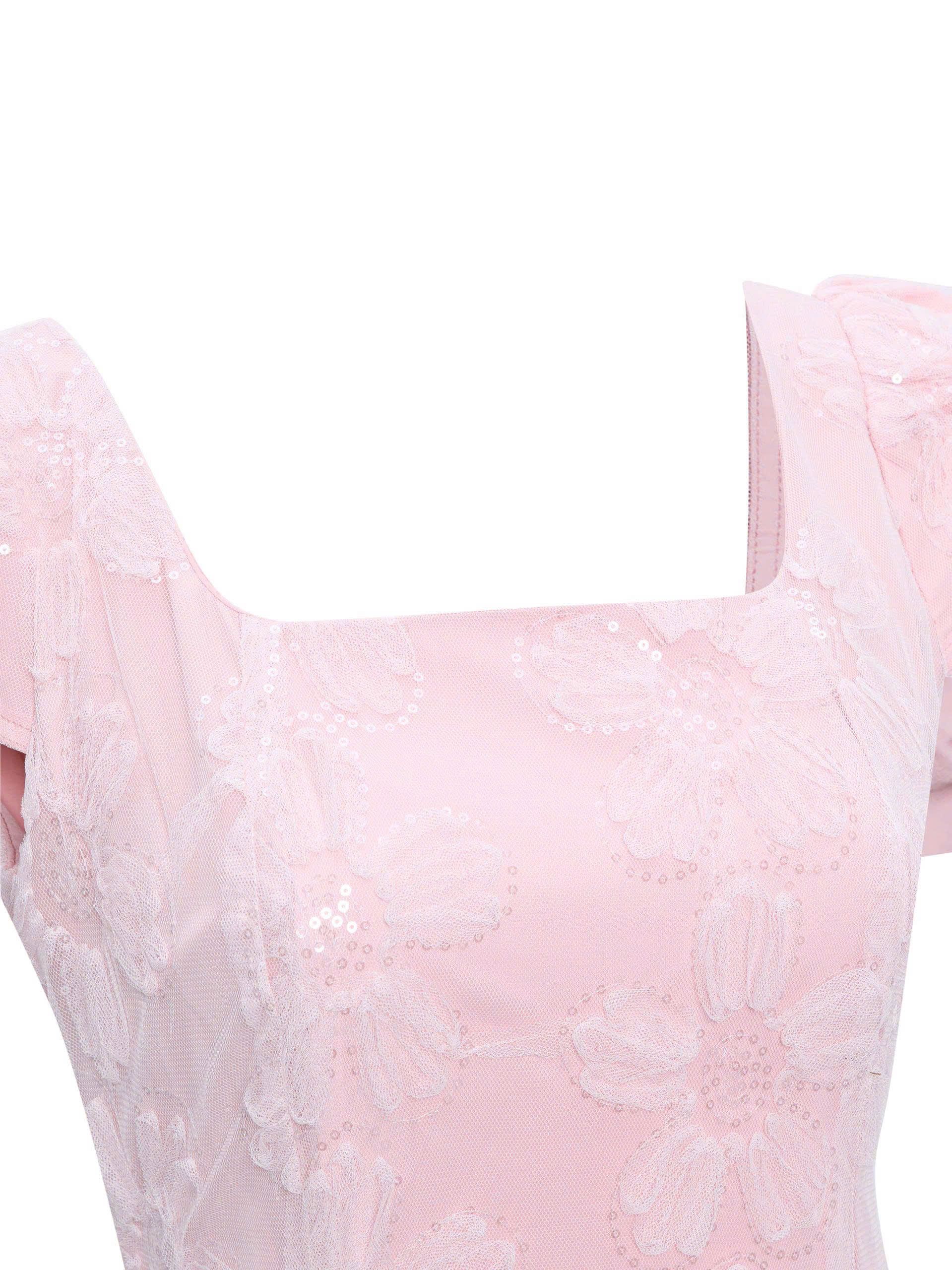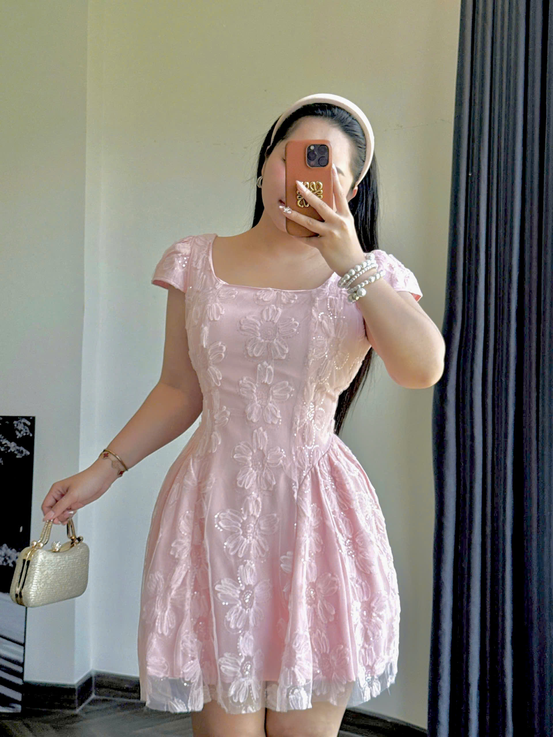 - Kiểu dáng : đầm 3 lớp , dáng ngắn , đầm cổ vuông , thiết kế rã mảnh trên thân giúp fit dáng người mặc hơn , 2 bên hông có nhún nhẹ tạo độ phồng cho đầm , tay cách điệu kiểu có nhún nhẹ đầu vai .