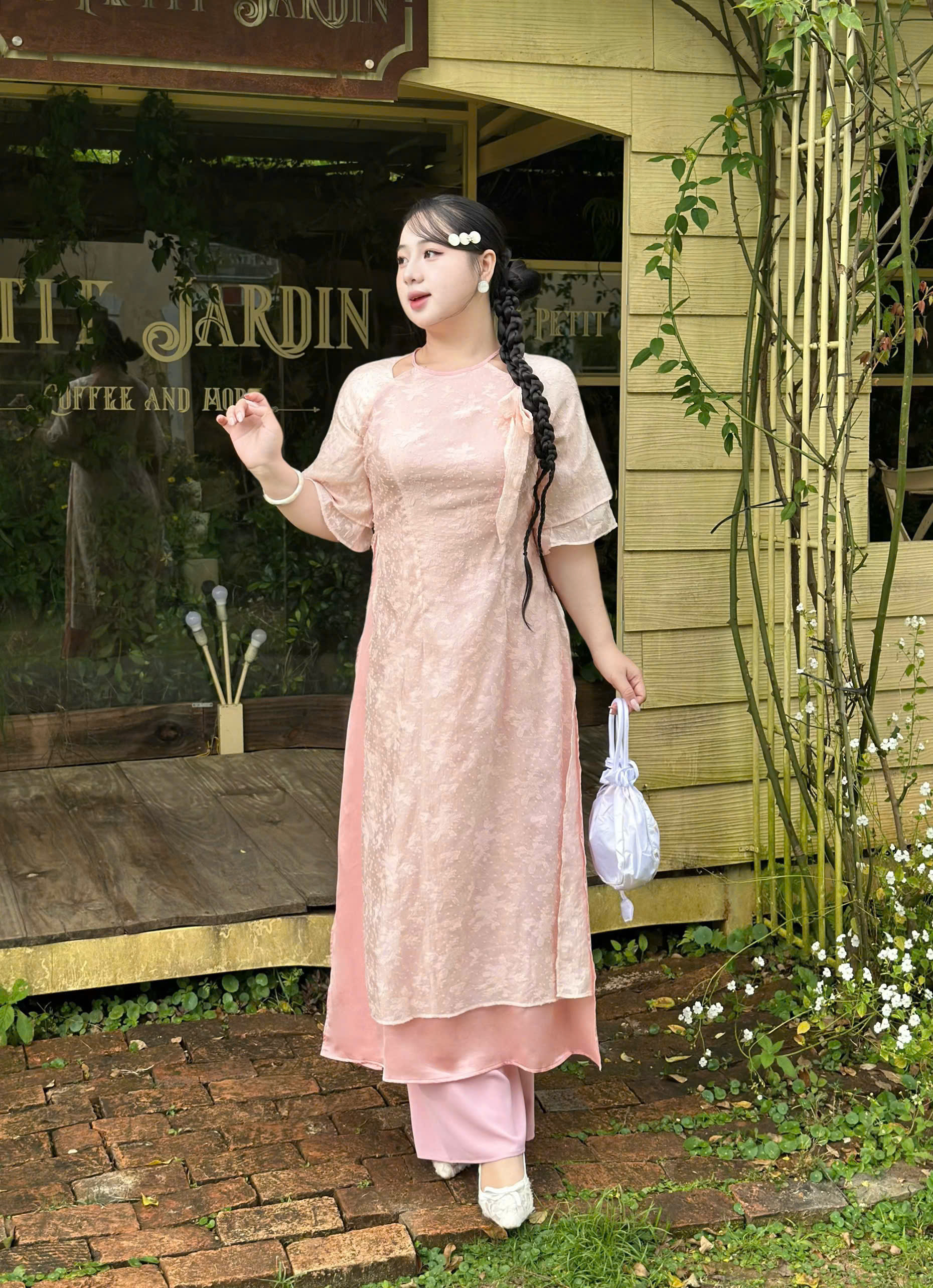 BIGSIZE NỮ - Áo dài kiểu voan phối nơ V-AD023