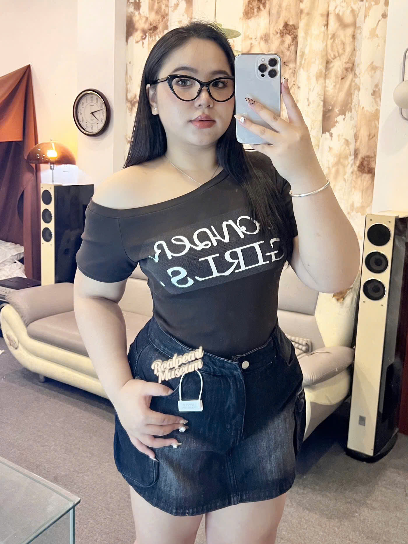 ÁO THUN LỆCH VAI IN CHỮ BIGSIZE T-AT9071 DÀNH CHO NÀNG MŨM MĨM TỪ 55-90KG