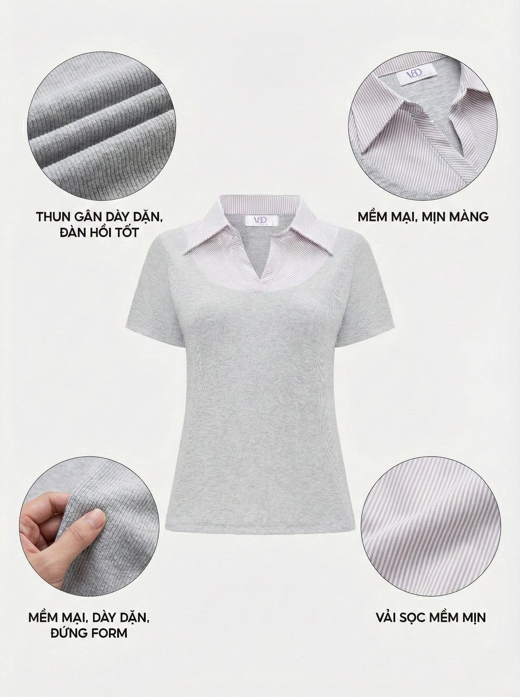 - Chất liệu : thun gân dày dặn không sợ lộ , có độ co giãn tốt , mềm mại , phối vải sọc mềm mịn .