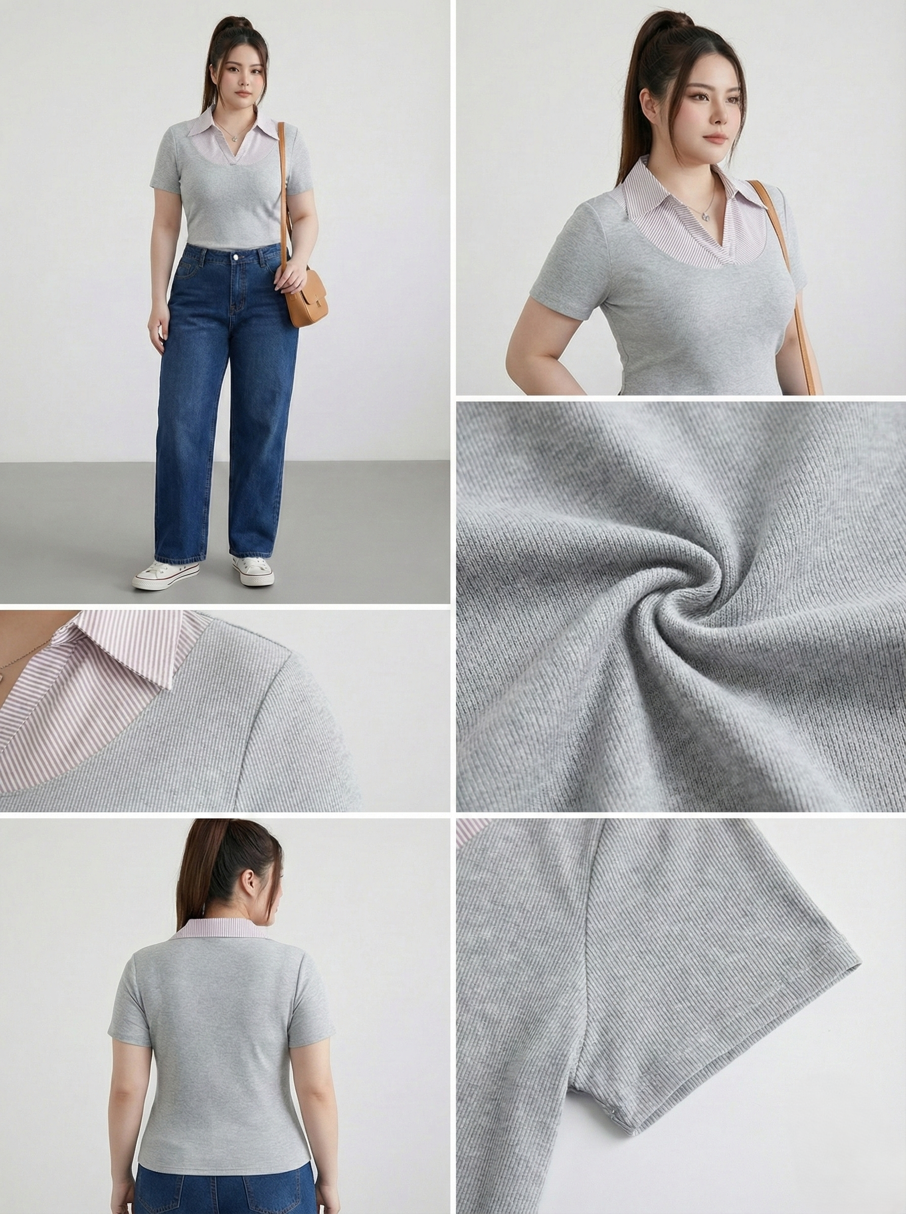 BIGSIZE NỮ- Áo thun phối cổ sơ mi V-AK092
