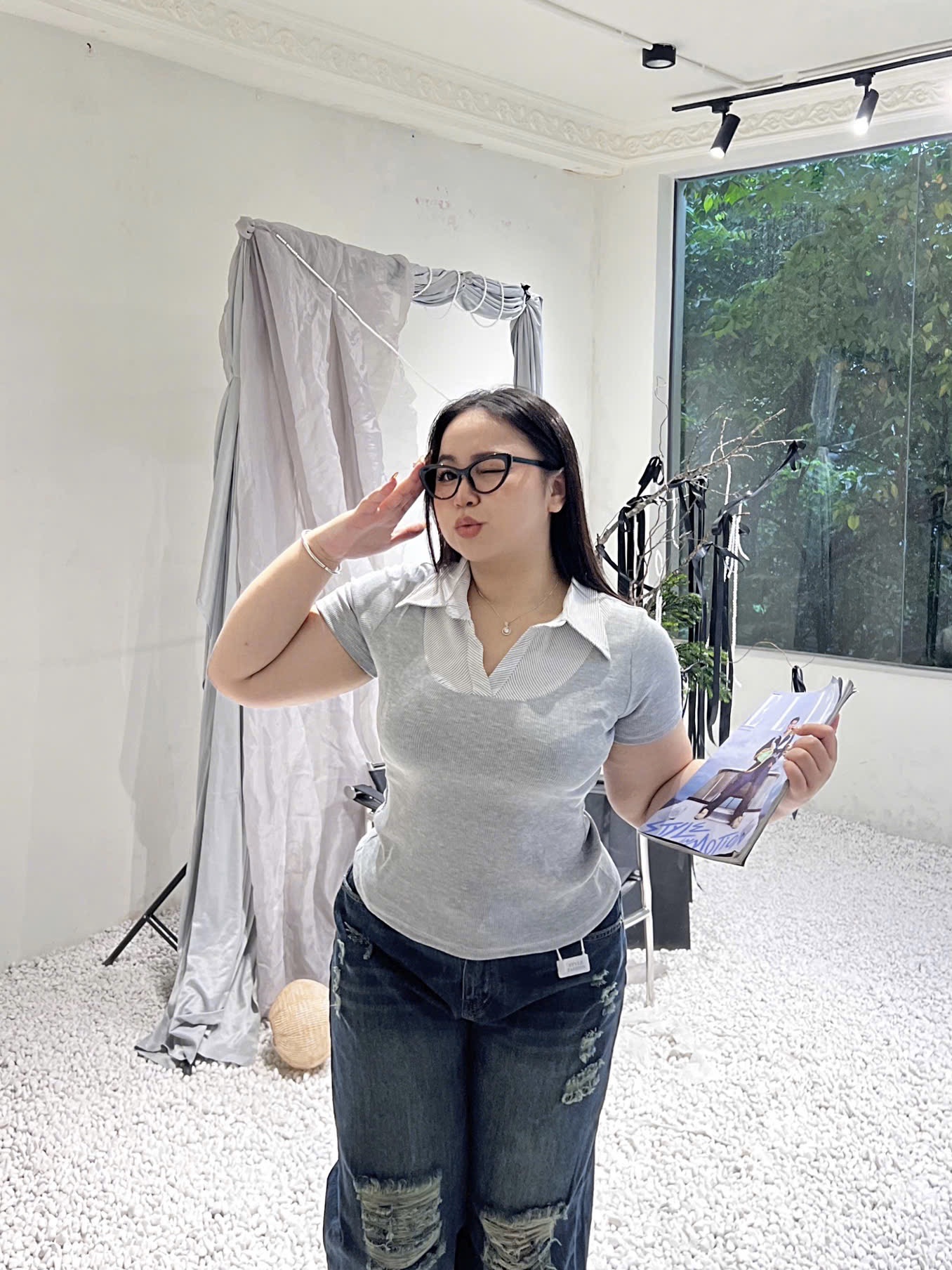 BIGSIZE NỮ - ÁO THUN PHỐI CỔ SƠ MI BIGSIZE V-AK092 DÀNH CHO NÀNG MŨM MĨM TỪ 55-90KG