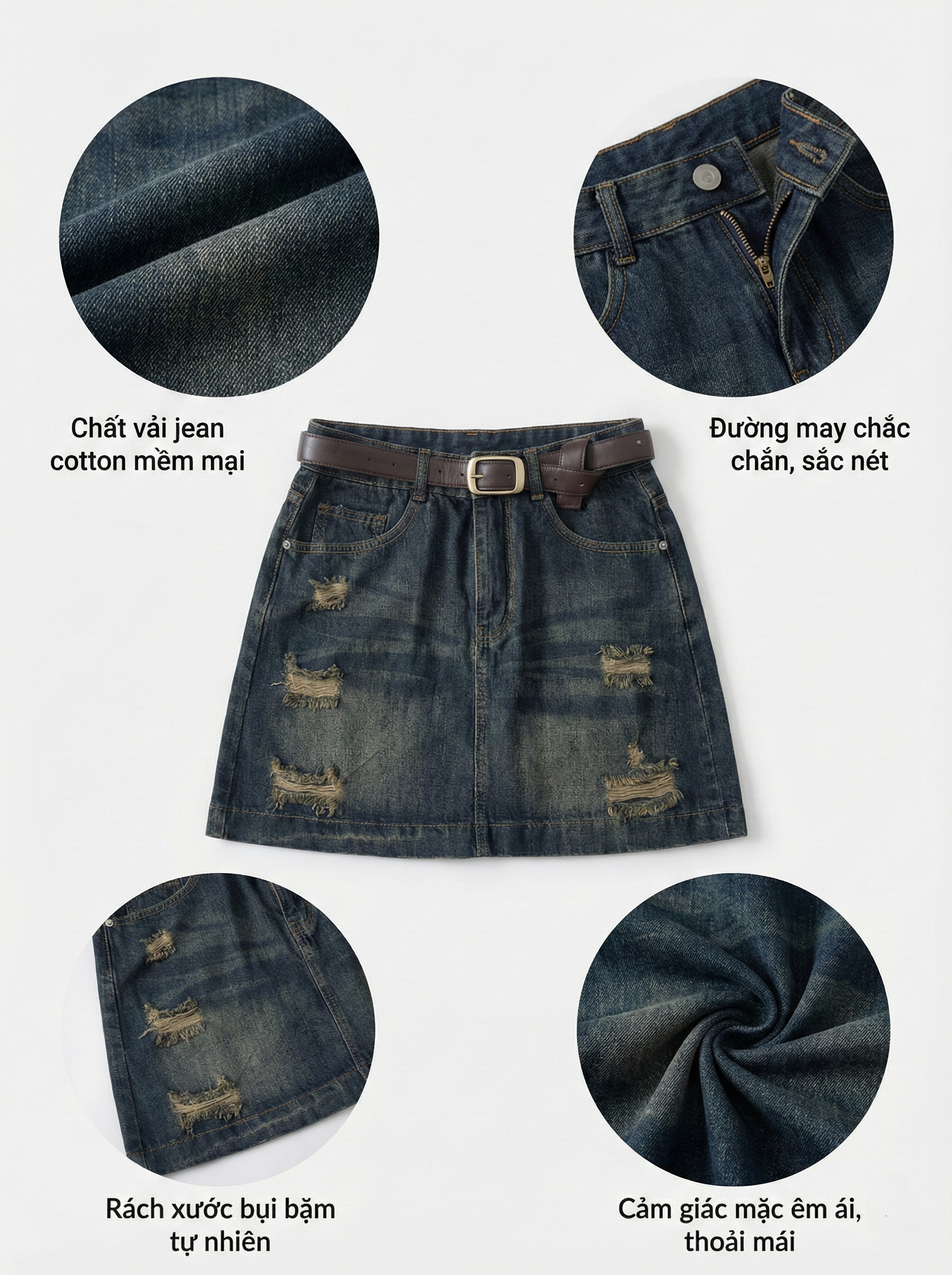 Kiểu dáng: Chân váy Jeans chữ A (Quần giả váy).