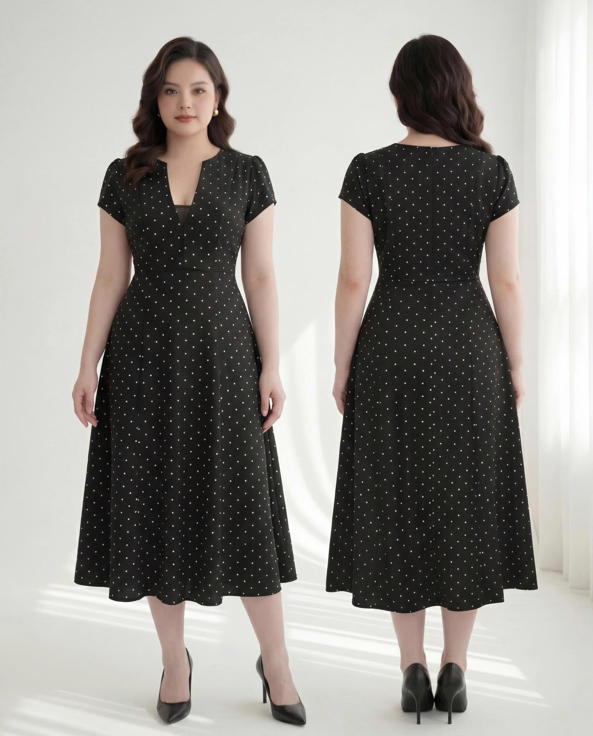 BIGSIZE NỮ - Đầm chấm bi dáng dài dành cho nàng béo 55-90kg V-DA218