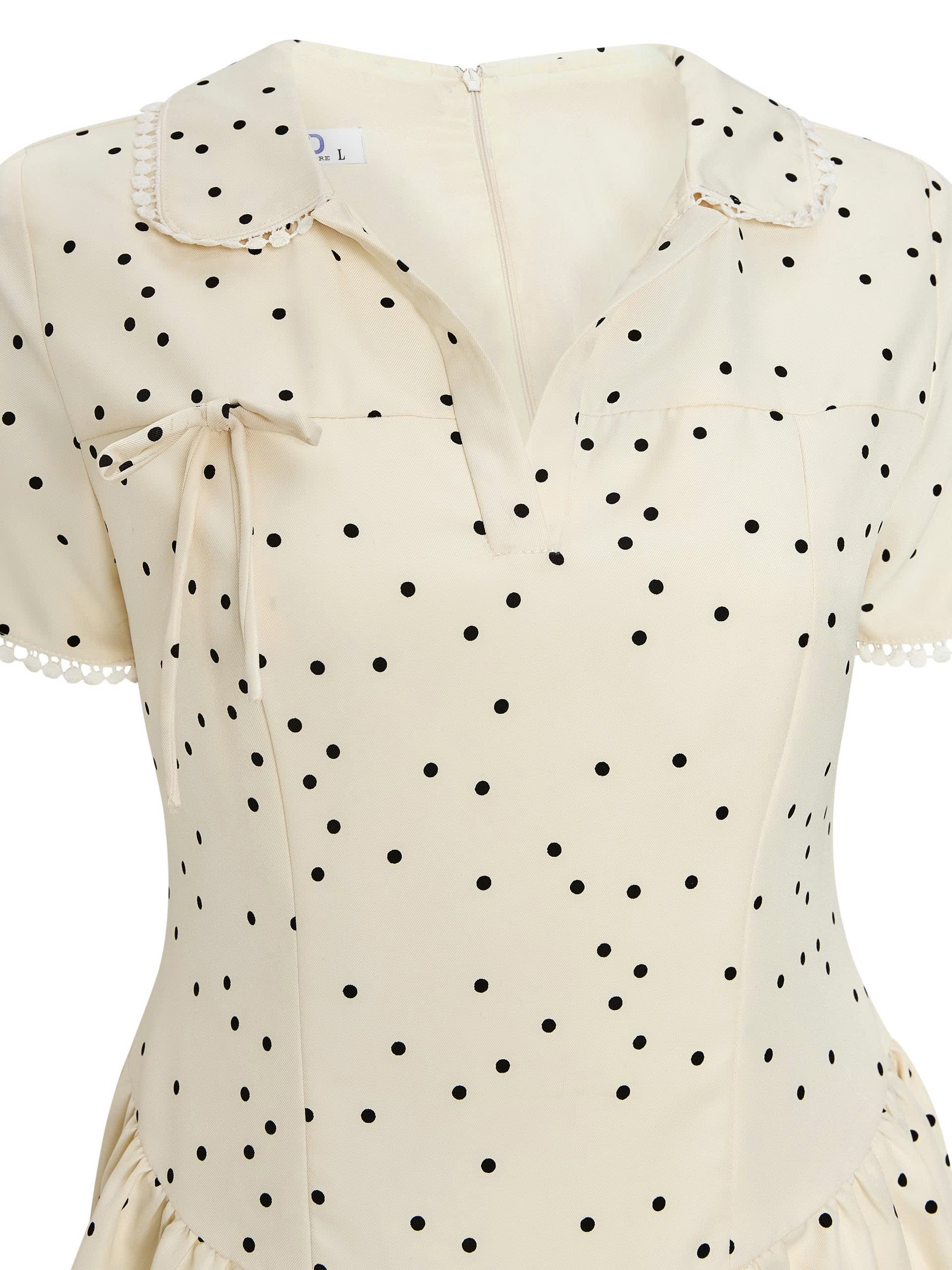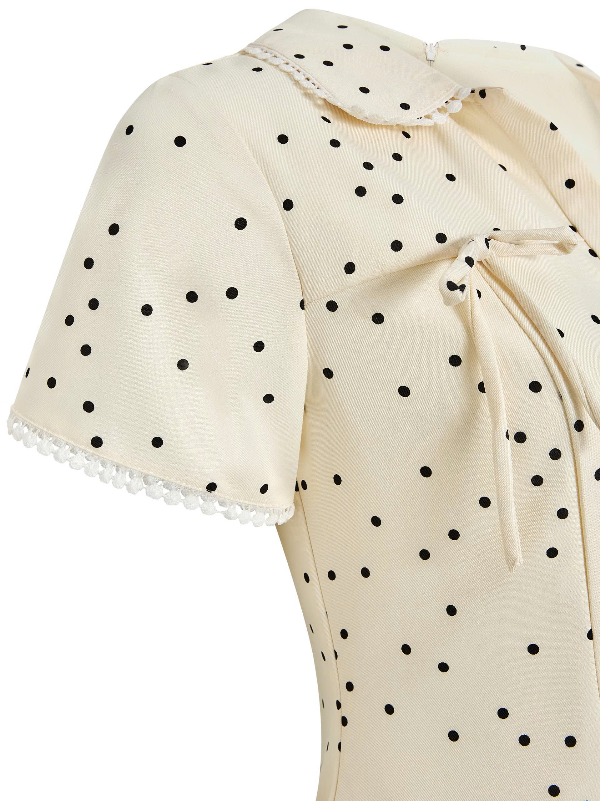 BIGSIZE NỮ - ĐẦM DÁNG NGẮN CHẤM BI PHỐI CỔ REN V- DA203 - THỜI TRANG BIGSIZE
