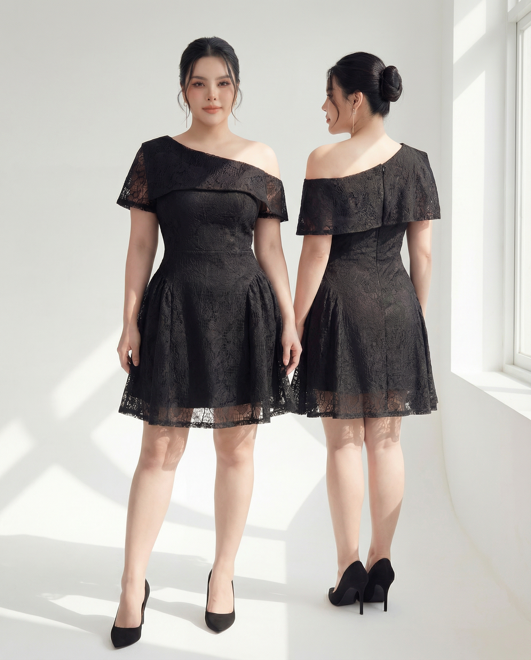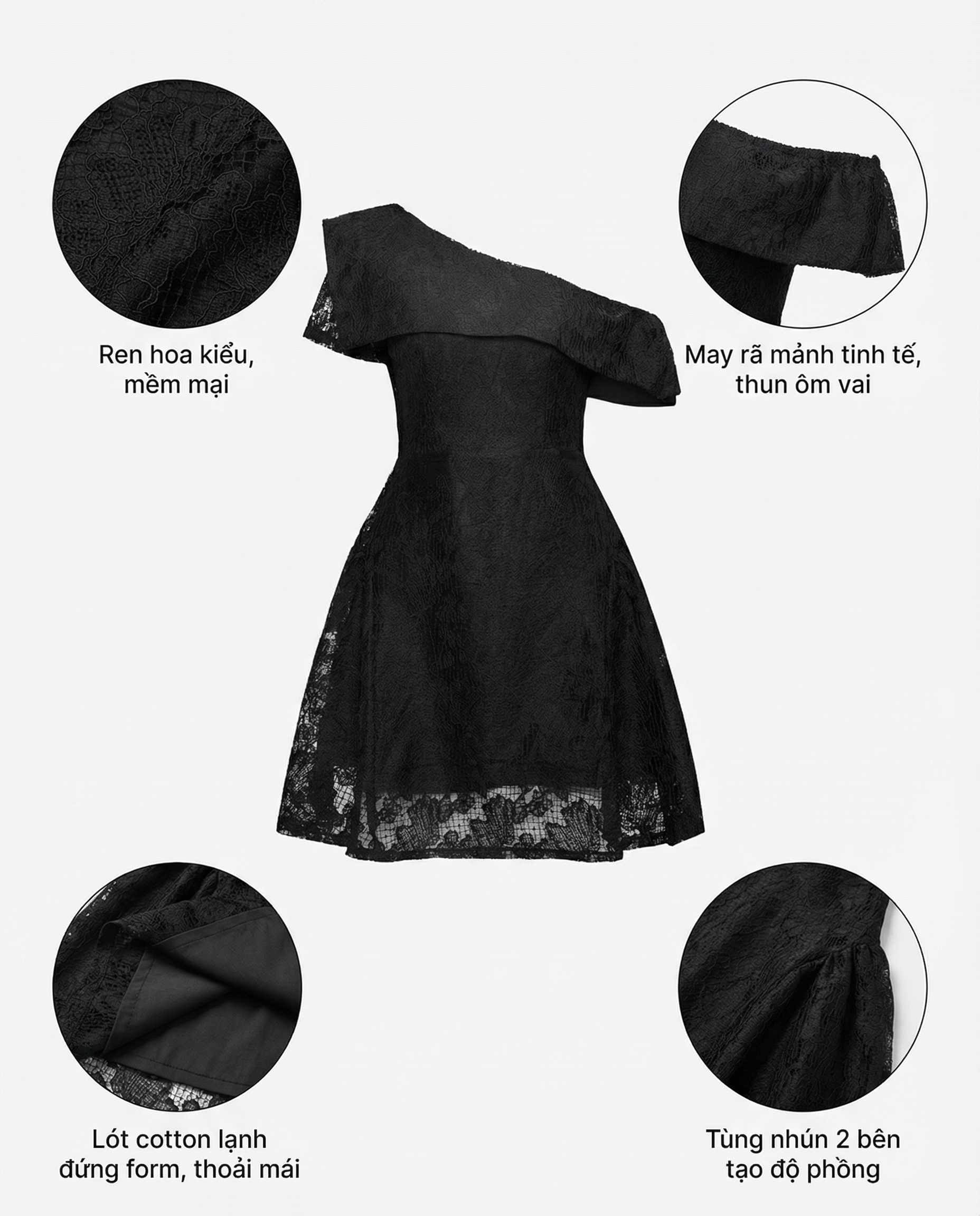 BIGSIZE NỮ- ĐẦM DÁNG A REN KIỂU TRỄ VAI 1 BÊN V-DA210 DÀNH CHO NÀNG BÉO - THỜI TRANG BIGSIZE