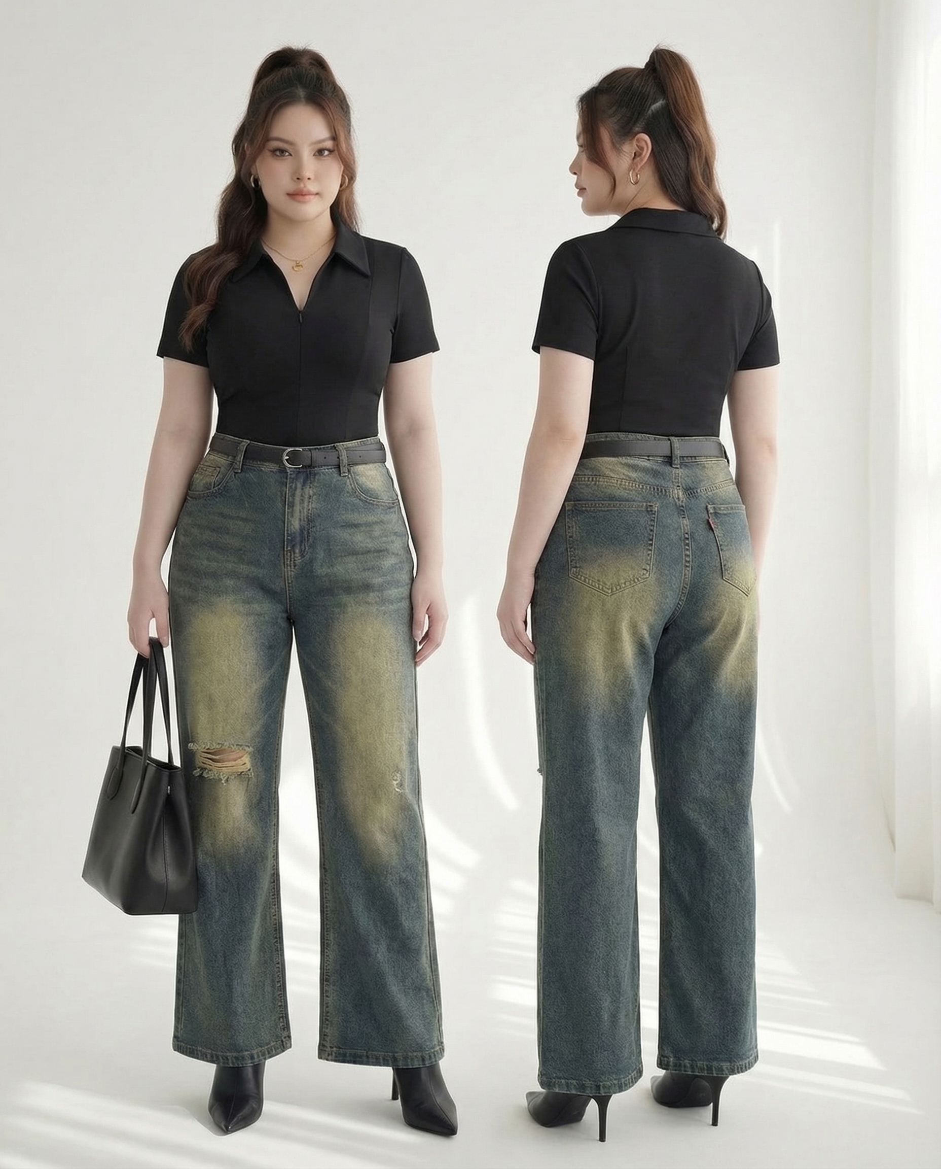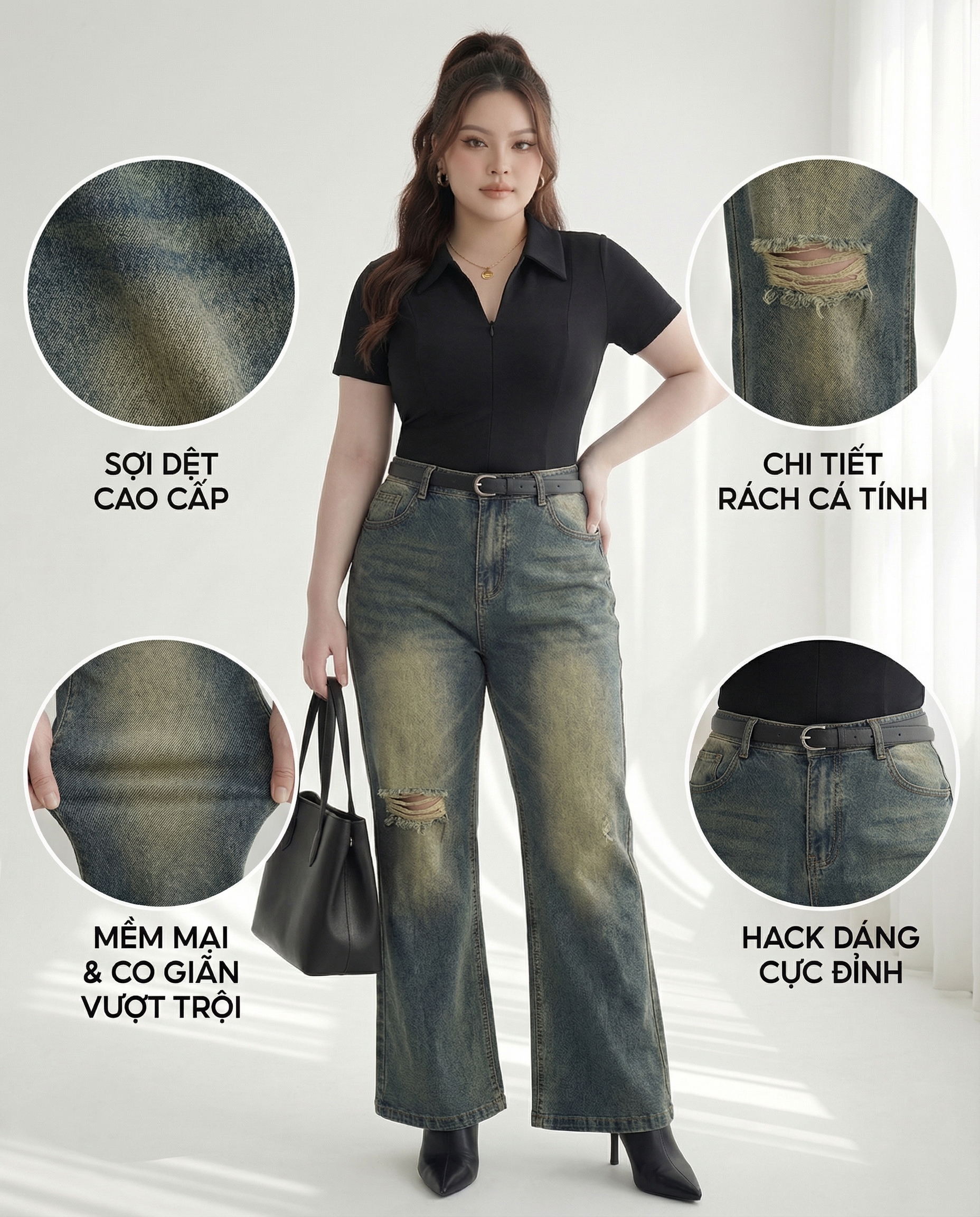 Chào đón sự trở lại đầy ngoạn mục của phong cách retro với mẫu quần jean nữ ống loe cao cấp. Đây là món đồ không thể thiếu trong tủ đồ của những cô nàng yêu thích vẻ đẹp hiện đại, thanh lịch nhưng vẫn muốn tôn vinh những đường cong tự nhiên.