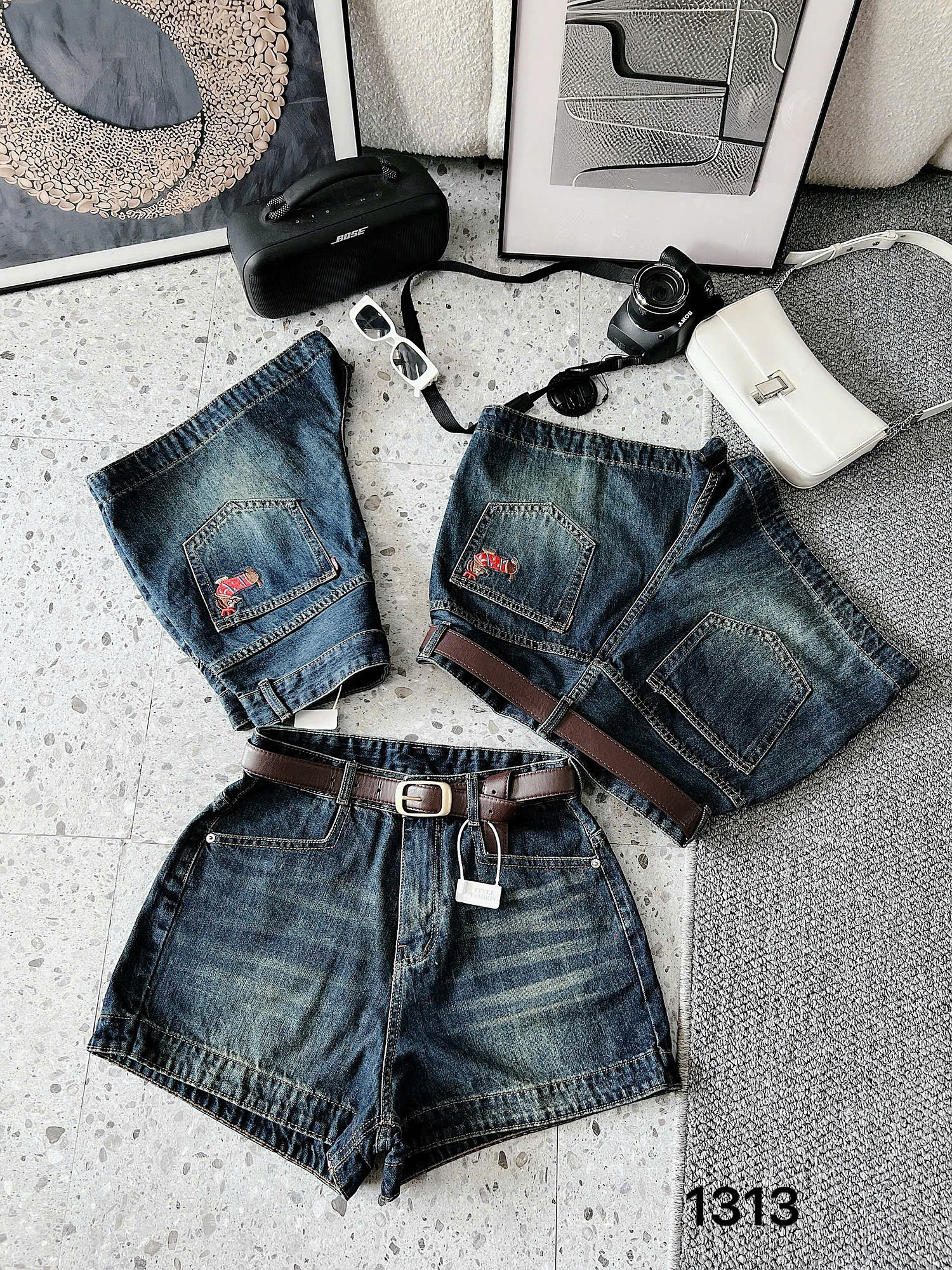 BIGSIZE NỮ - Quàn short jean thêu túi vuông T-QSJ1313