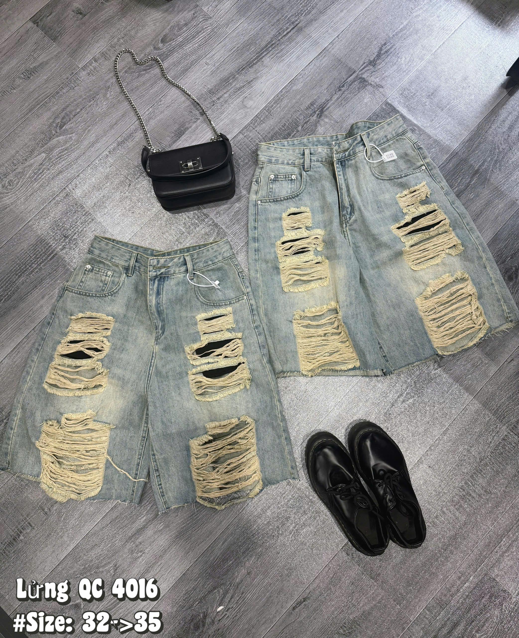 Kiểu dáng: Quần Jeans lửng (Bermuda shorts), rách đùi.