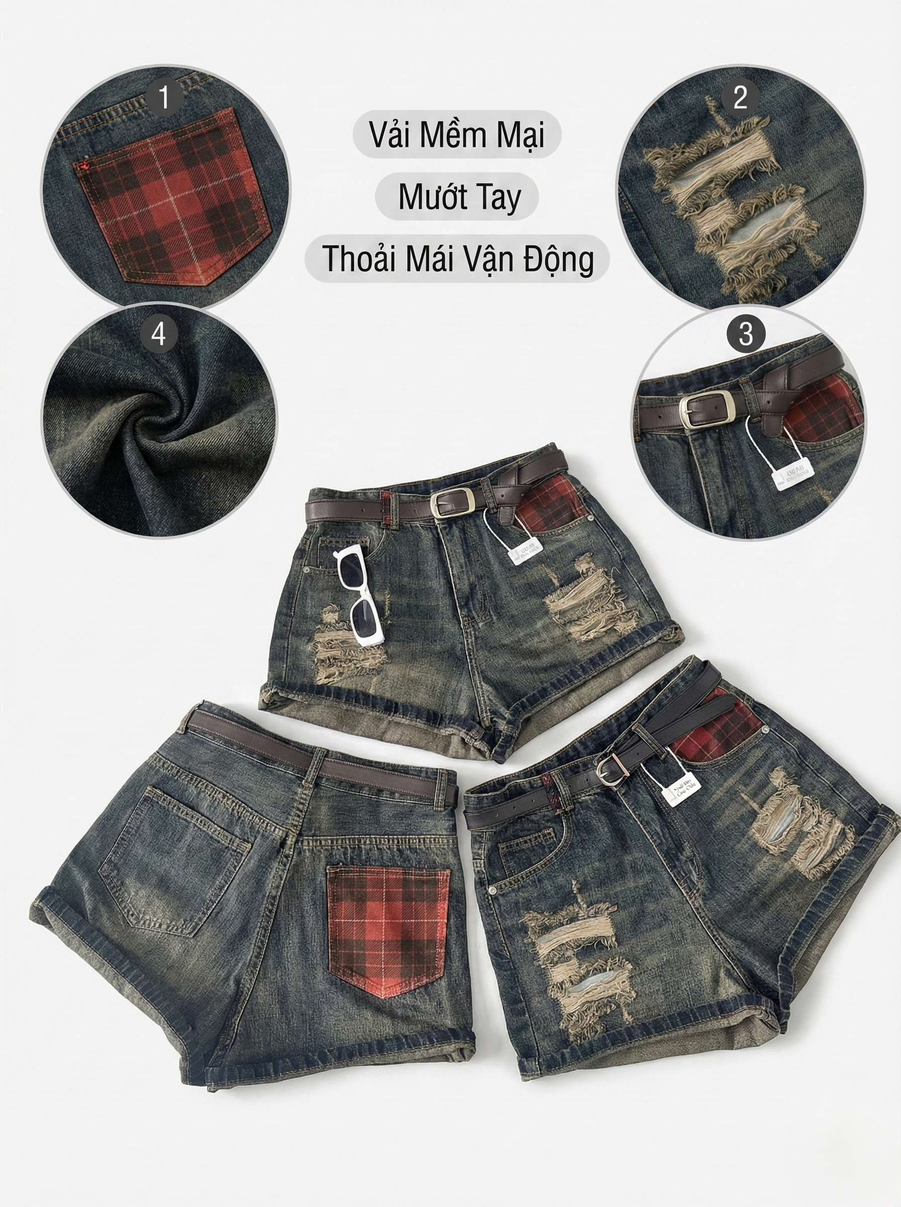 Giới thiệu: Nếu nàng đang tìm kiếm một chiếc quần short không chỉ để mặc cho mát mà còn để thể hiện "gu" thời trang cực chất thì Mã 3110 chính là chân ái. Đây là phiên bản nâng cấp đặc biệt: màu wash "bụi" hơn, rách táo bạo hơn và phối caro đỏ mận cực kỳ cuốn hút.
