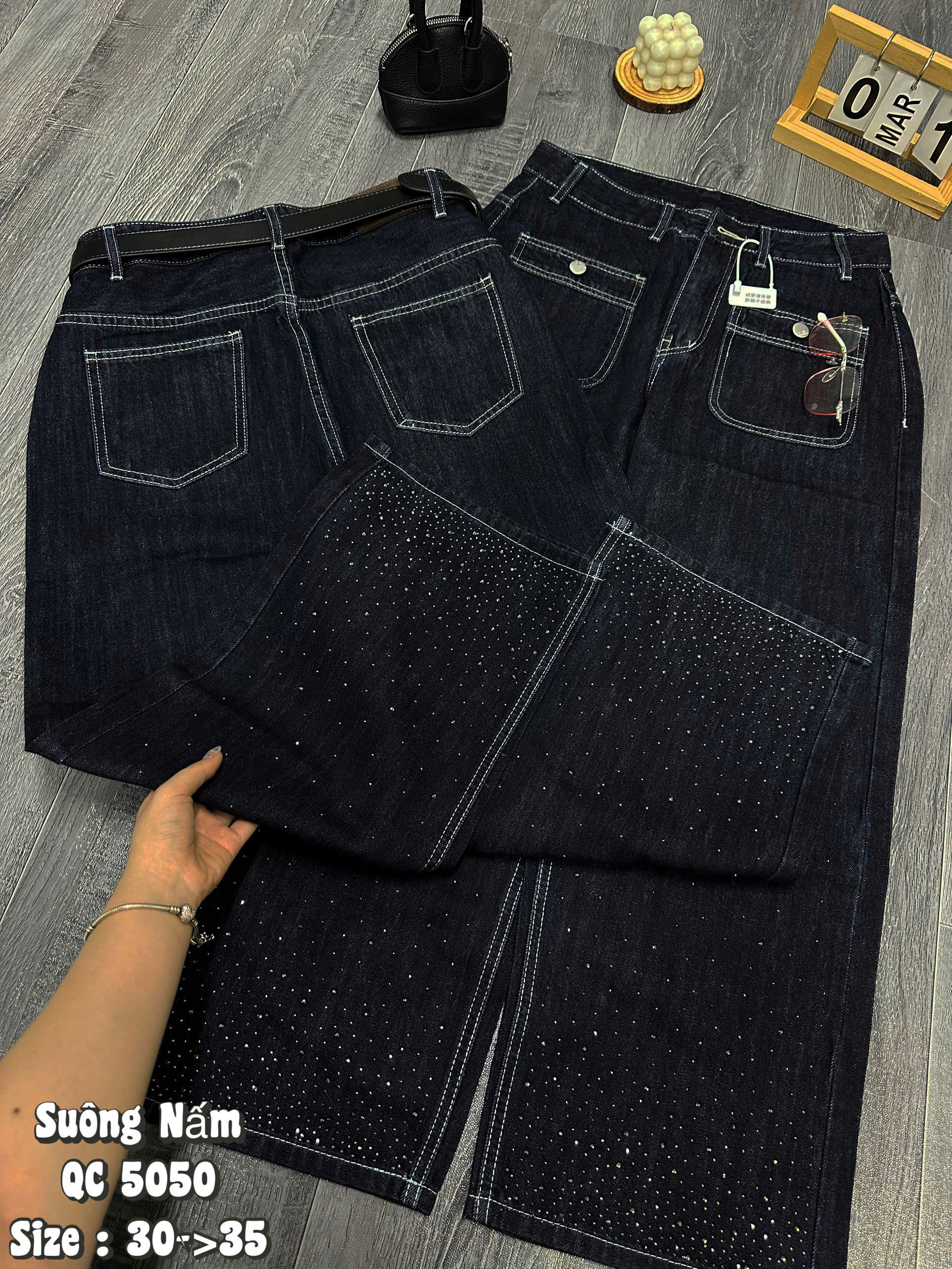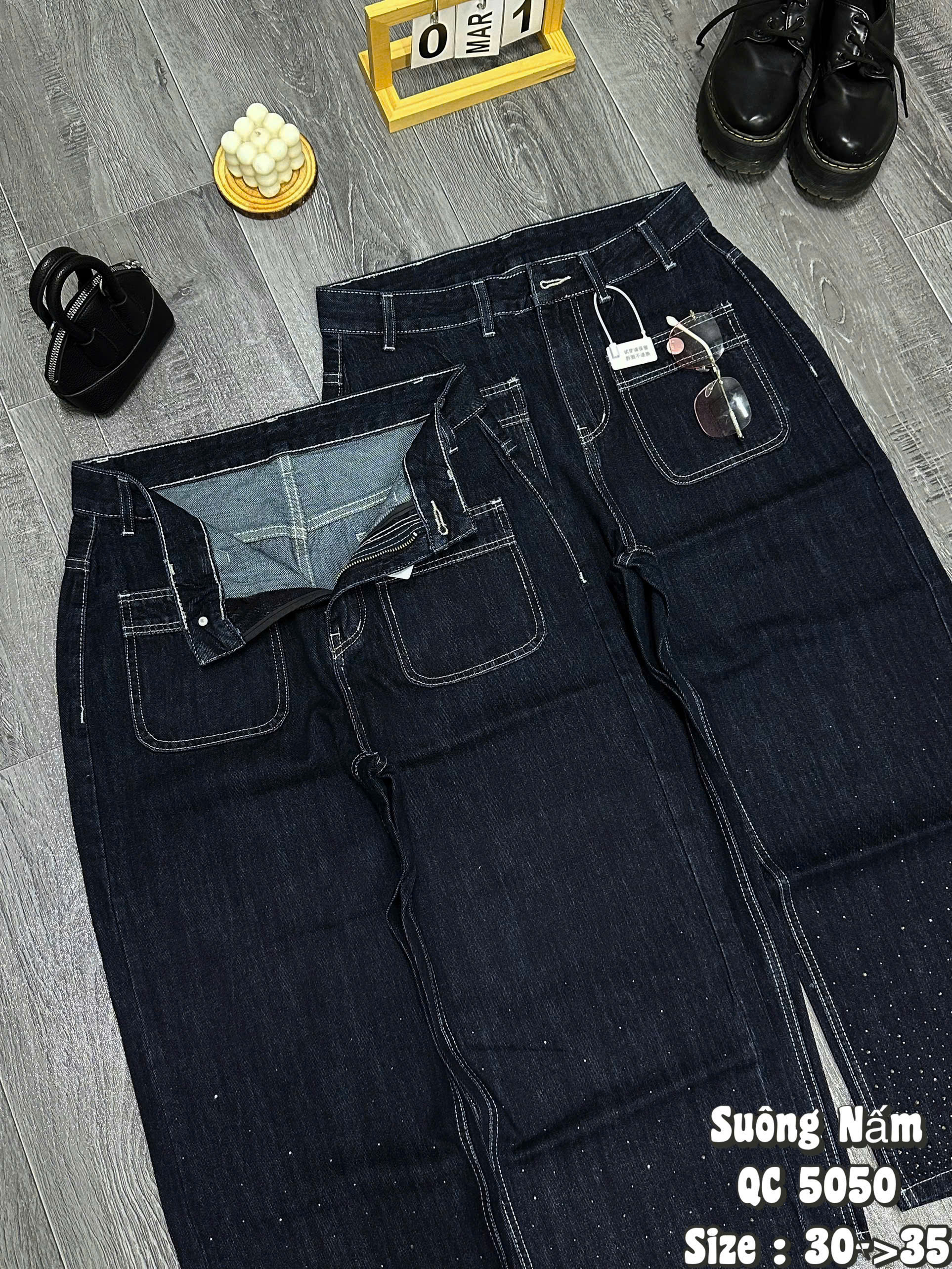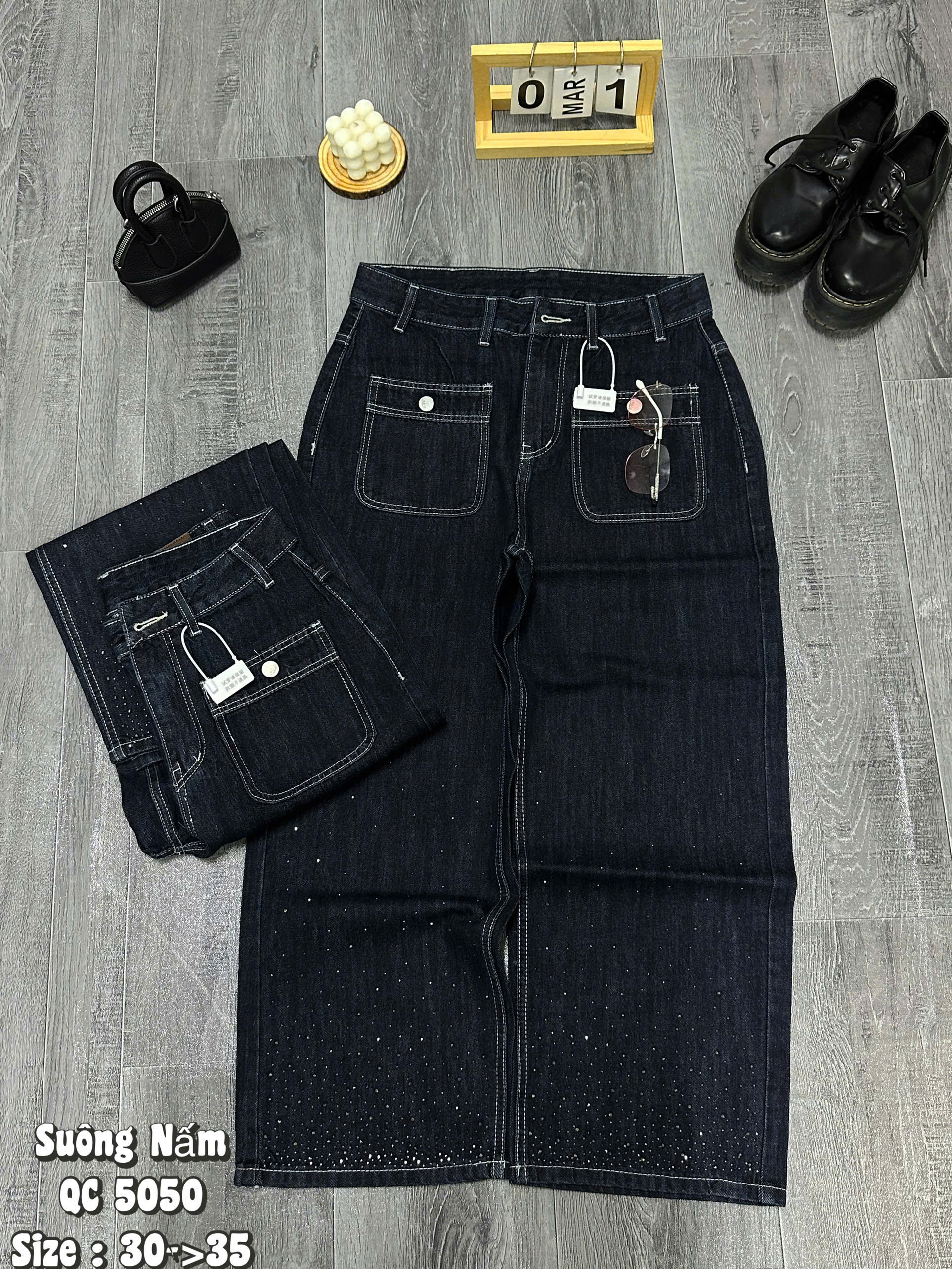 Mỗi phụ nữ đều xứng đáng sở hữu những bộ trang phục khiến mình cảm thấy tự tin và kiêu hãnh nhất. Hiểu được điều đó, phiên bản Quần Jean Ống Suông Nấm QC 5050 mới nhất đã ra đời, mang đến một định nghĩa hoàn toàn mới về thời trang "Big Size": Không chỉ là mặc vừa, mà còn phải mặc đẹp và thật đẳng cấp. Với điểm nhấn ép đá lấp lánh, đây chính là "vũ khí" bí mật giúp nàng ghi điểm tuyệt đối trong mọi ánh nhìn.
