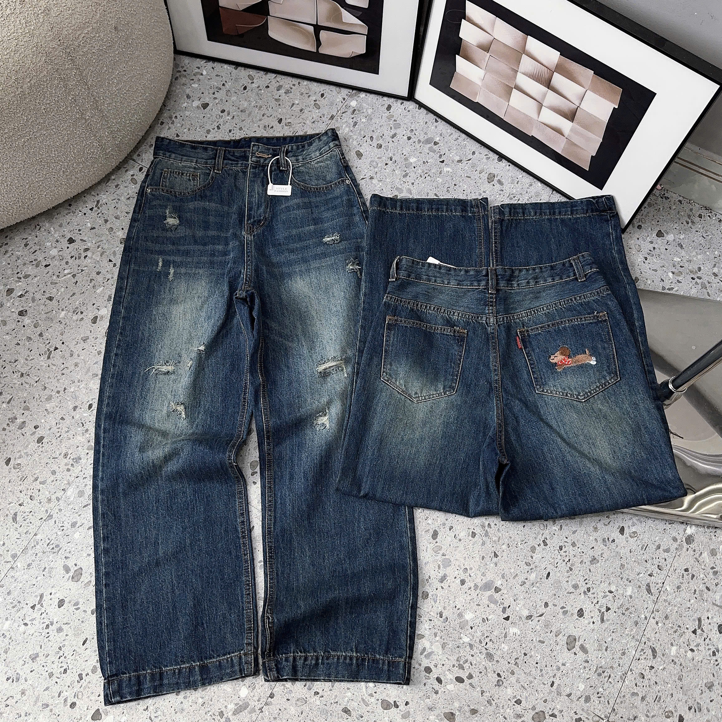 Kiểu dáng: Quần Jeans ống suông, rách xước.