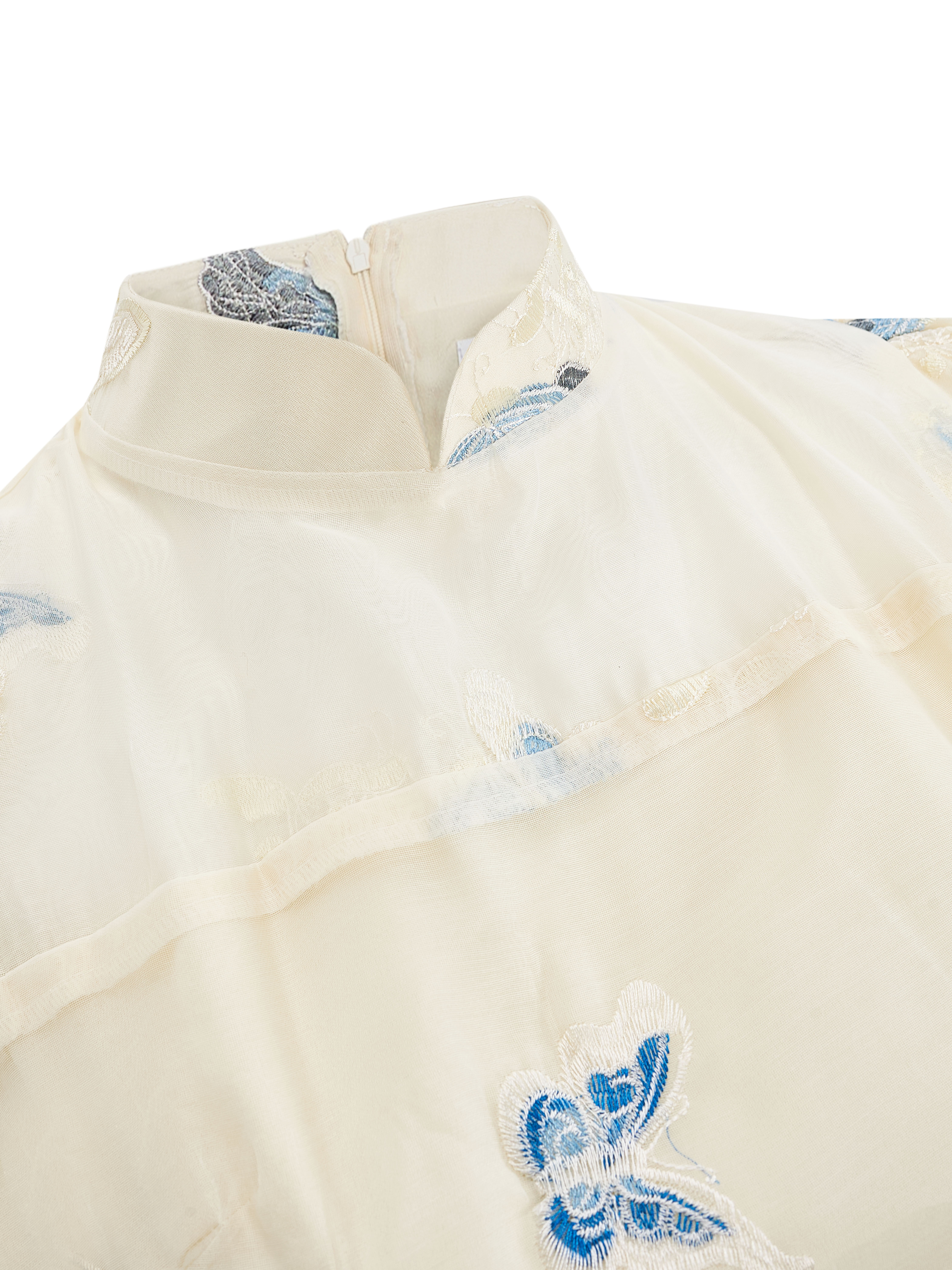 BIGSIZE NỮ - Áo dài voan thêu hồ điệp kiểu V- AD021