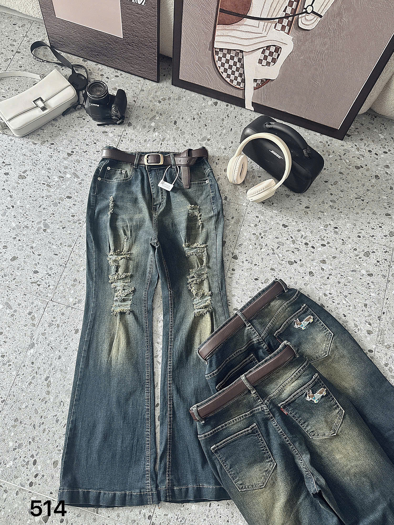 📢 ĐẸP CHẤN ĐỘNG - MÃ 514 VỪA LÊN KỆ! Nếu nàng đang tìm kiếm một chiếc quần jeans để "lột xác" phong cách thì Mã 514 chính là chân ái. Thiết kế rách bụi bặm kết hợp cùng dáng loe sành điệu tạo nên một siêu phẩm vừa cá tính, vừa quyến rũ. Đảm bảo mặc lên là "hack chân" dài miên man, thu hút mọi ánh nhìn!
