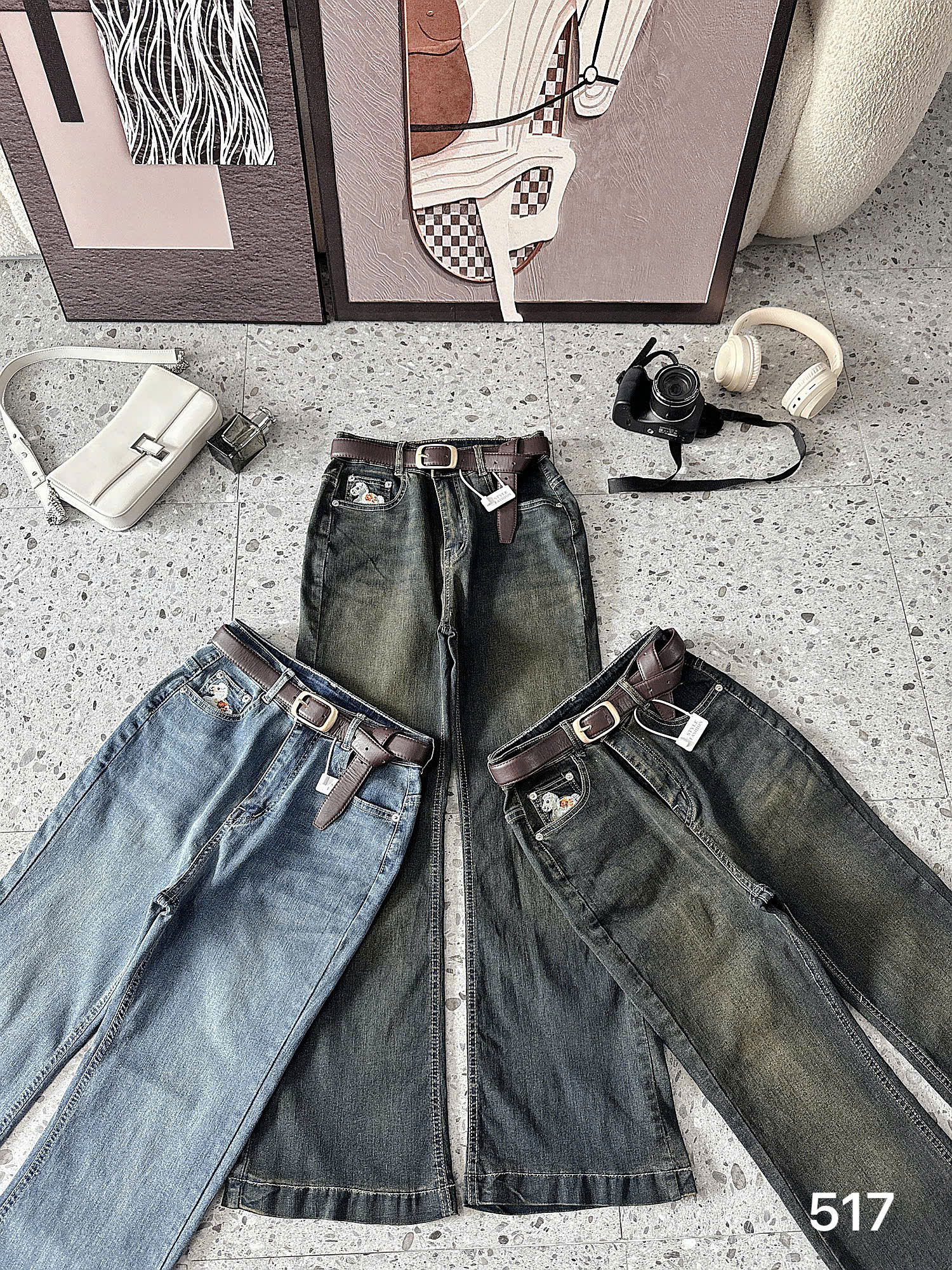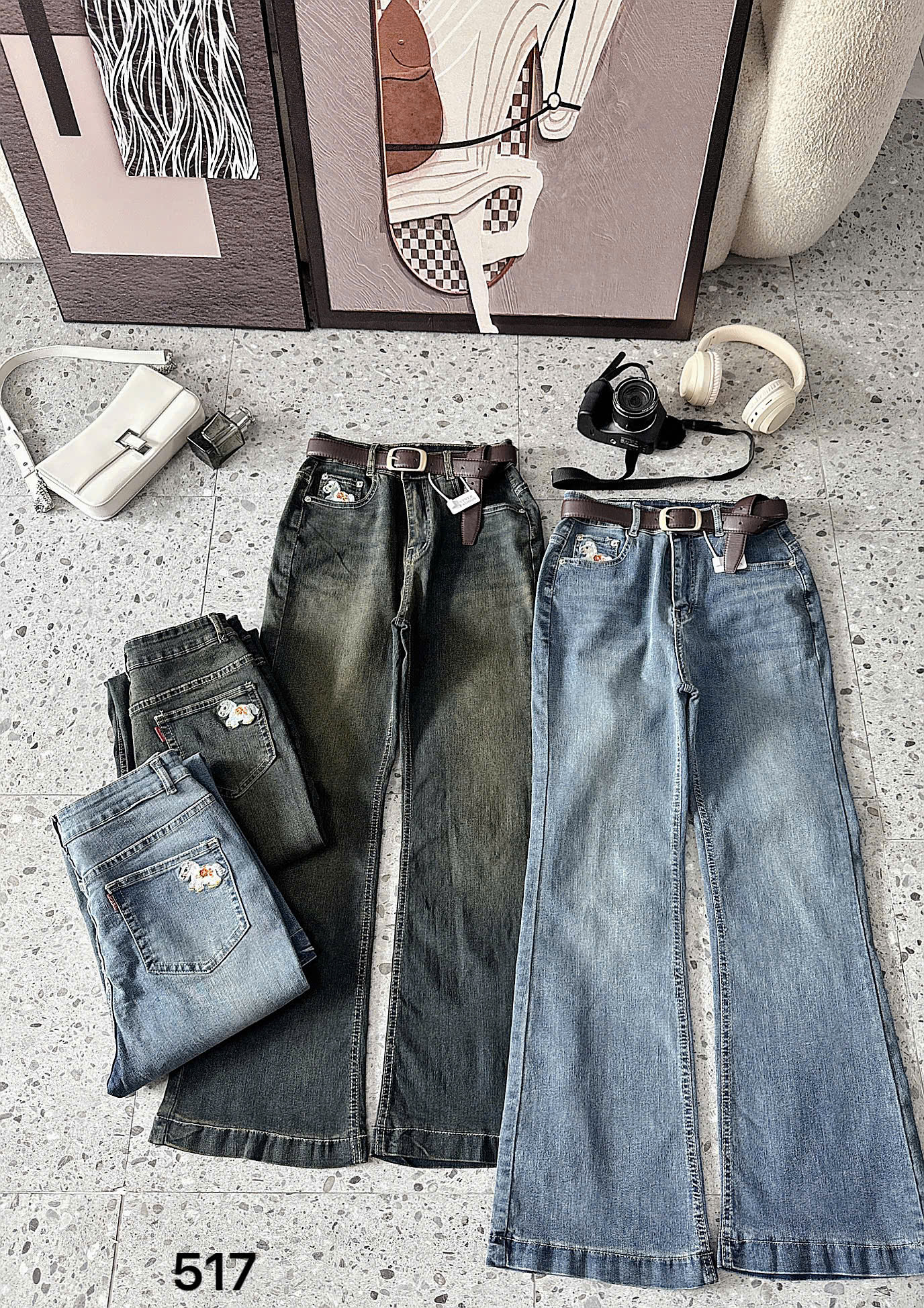 Chị em nào mê mẩn dáng quần ống loe hack dáng thì không thể bỏ qua mã 517 này nha. Với họa tiết thêu ngựa nhỏ nhắn và form lưng cao giấu bụng, đây chắc chắn là item giúp các nàng mũm mĩm tự tin sải bước.