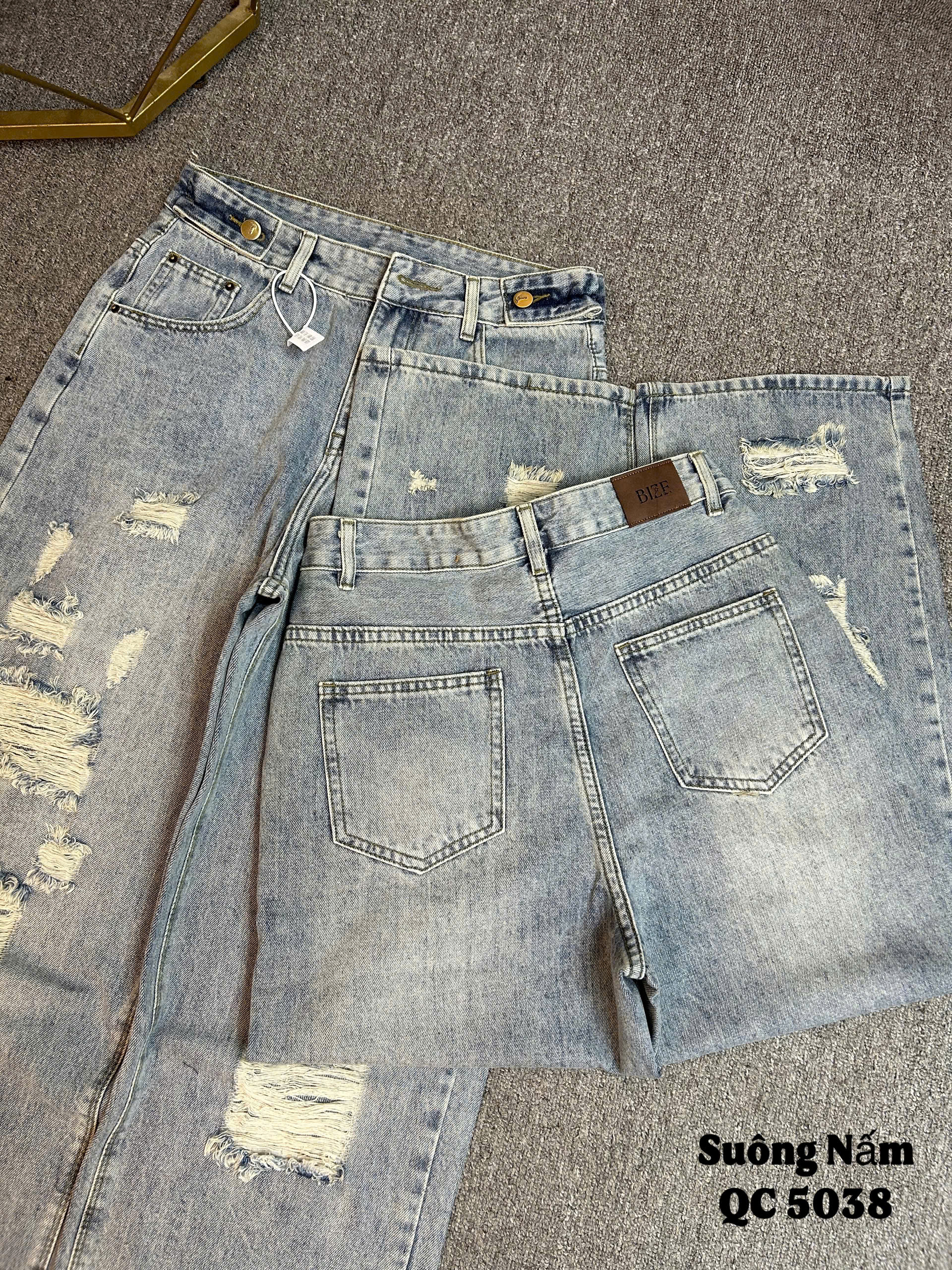 Kiểu dáng: Quần Jeans ống suông, rách nhiều, lưng kiểu.