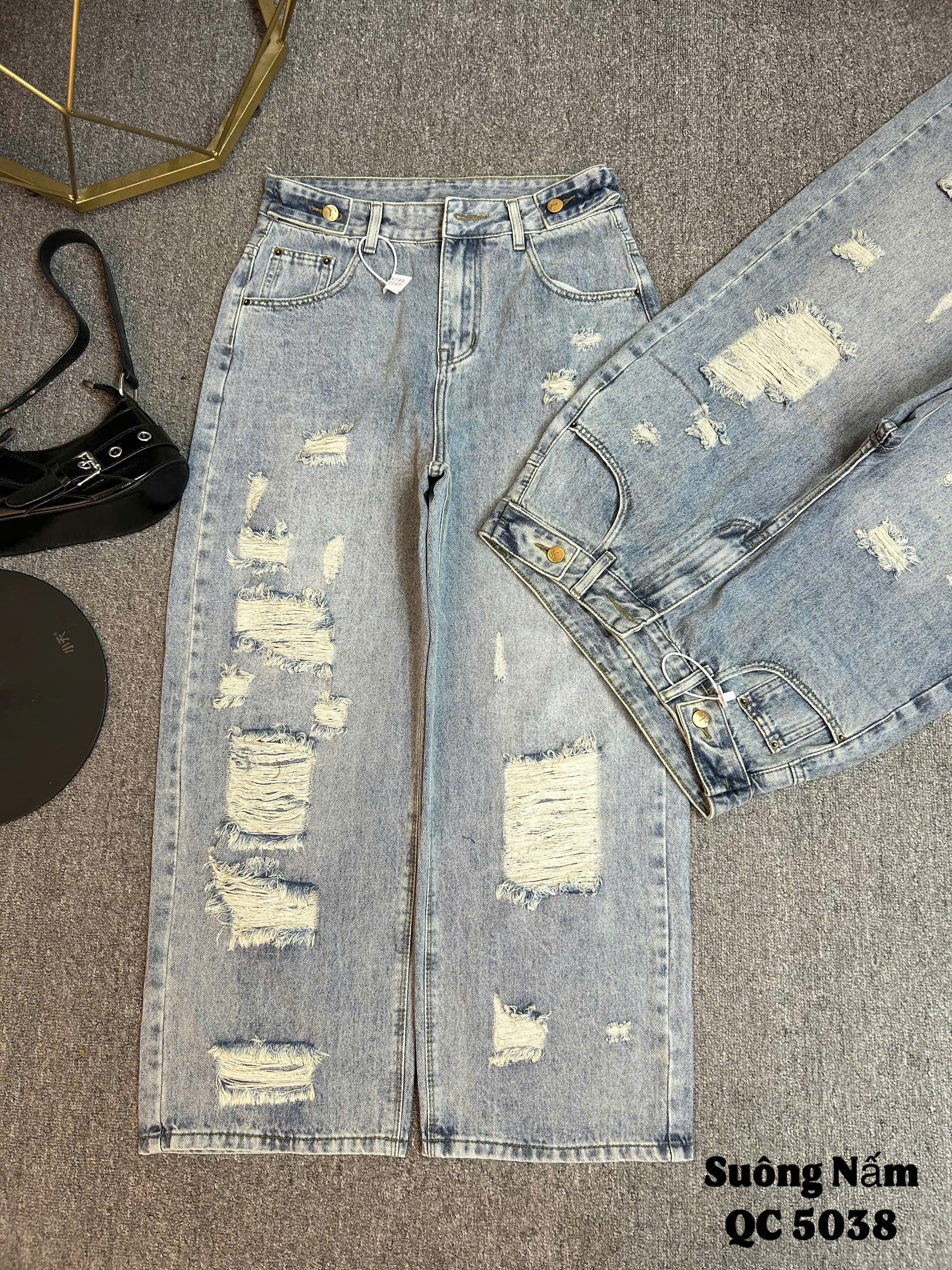 BIGSIZE- Quần jean suông nấm rách T- QJ5038