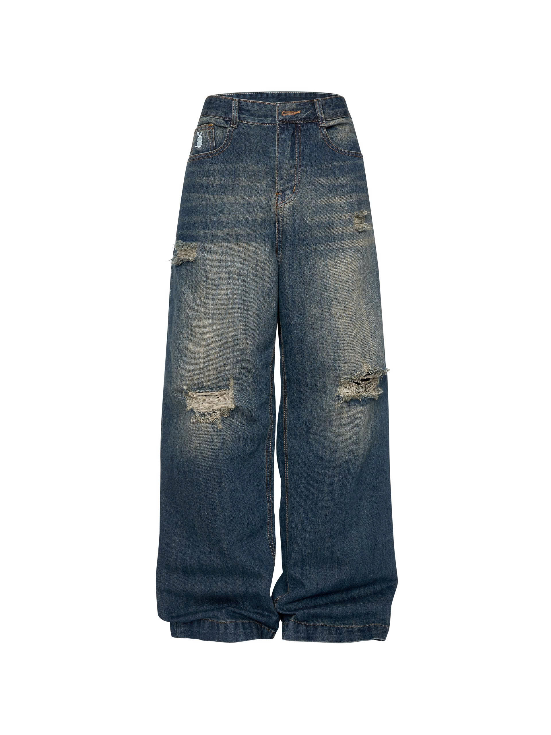 BIGSIZE - Quần jean suông thêu thỏ rách T-QJ389
