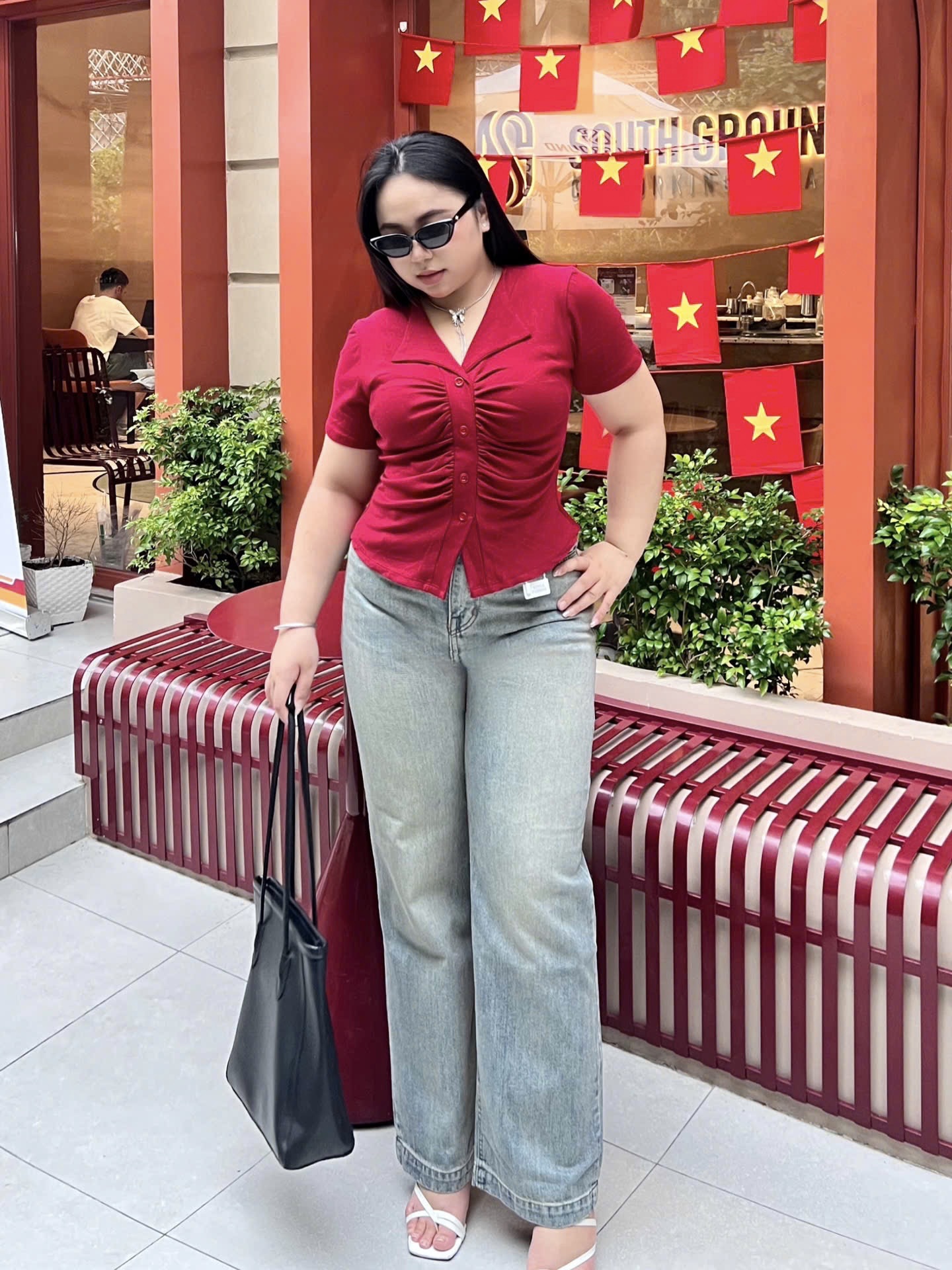 - Kiểu dáng : quần jean ống suông lưng cao , form basic , có túi thật trước và sau , lưng cao giúp hack dáng che bụng mỡ ,lai quần lớn , thêu chạy viền chữ V làm điểm nhấn , dài quần từ 103-105cm.