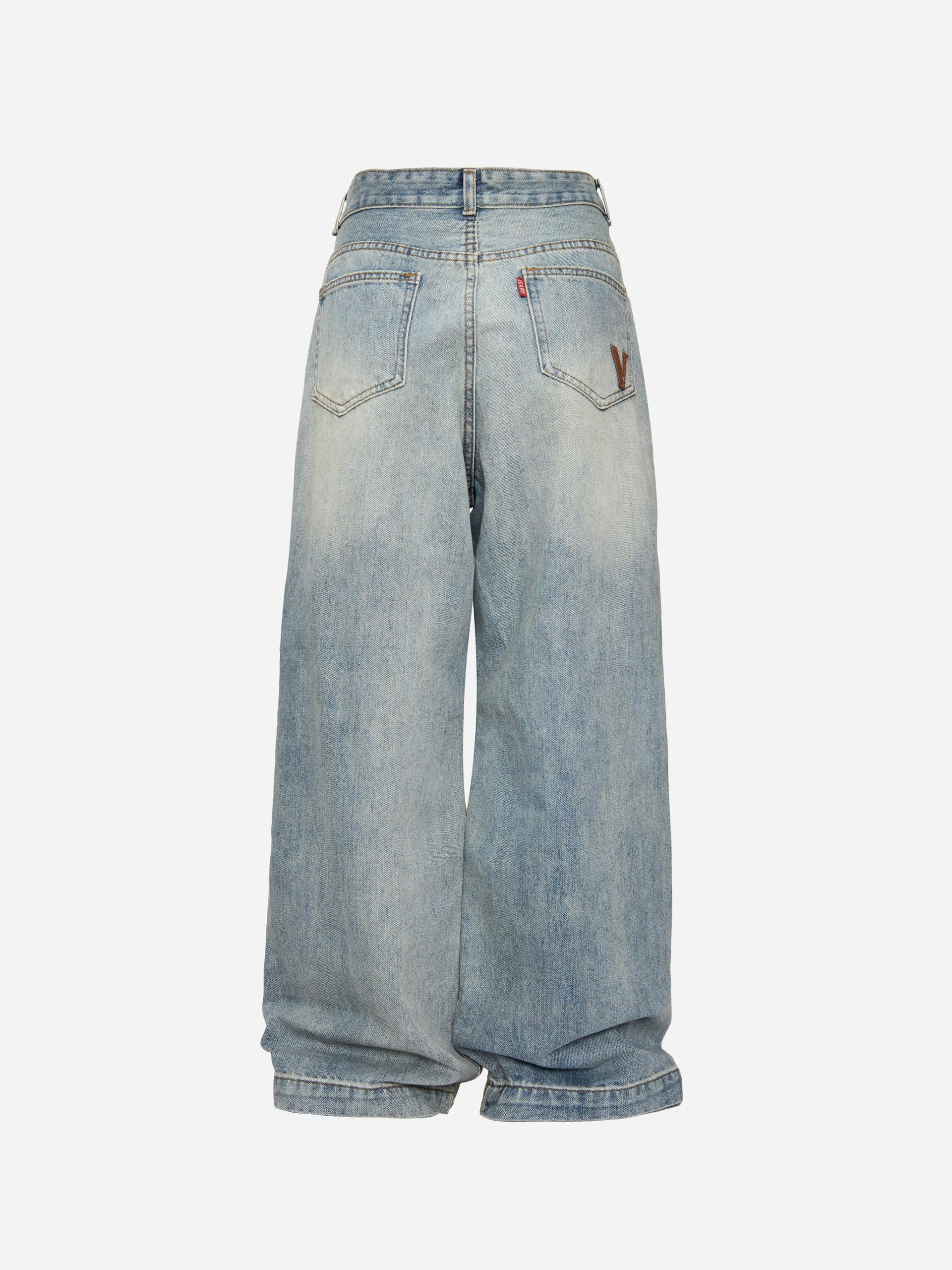 BIGSIZE- Quần jean suông thêu V T-QJ387