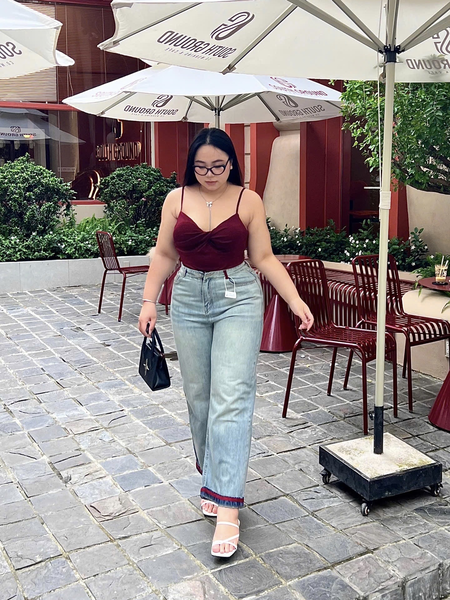 - Kiểu dáng : quần jean ống suông lưng cao , form basic , có túi thật trước và sau , lưng cao giúp hack dáng che bụng mỡ , lai quần lớn 3p , 1 bên hông quần có đỉa đỏ , quần có thể lật ống lên để lộ phần viền đỏ còn xả xuống sẽ thấy phần lai ống 3p bình thường , độ dài từ 103-105cm.