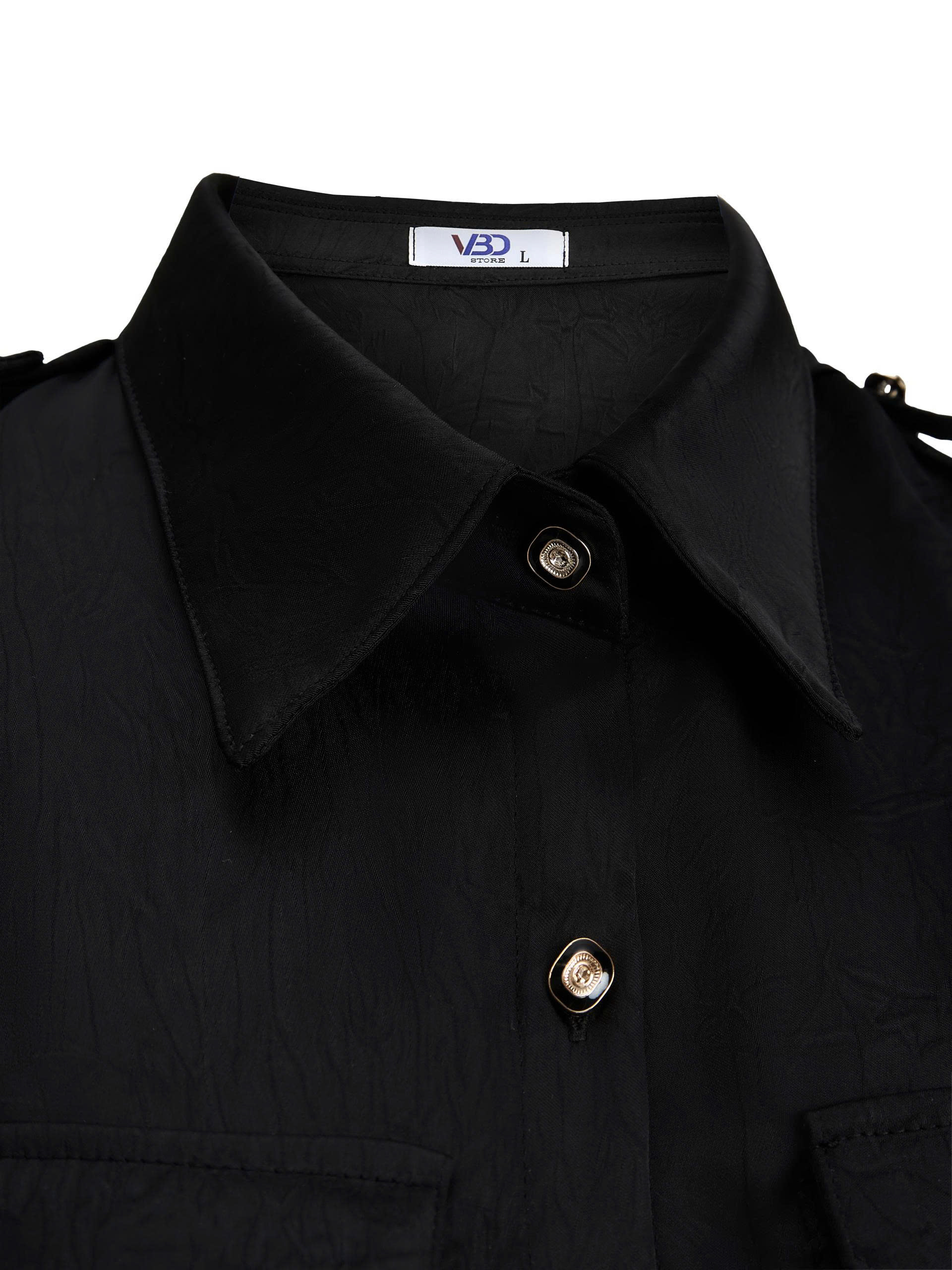 BIGSIZZE NỮ - Áo sơ mi lụa phối nắp túi dành cho nàng béo từ 55-90kg V-AK099