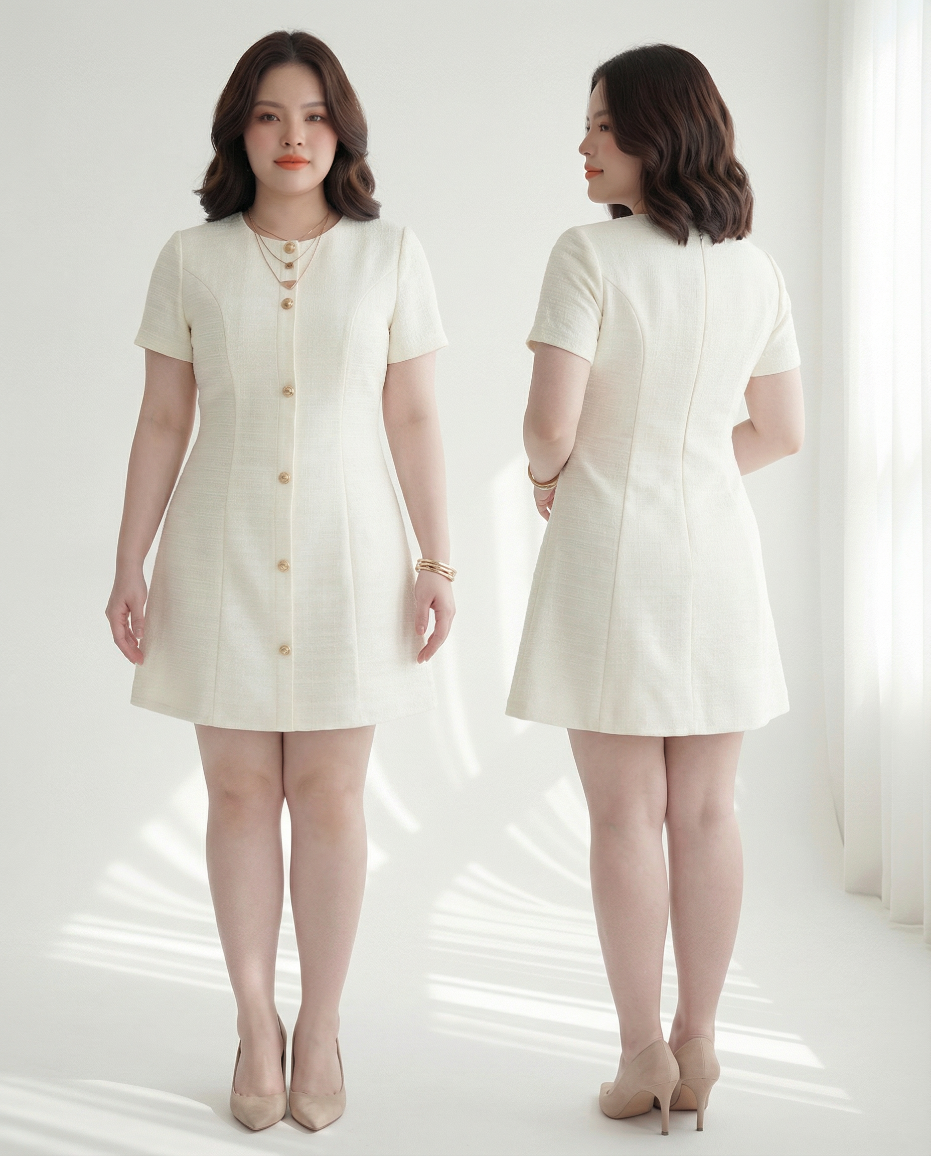 BIGSZE NỮ - Đầm dáng A phối nút V-DA213