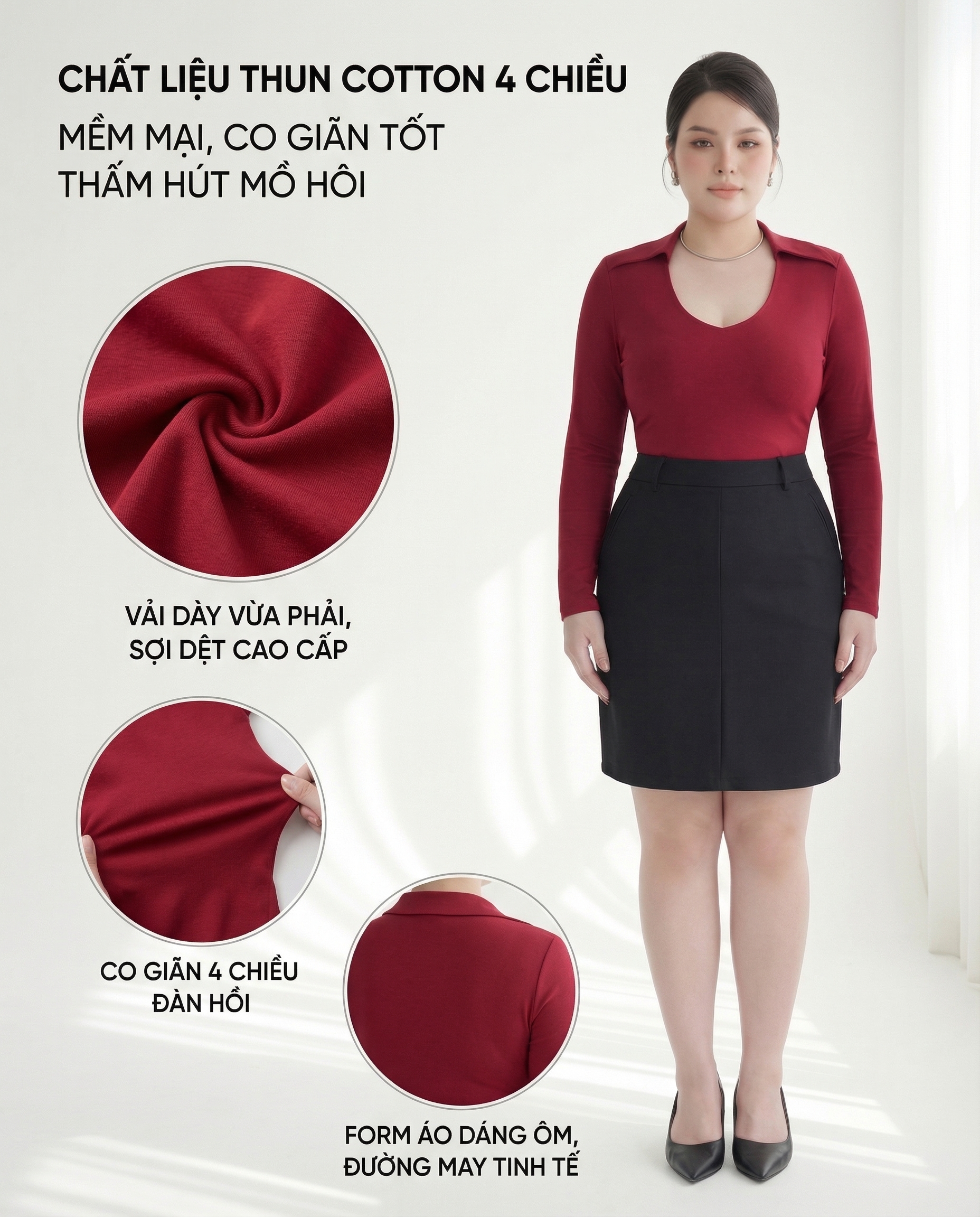 ÁO THUN CỔ BẺ DÁNG ÔM TAY DÀI BIGSIZE ( V-AK094 )- THỜI TRANG BIGSIZE