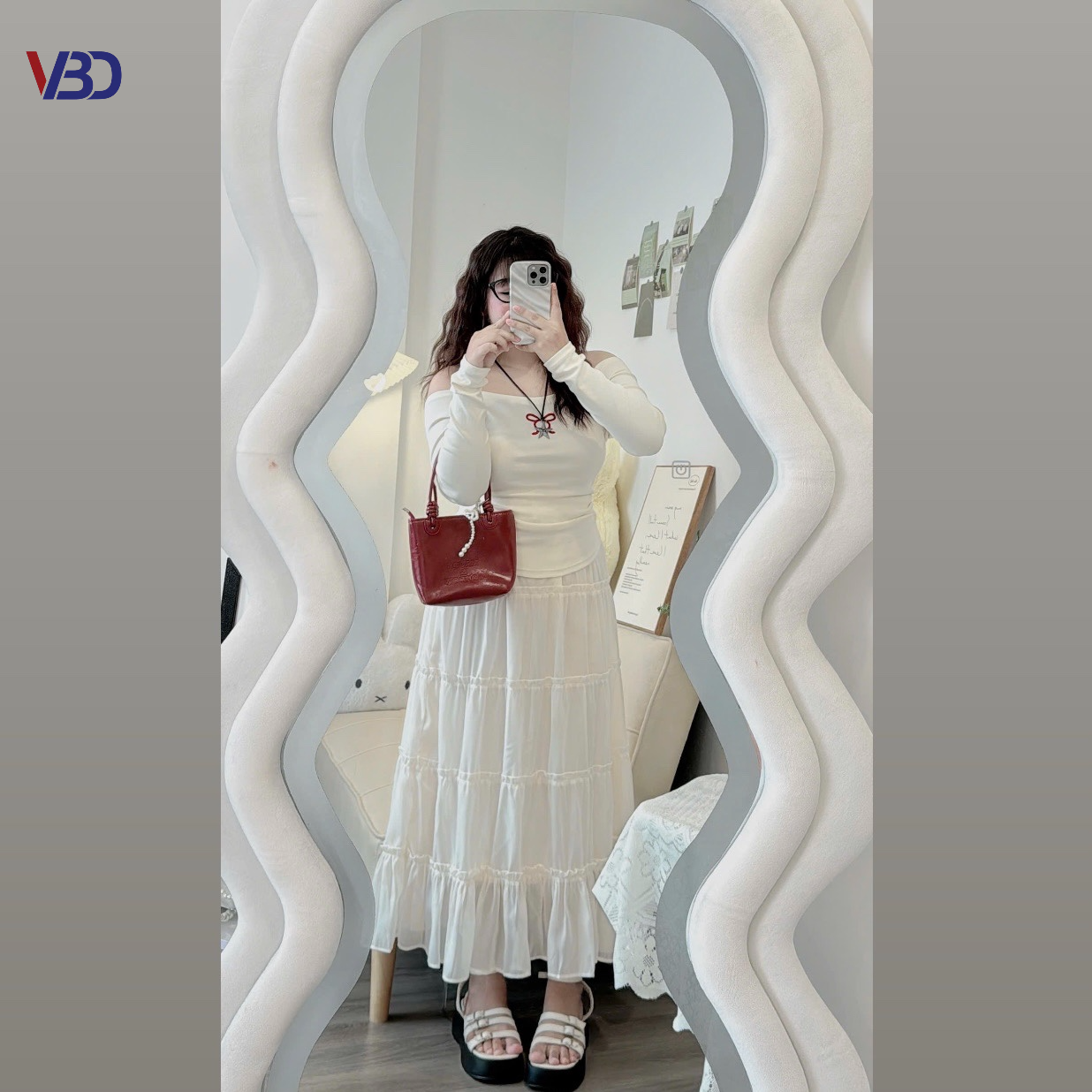 Chân váy dáng dài tầng tơ ánh kim CV321 dành cho nàng béo mập từ 55-90kg