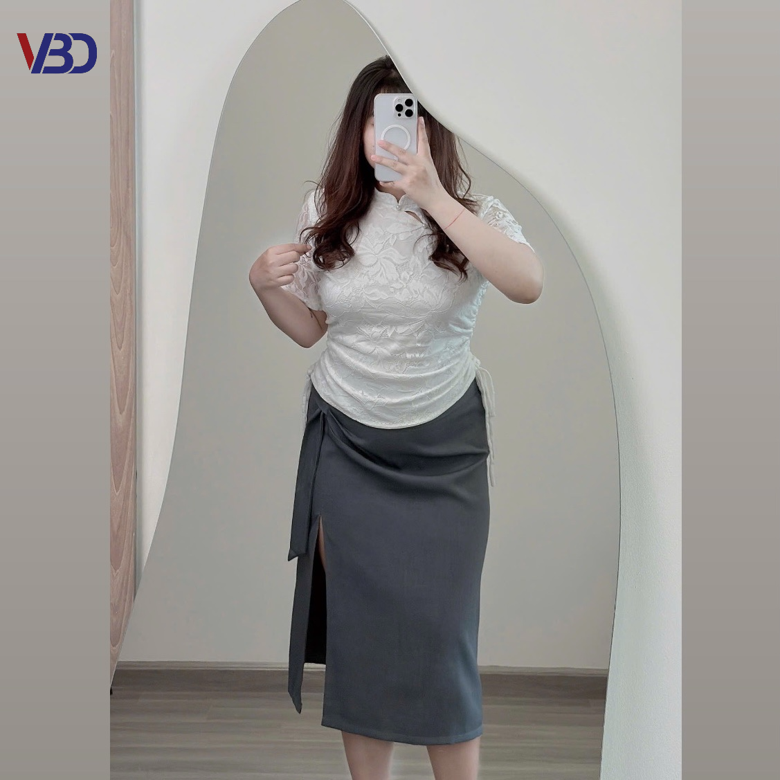 Chân váy dáng dài xẻ kiểu xếp ly bigsize CV034 dành cho nàng béo mập từ 55-90kg