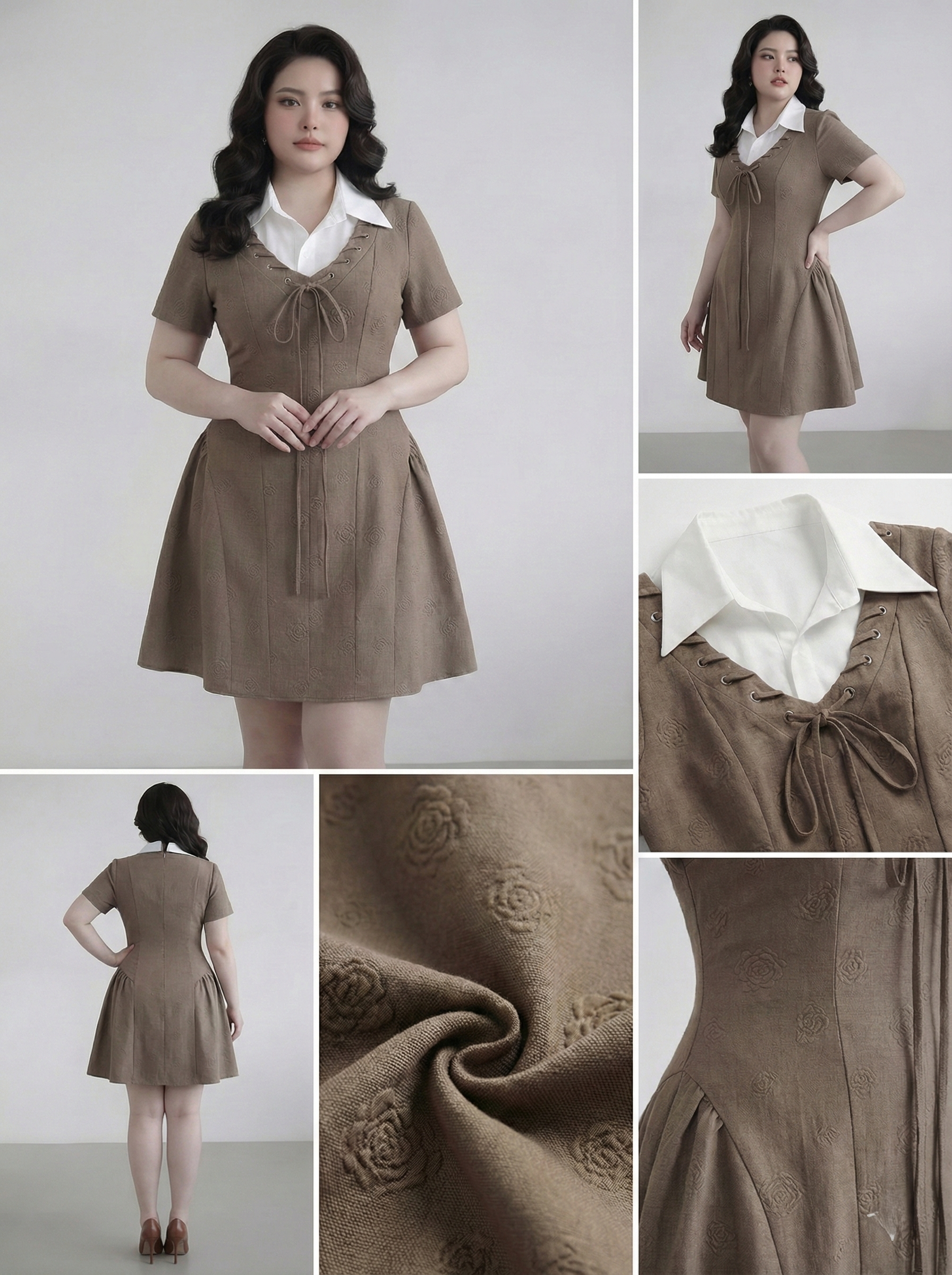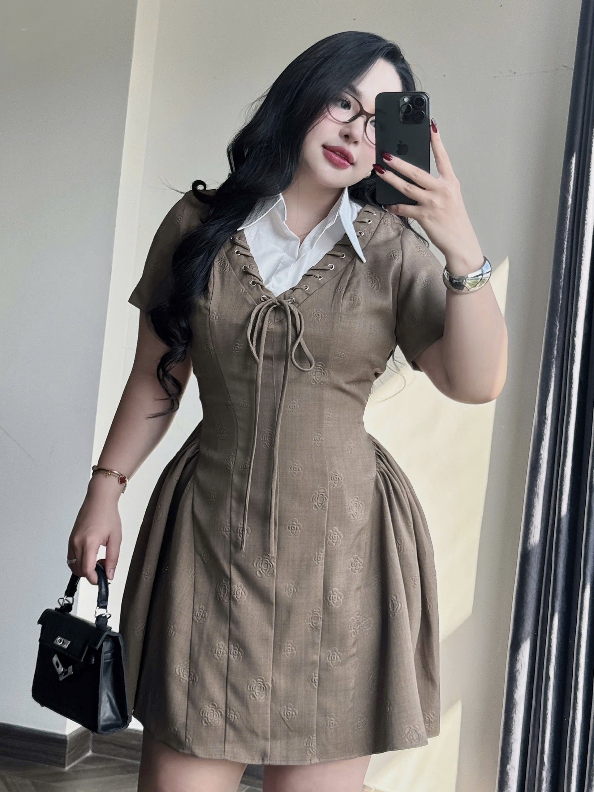 ĐẦM DÁNG A KIỂU CỔ SƠ MI PHỐI KIỂU BIGSIZE DA153 - THỜI TRANG BIGSIZE